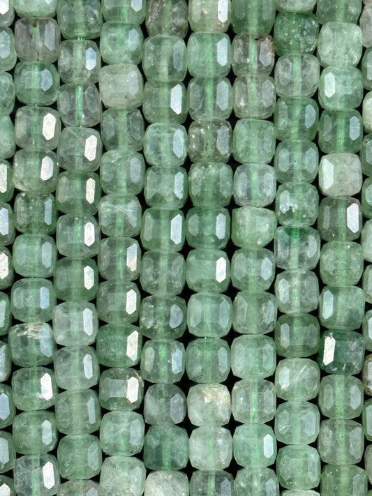 NATURAL Green Strawberry Quartz Gemstone Bead Faceted 6mm Cube Shape Bead, Beautiful Green Color Strawberry Quartz Bead. Full Strand 15.5"