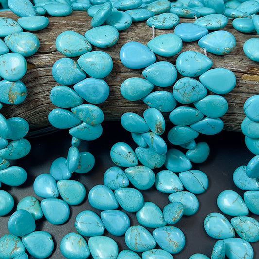 Natural Blue Turquoise Howlite Gemstone Beads - Beautiful 18mm Teardrop Shape for Jewelry Making and Crafts - Full Strand 10"