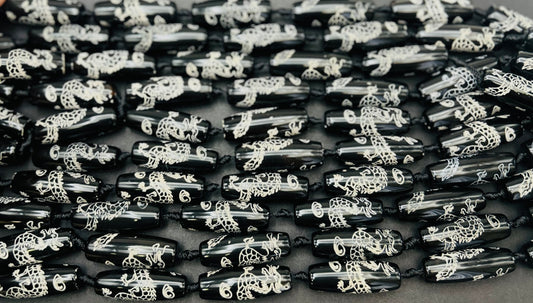 Natural Hand Painted Tibetan Agate Gemstone Beads 30x10mm, 40x15mm Barrel Tube Shape Bead 15.5"