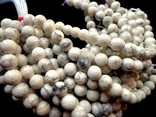 LARGE-HOLE beads!!! 8,10,12mm Faceted-finished round. 2mm hole. 8" strands. Natural White Howlite Big Hole Beads