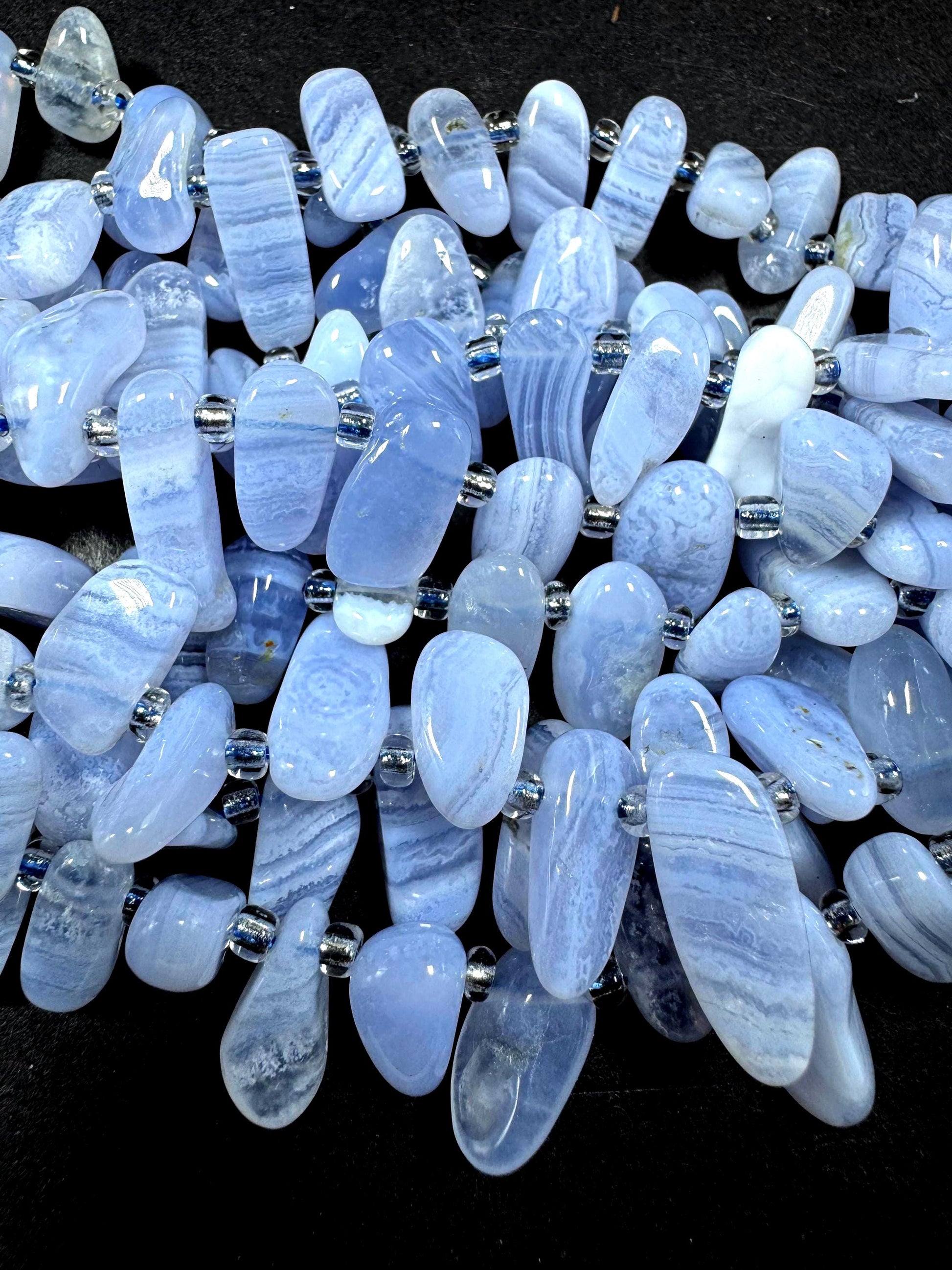 100% National Blue Lace Agate. Freedom Teardrop Shape. Gorgeous Natural Blue Color Gemstone Bead. Full Strand 15.5"