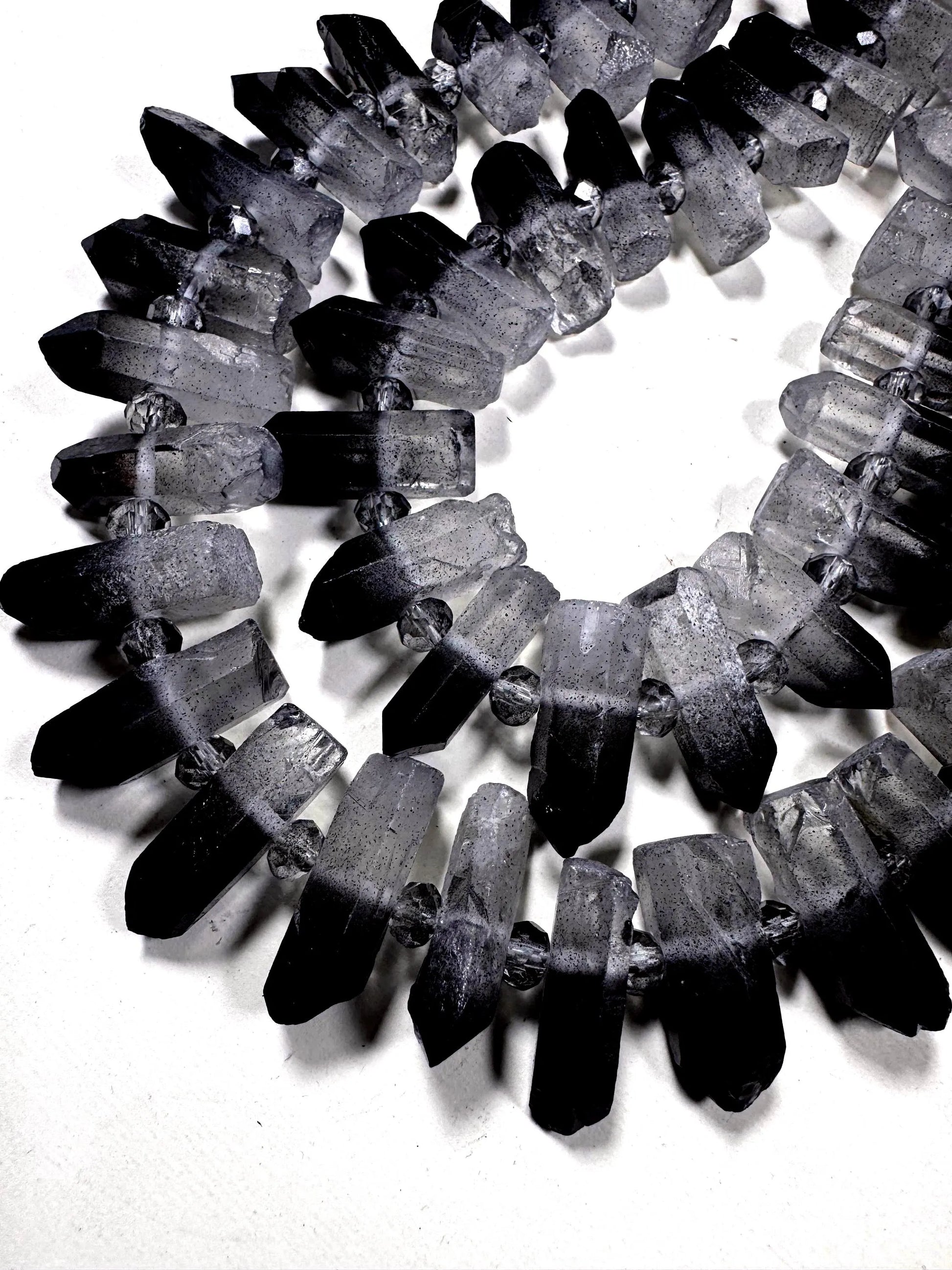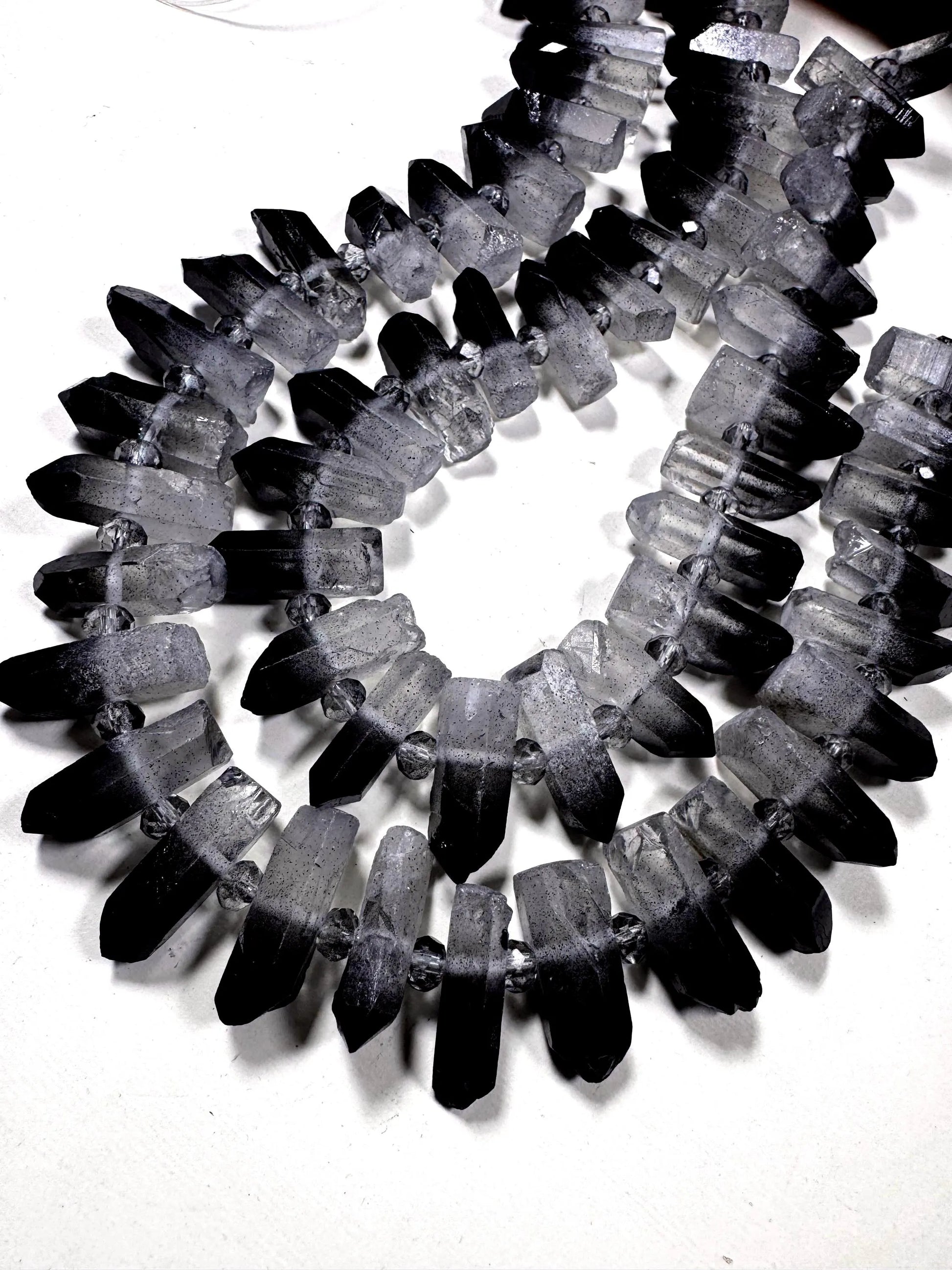 100% Natural Rock Crystal quartz . freedom teeth shape . black white color . full strand 15.5