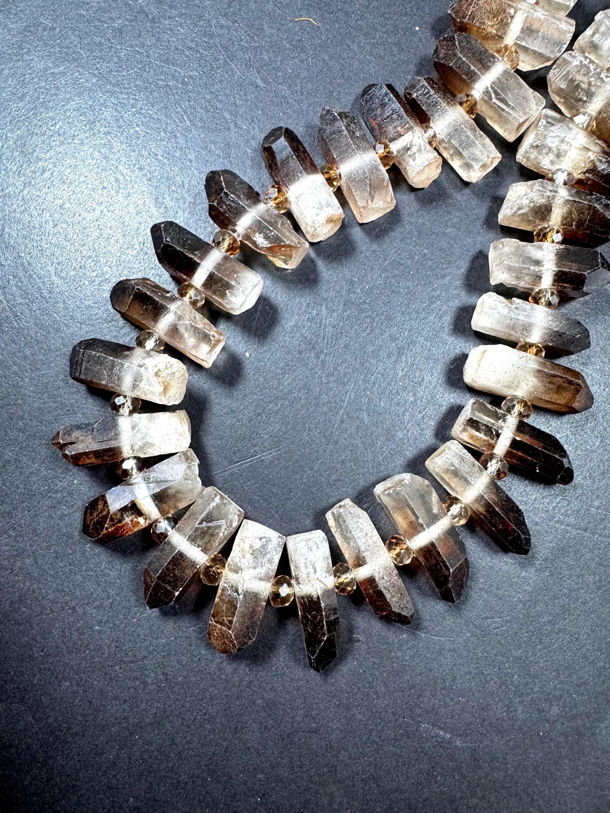 100% Natural Rock Crystal Quartz. Freedom Teeth Shape. Clear Brown Color. Full Strand 15.5"