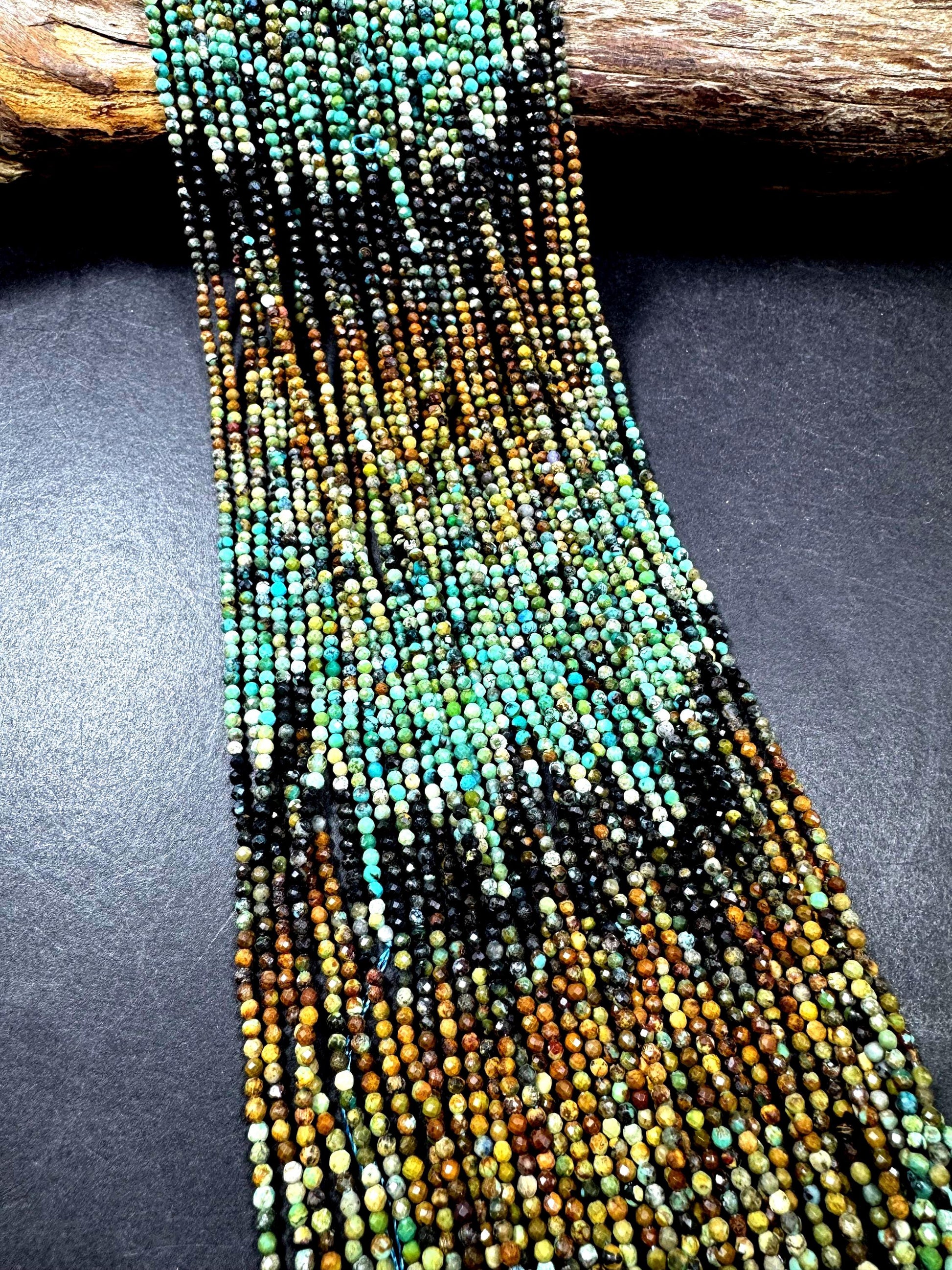 100% Natural turquoise gemstone bead. faceted round shape . natural blue brown color. Excellent quality ! full strand 15.5