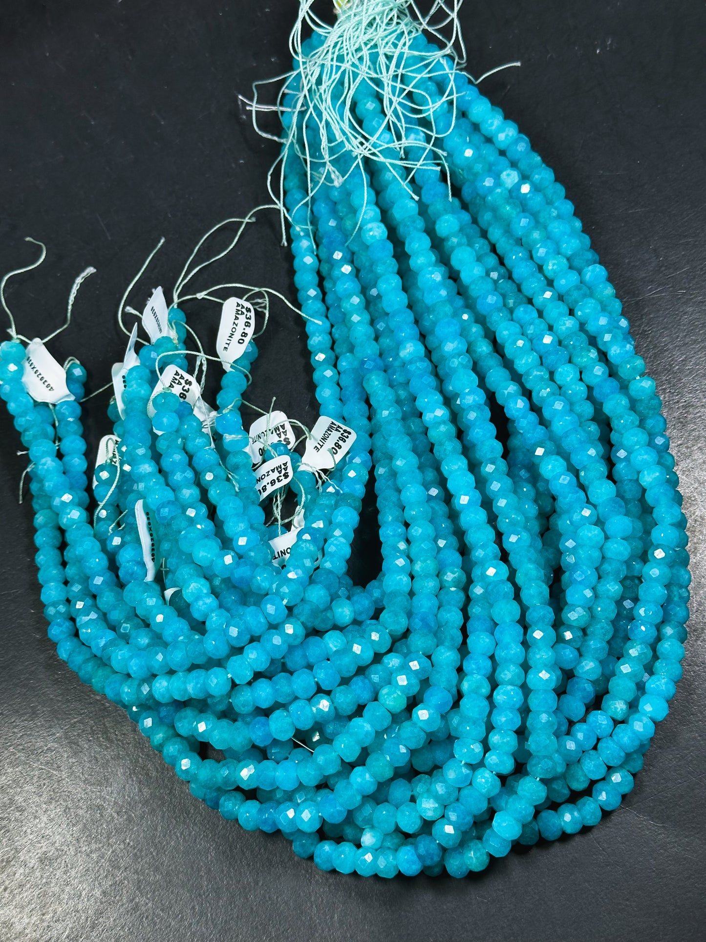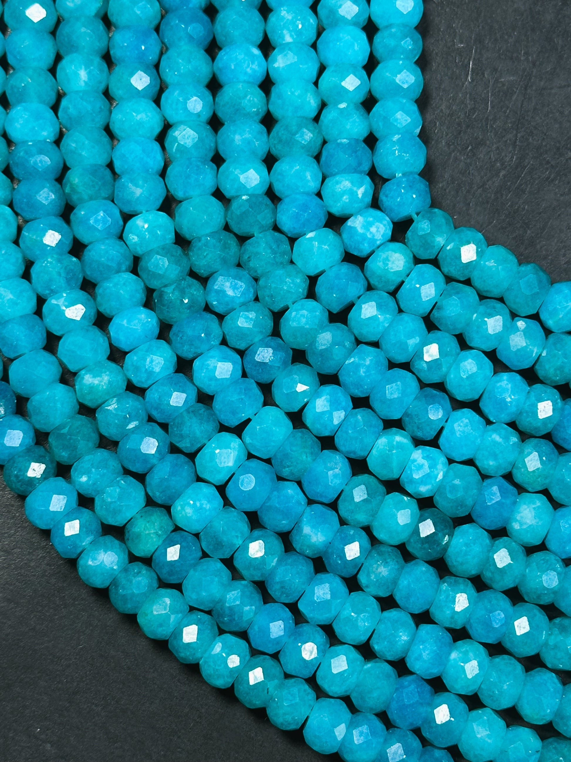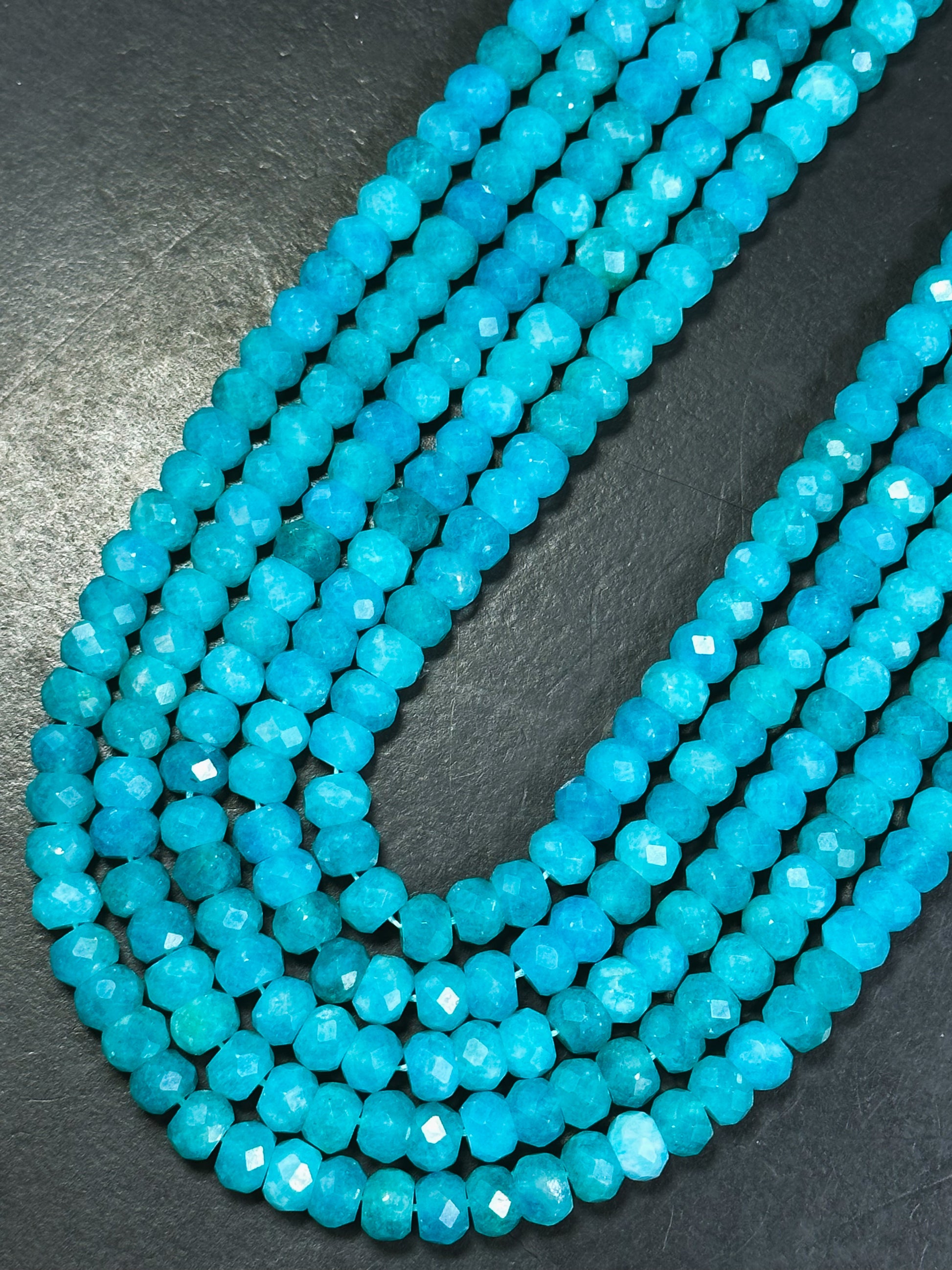 AA Natural Amazonite Gemstone Bead Faceted 8x6mm Rondelle Shape, Gorgeous Natural Blue Green Color Amazonite Great Quality Full Strand 15.5"