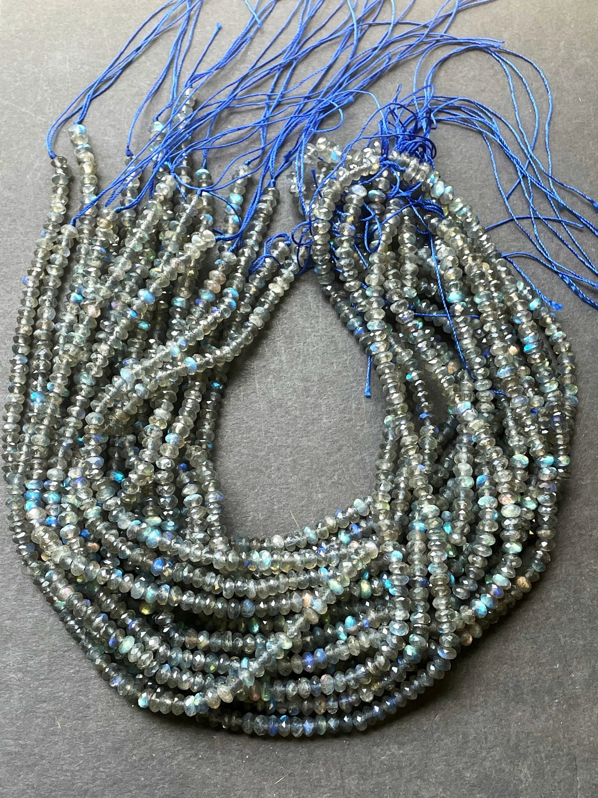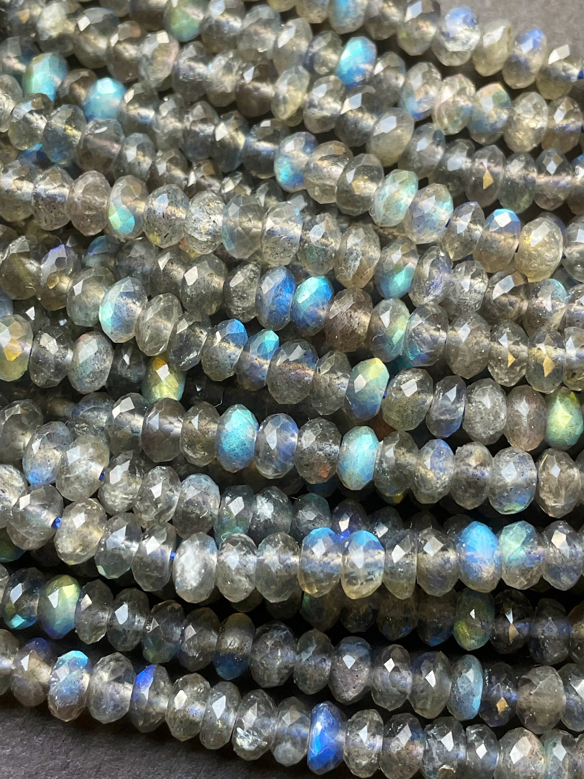 AA Natural blue flash labradorite stone bead . Faceted 3x4mm Rondelle Shape bead. Gorgeous gray color with beautiful blue flash full strand