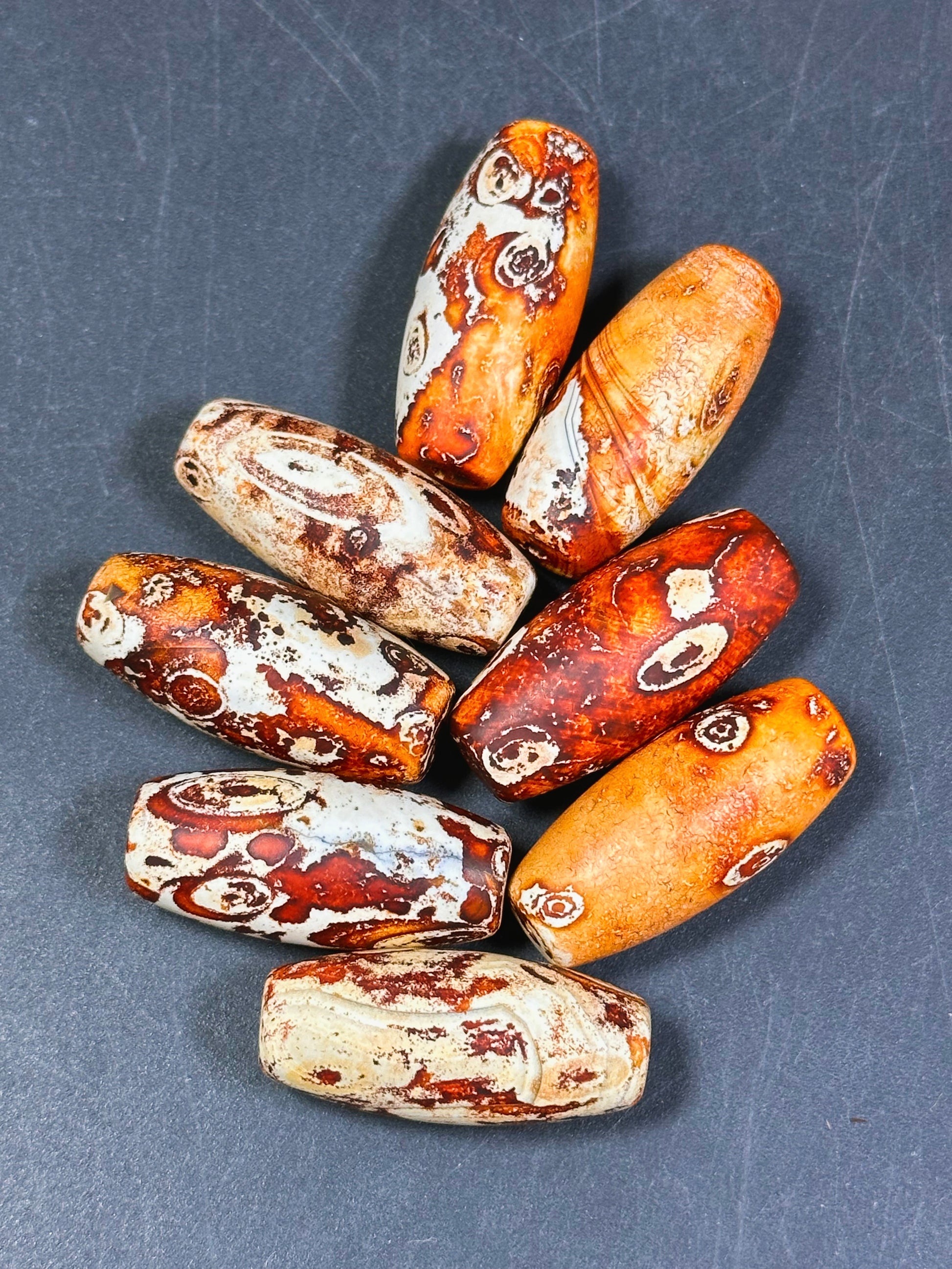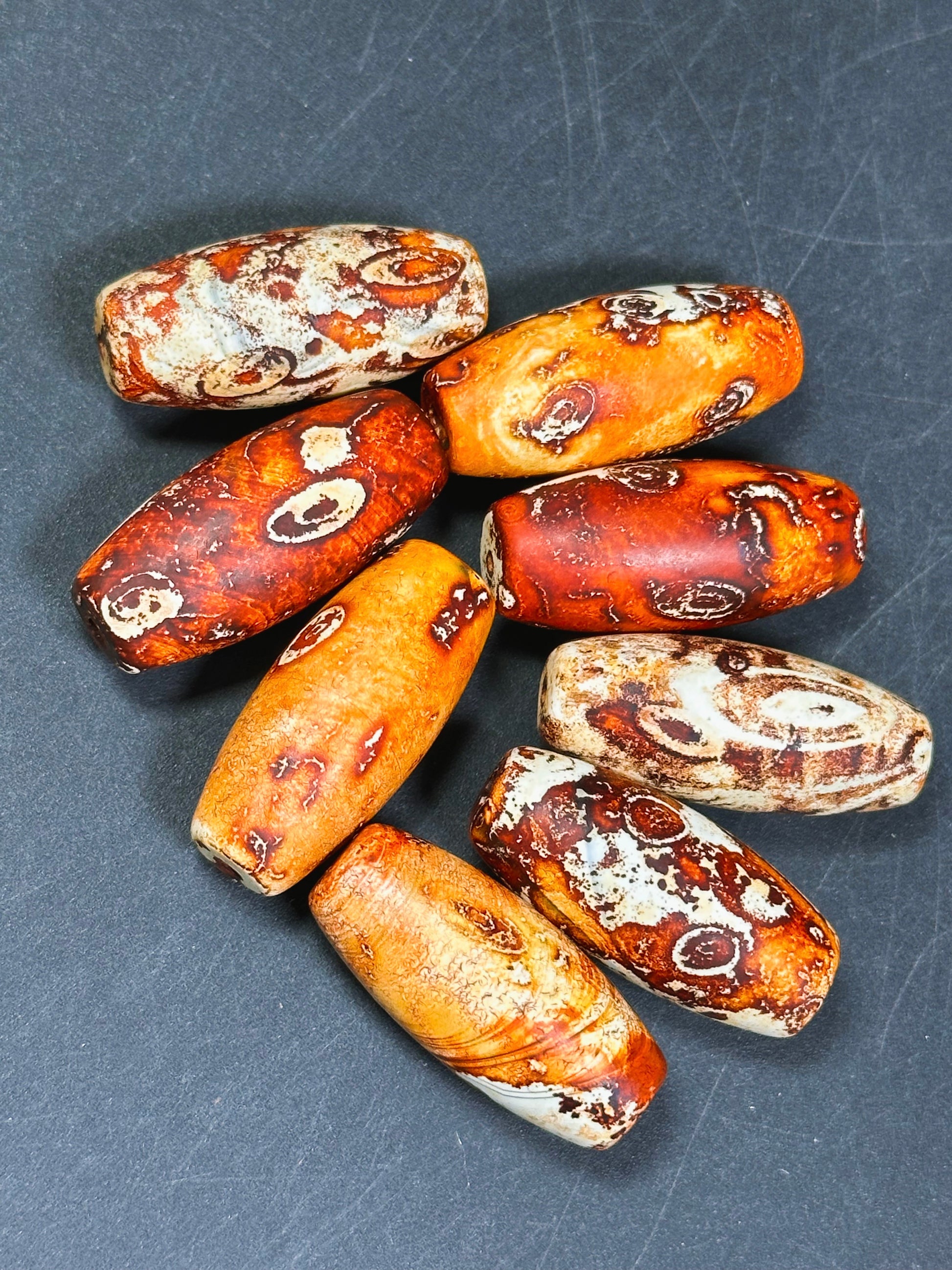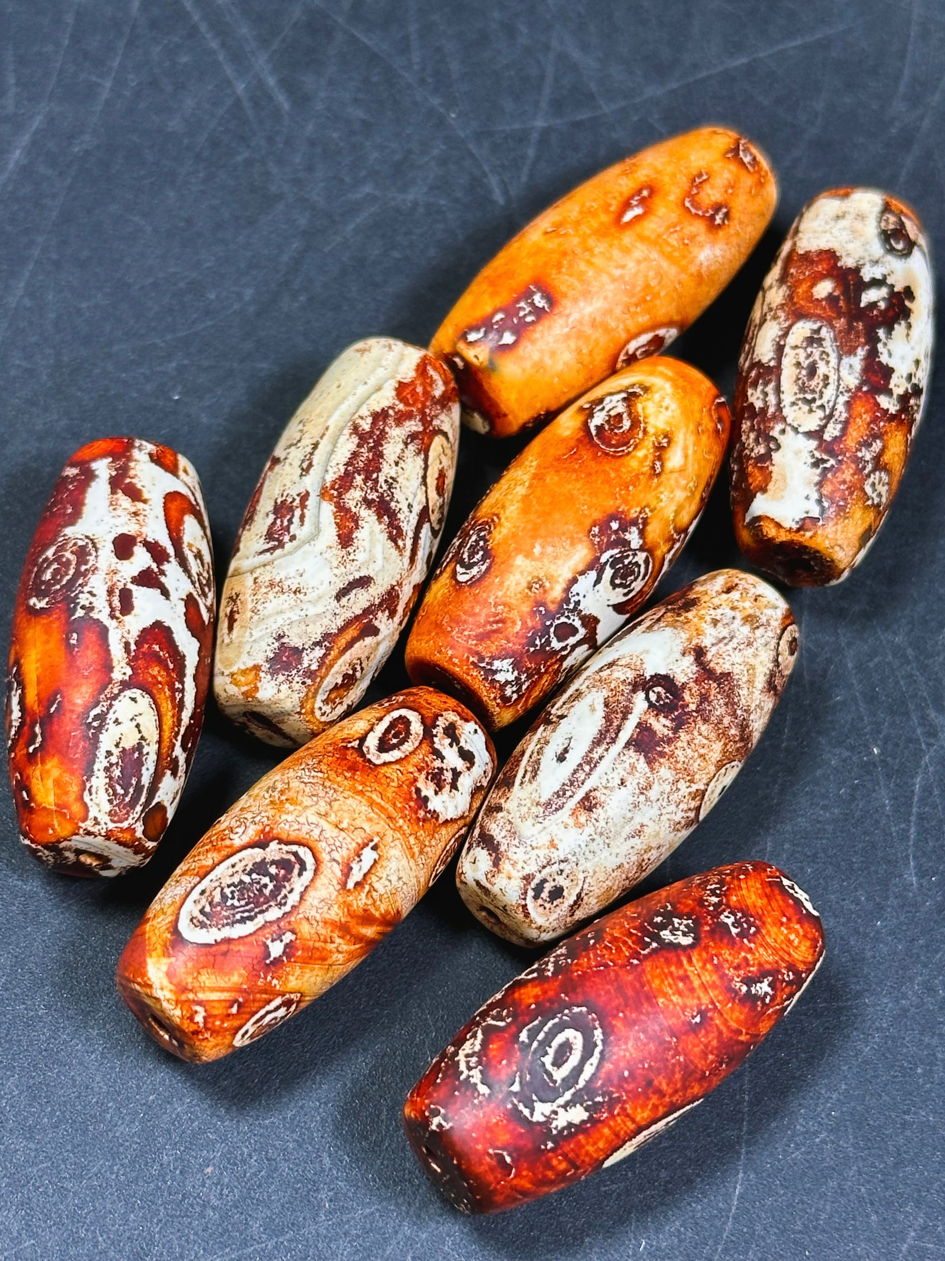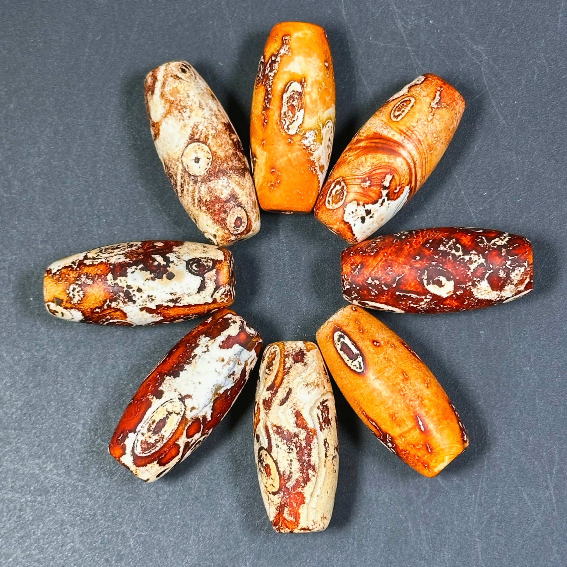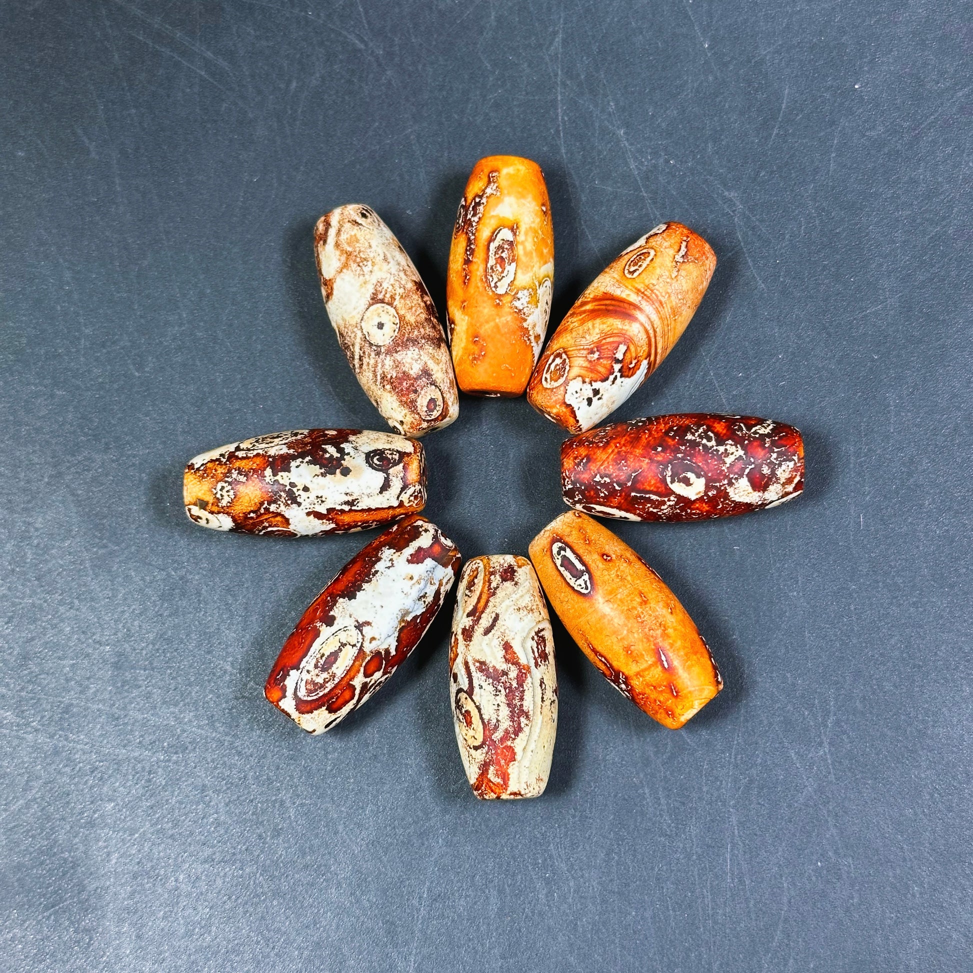 AAA Hand Painted Tibetan Gemstone Bead 29x13mm Barrel Shape Bead, Beautiful Orange Beige Color Unique Design Tibetan Agate LOOSE BEADS