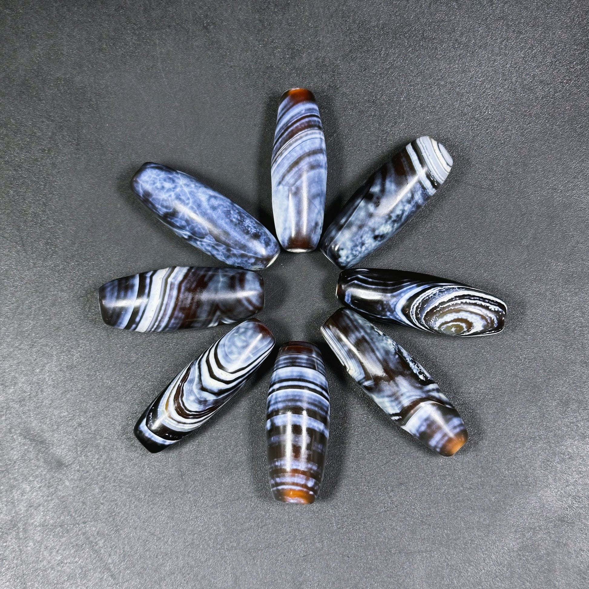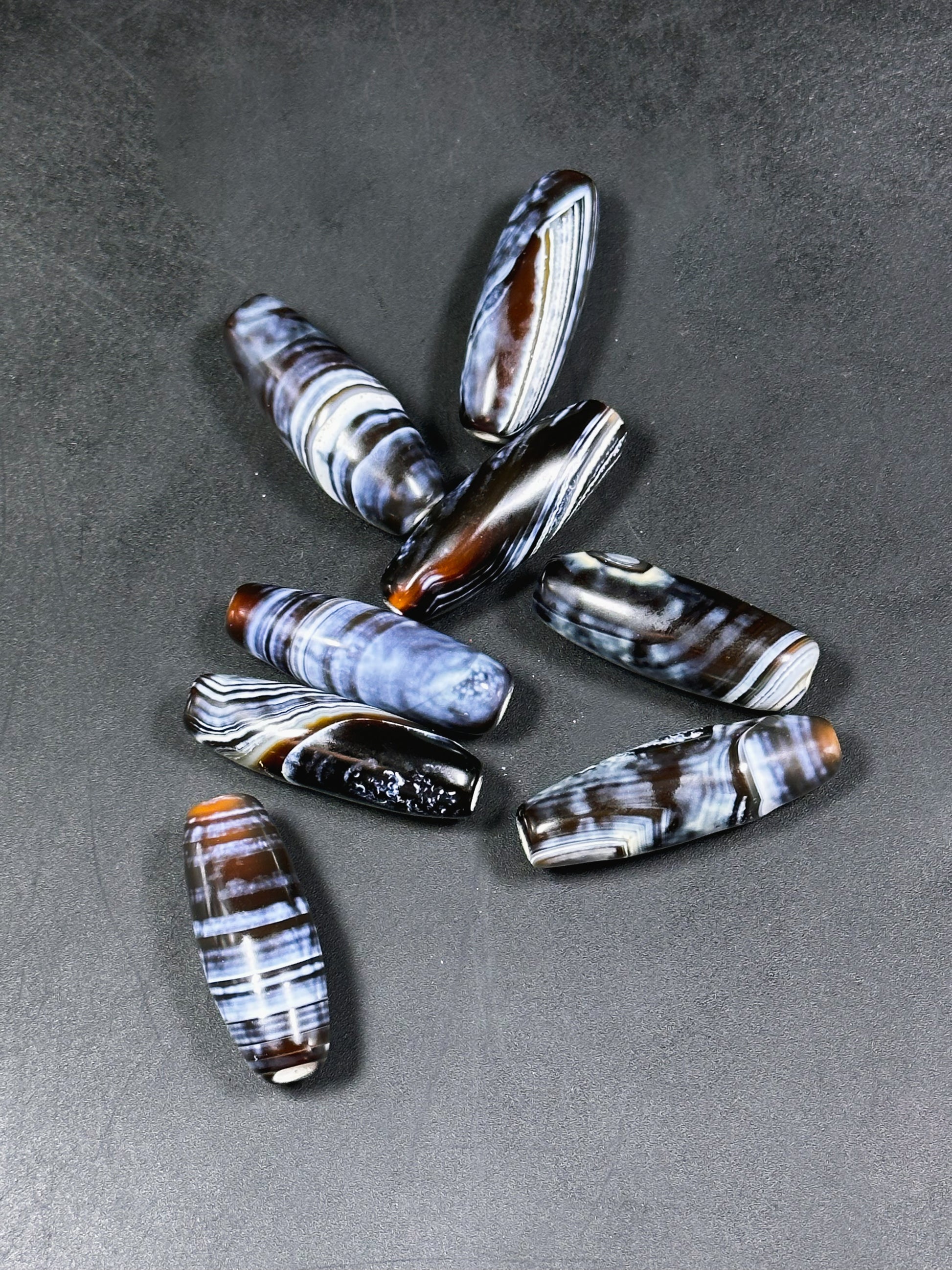 AAA Hand Painted Tibetan Gemstone Bead 35x12mm Barrel Shape Bead, Beautiful Navy Blue Black Color Unique Design Tibetan Agate LOOSE BEADS