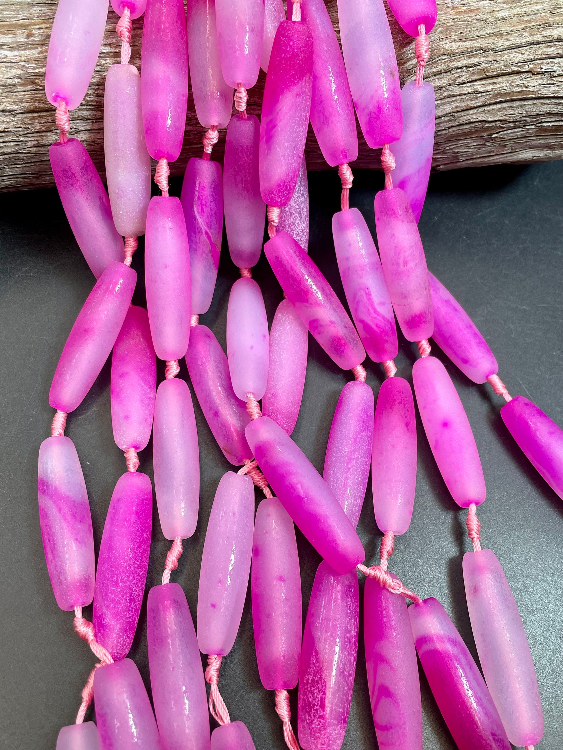 AAA Matte Botswana agate stone bead. Barrel Shape 13x48mm, Gorgeous Matte Pink Color Botswana Gemstone Bead