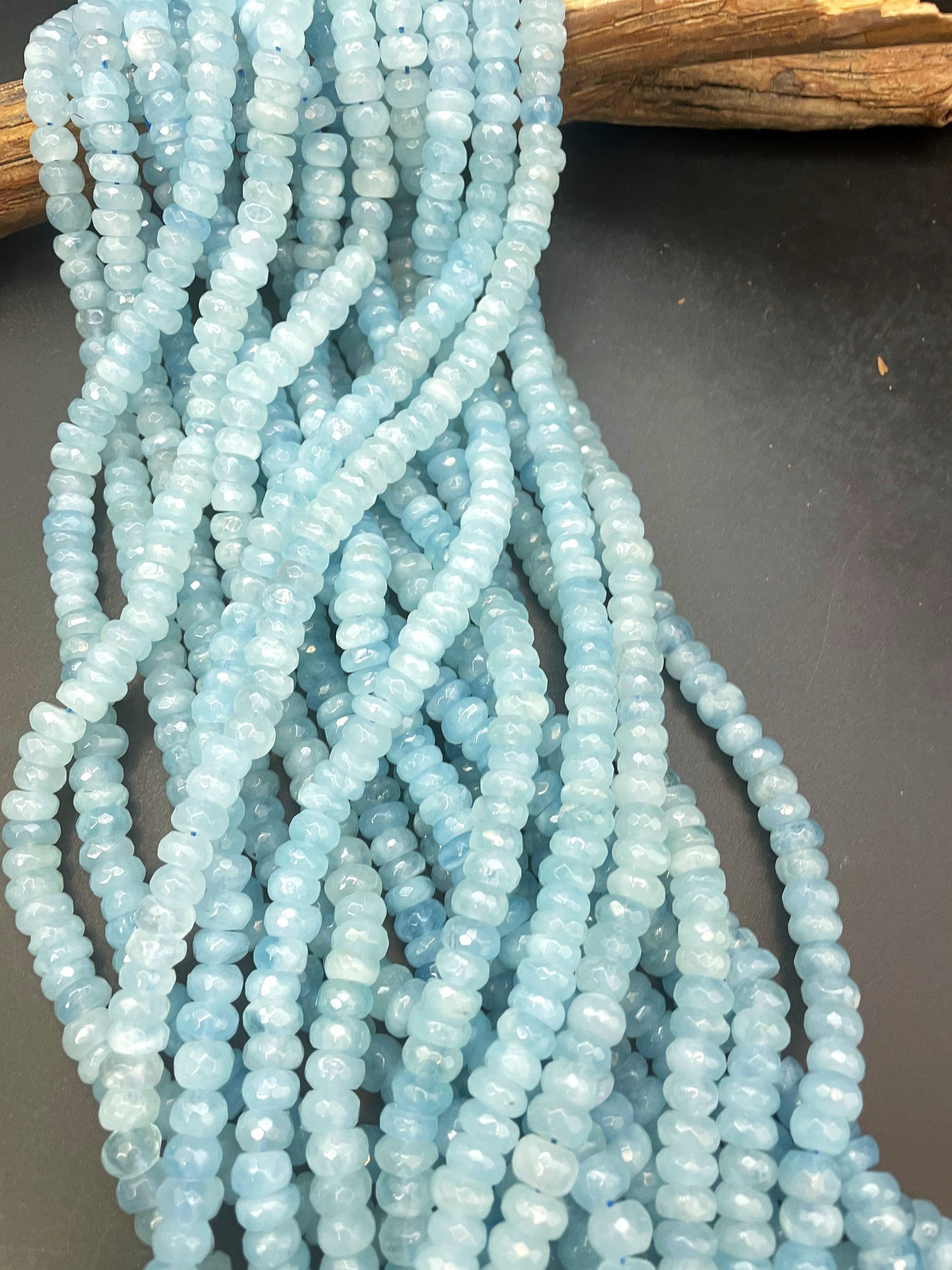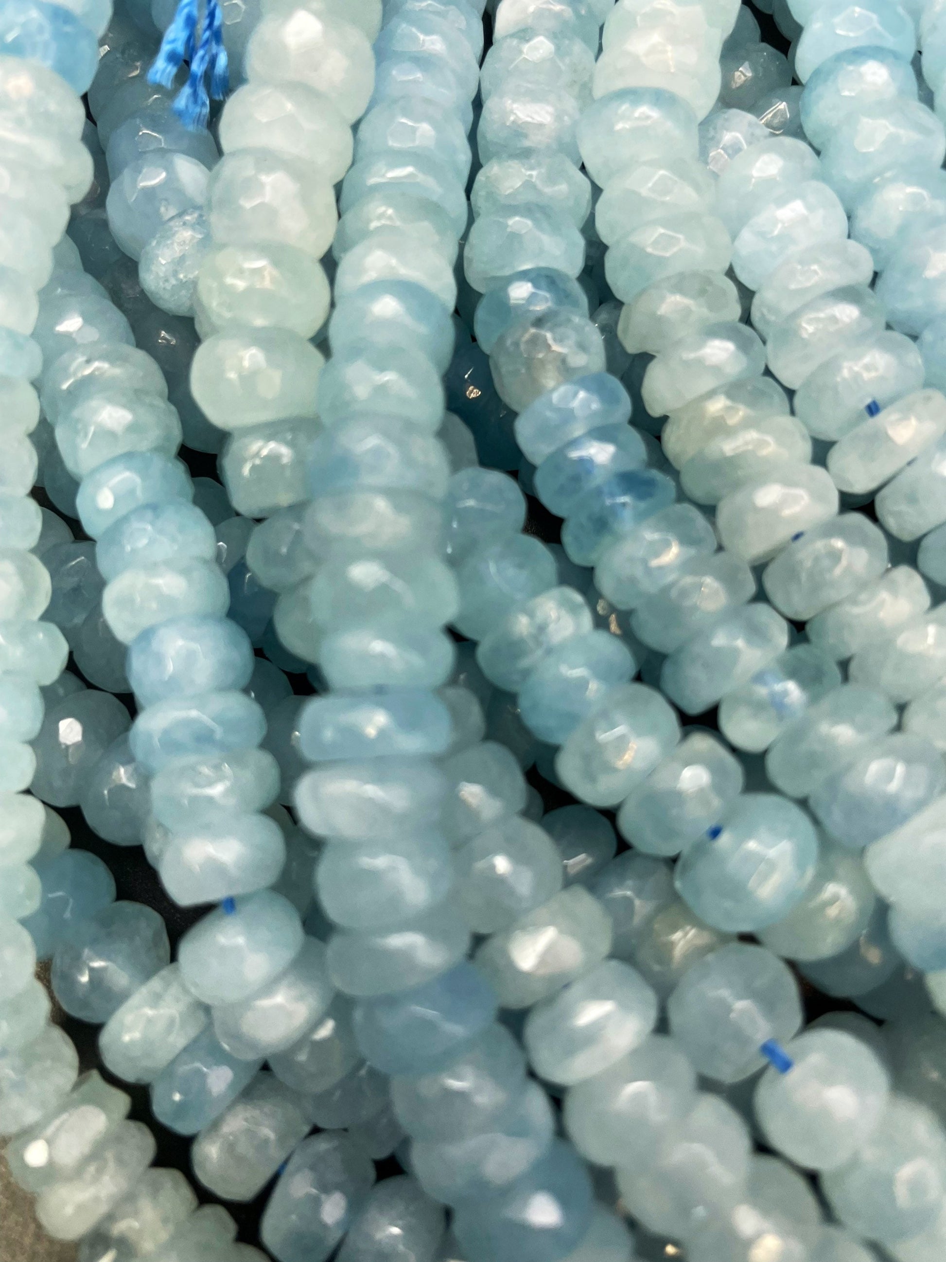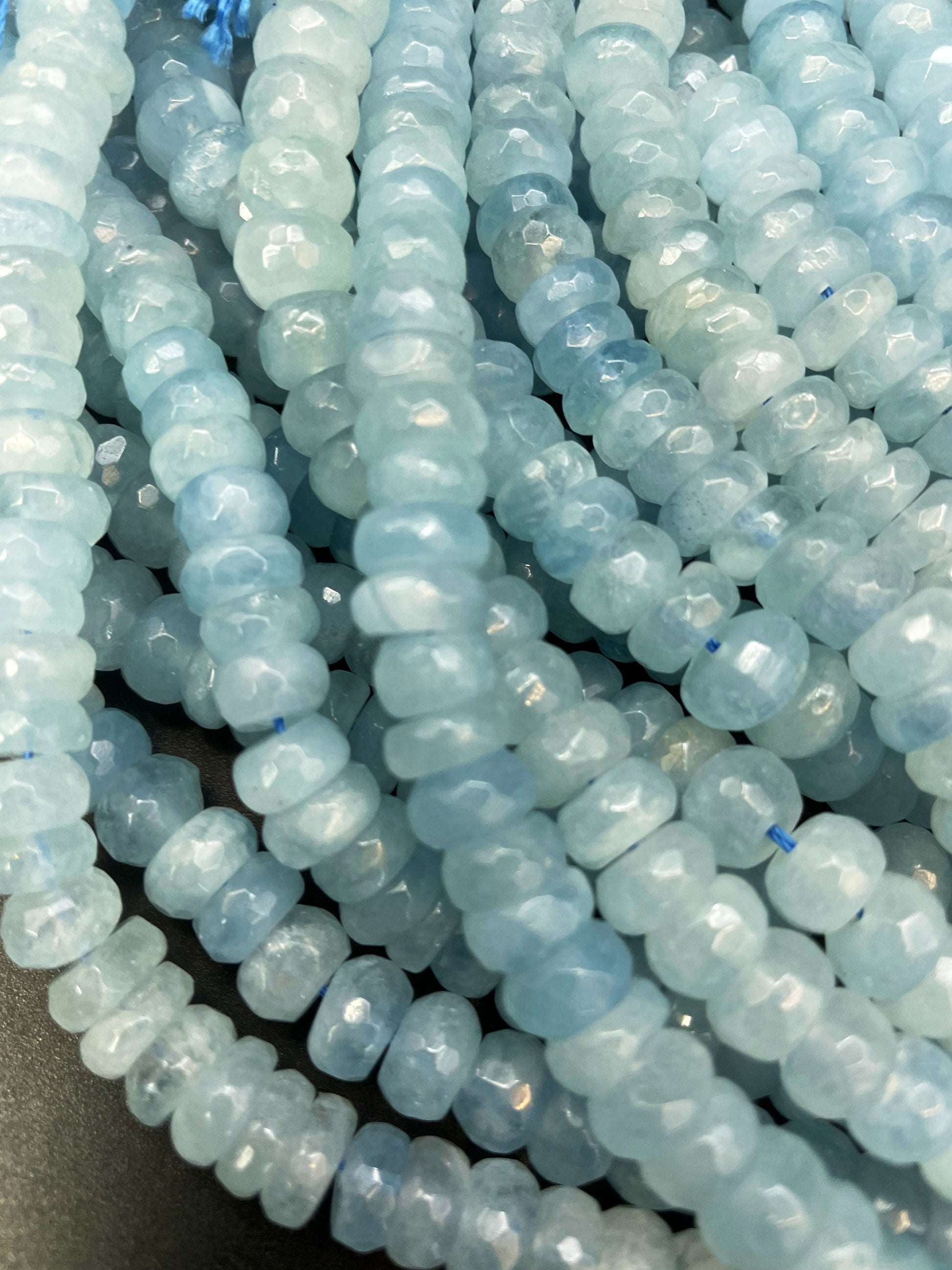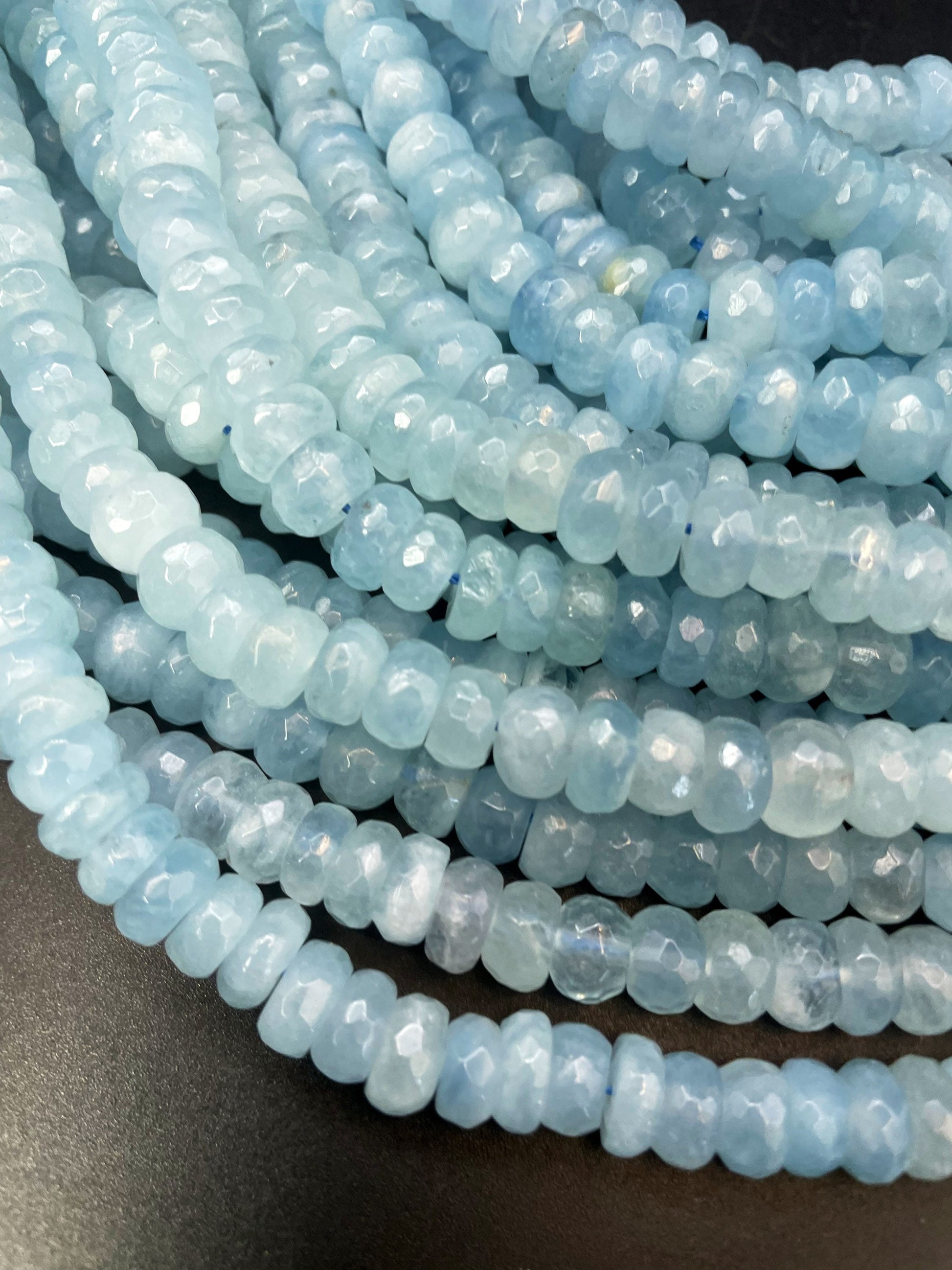 AAA Natural Aquamarine Gemstone Bead, Faceted Rondelle Shape Bead, Gorgeous Natural Blue Color Aquamarine Gemstone Bead, Excellent Quality Full Strand 15.5"