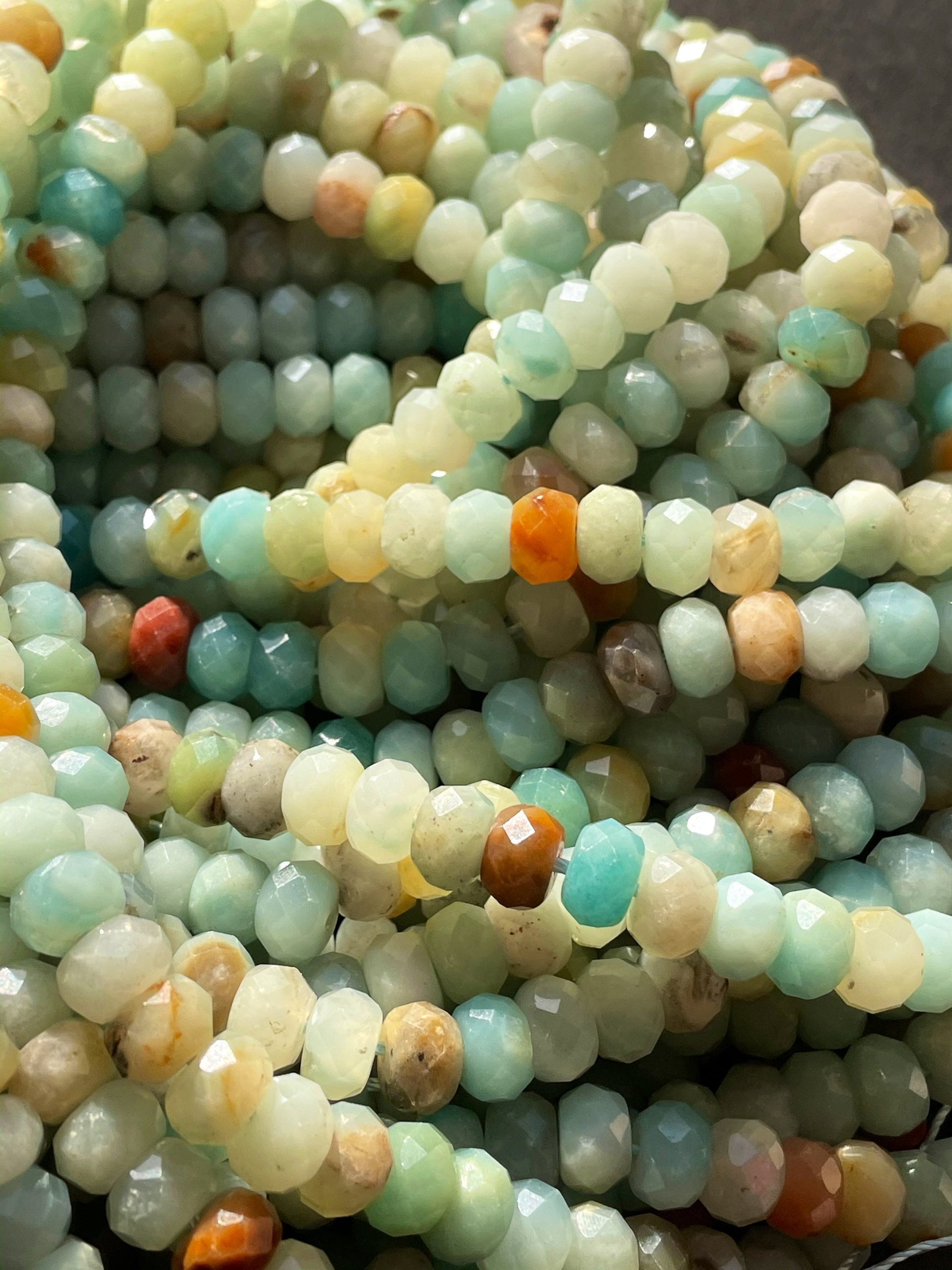 AAA quality amazonite bead . 4x6mm 5x8mm faceted diamond cut Rondelle bead .beautiful natural sea blue green color bead . Great quality gemstone !