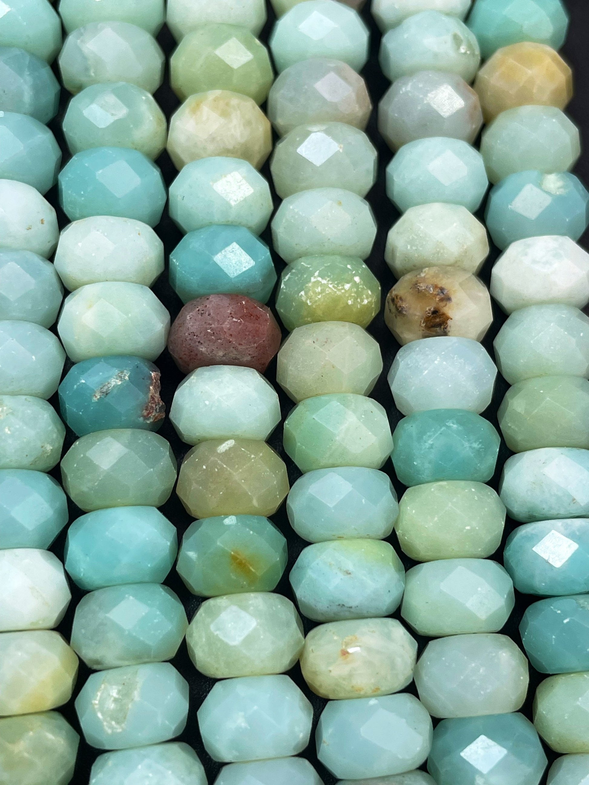 AAA Natural amzonite stone bead . Faceted 4x6mm 5x8mm Roundell Shape bead. Beautiful natural light blue color. High quality gemstone bead.!