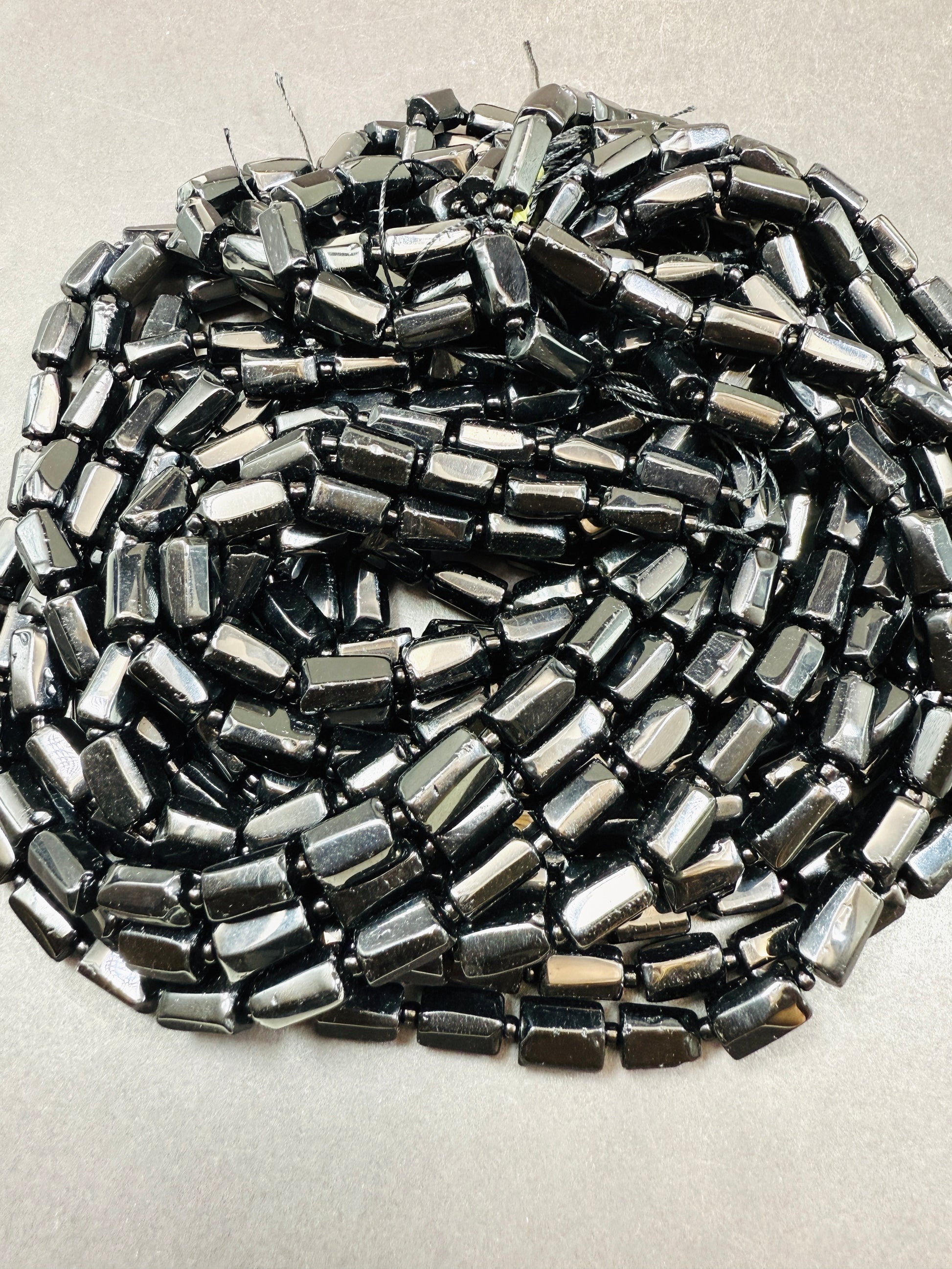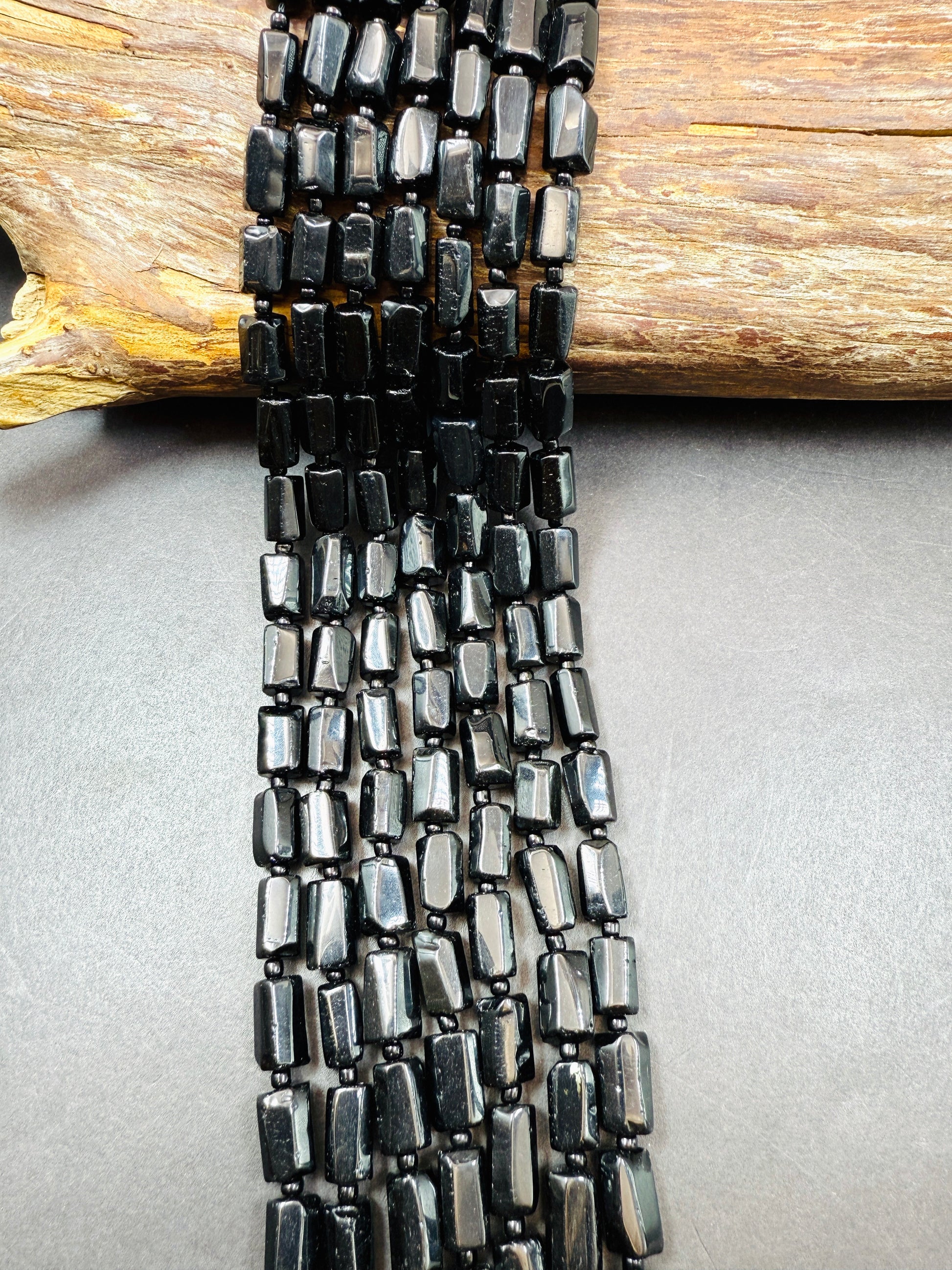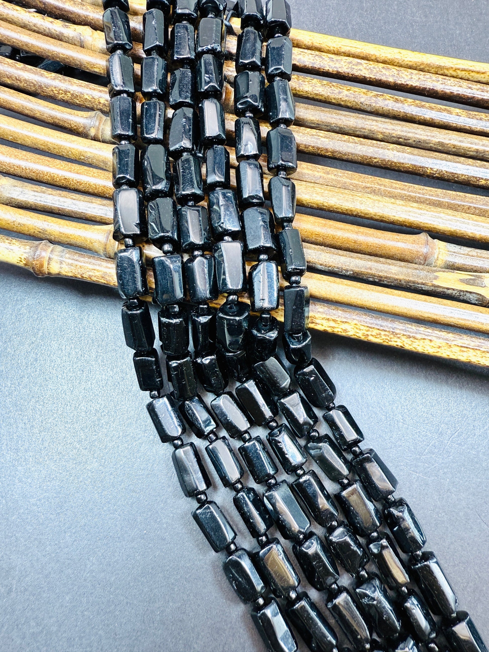 AAA natural black tourmaline tube beads. Natural black Gemstone beads 7mm. Bead strand 15.5”