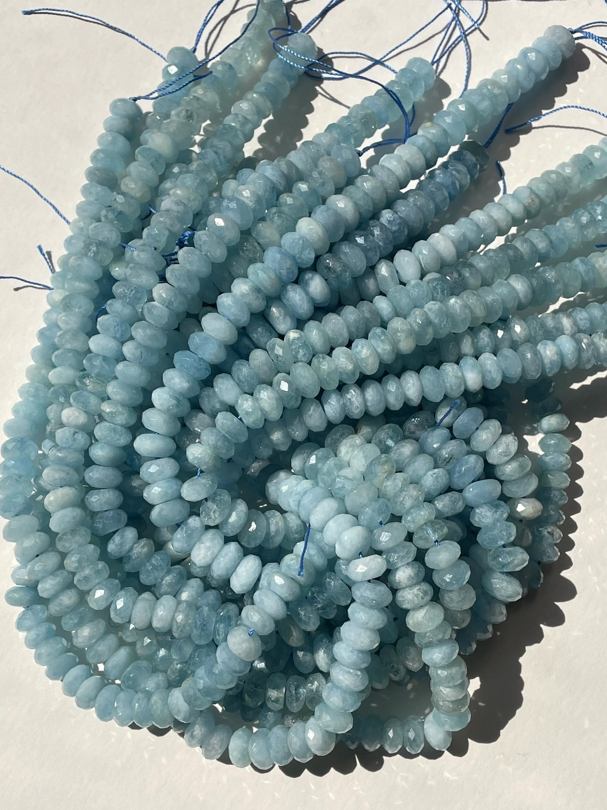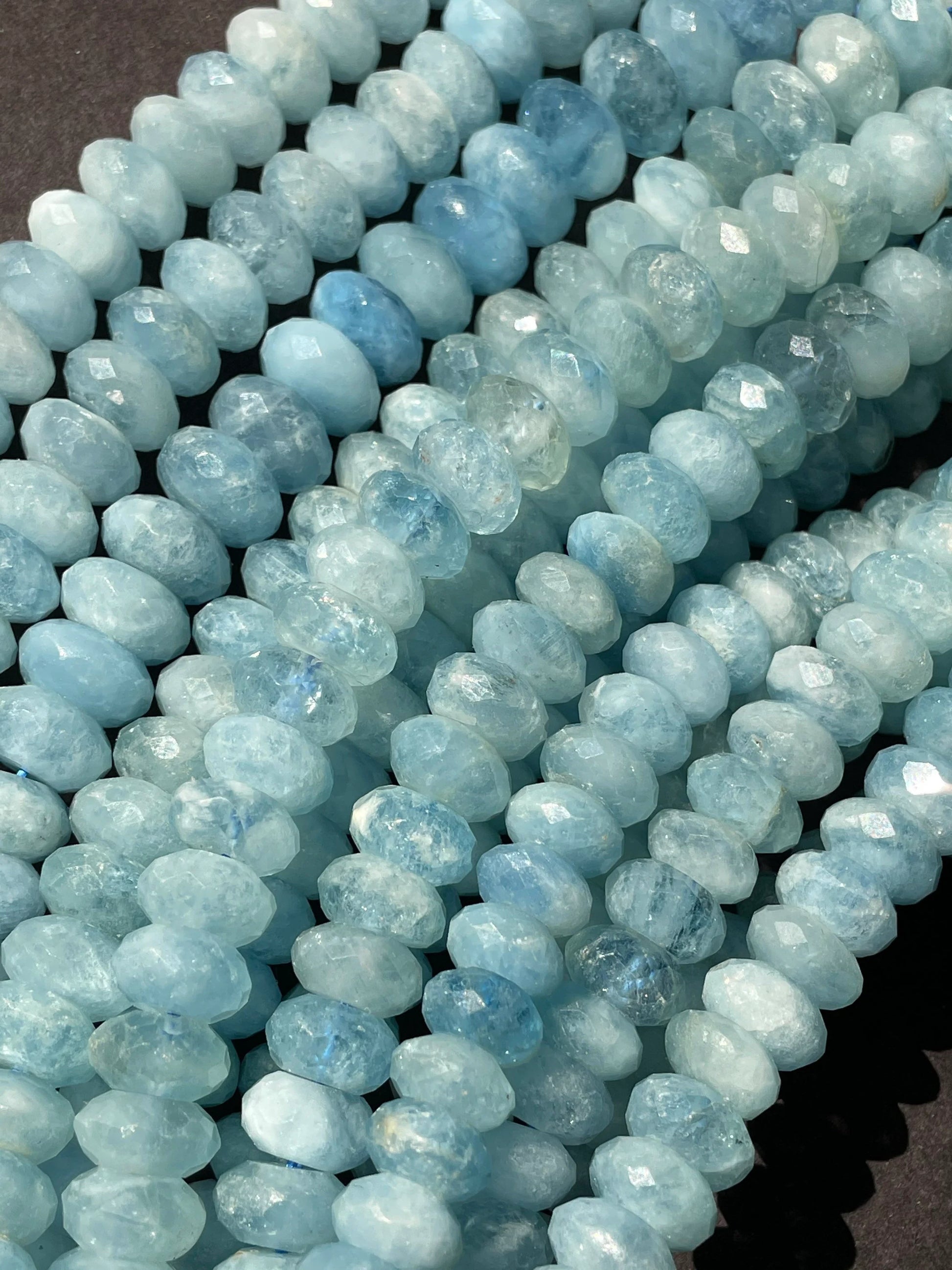 AAA Natural Blue Aquamarine Stone Bead. Faceted 4x7m, 5x8mm, 6x9mm, 6x10mm Rondelle Shape. Beautiful Natural Blue Color. Real Nice Quality!