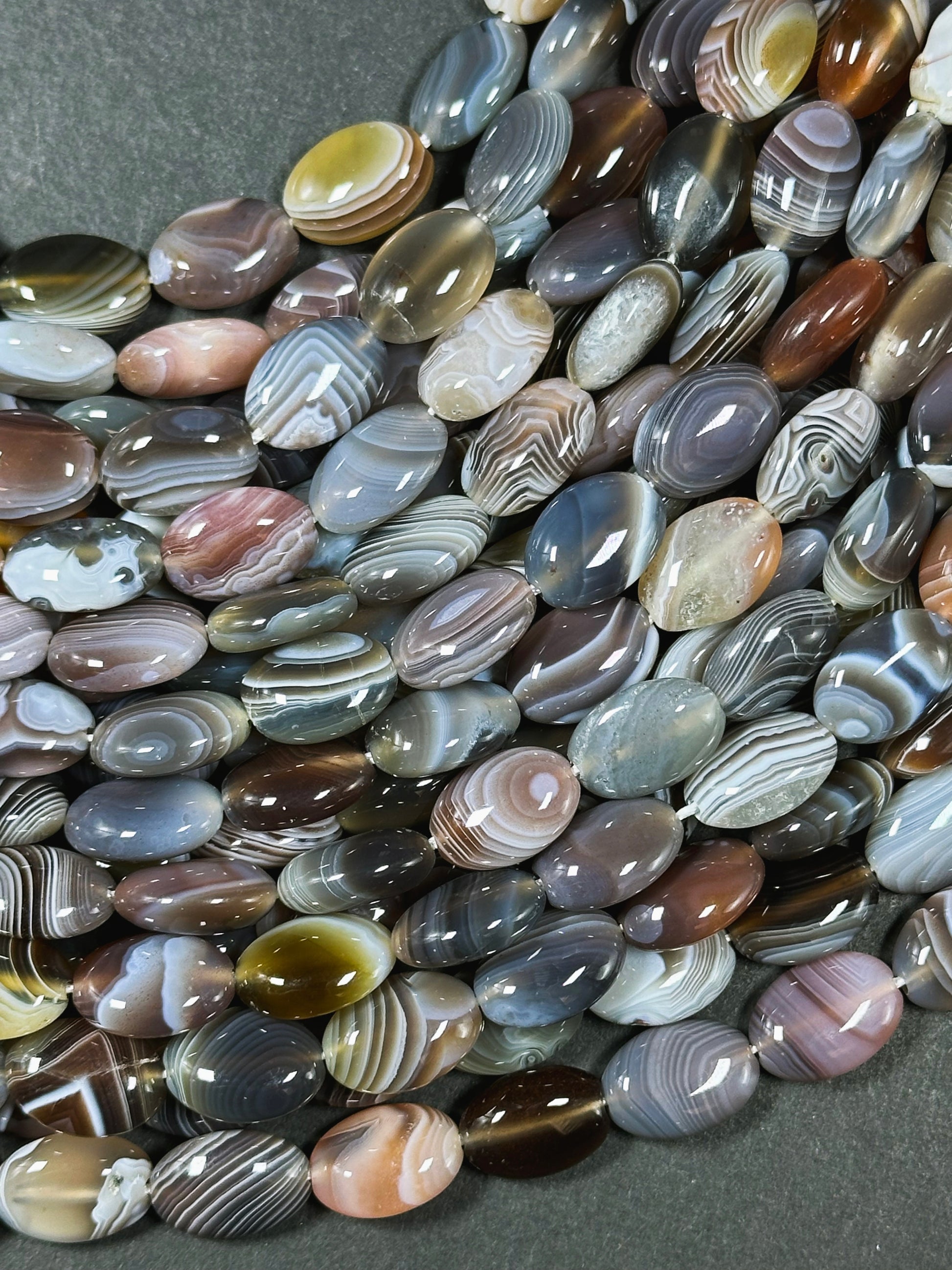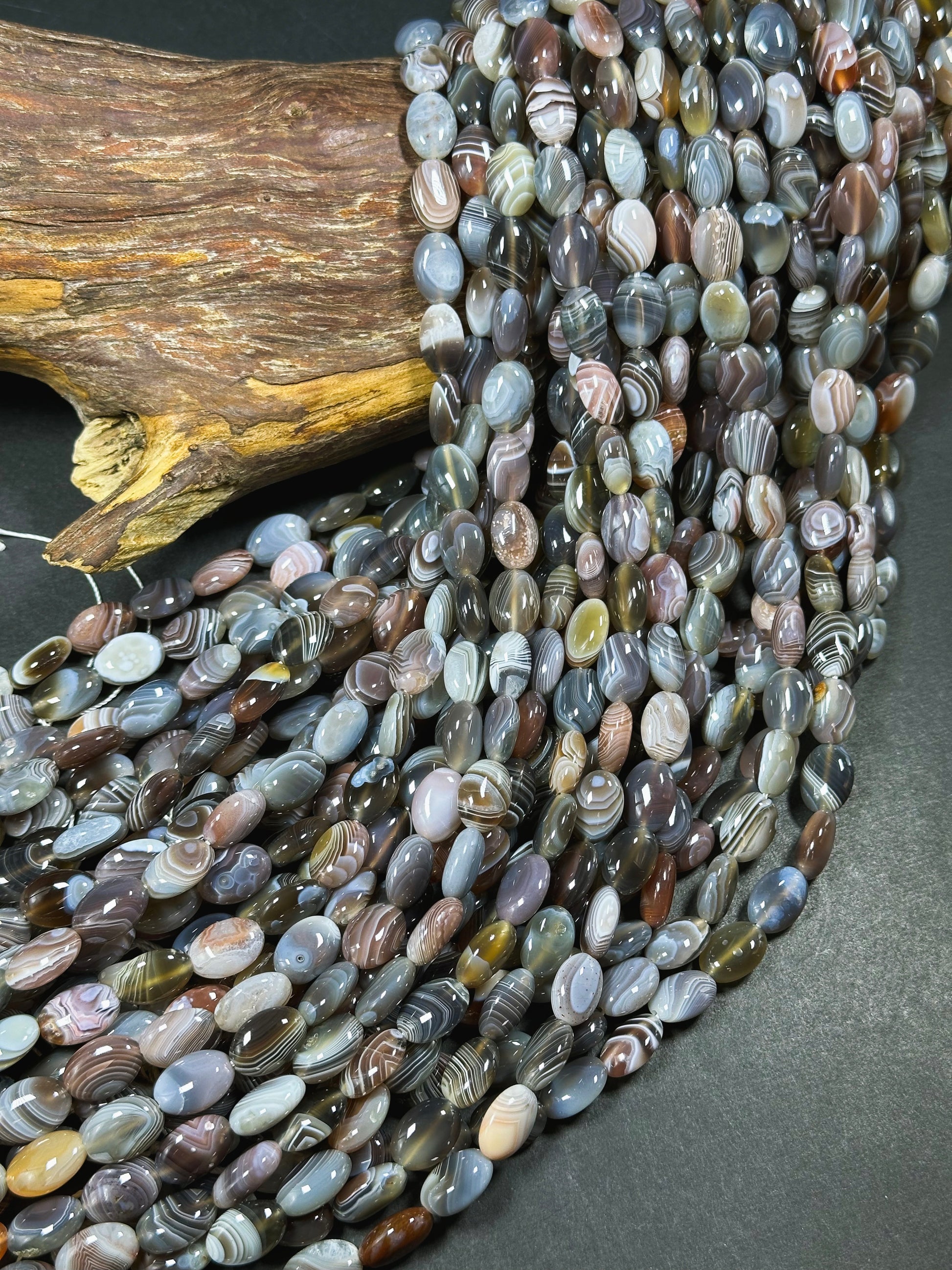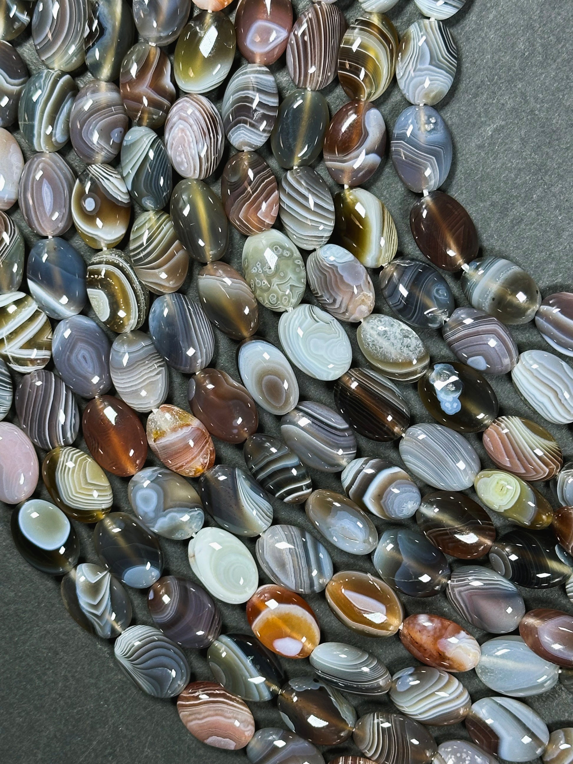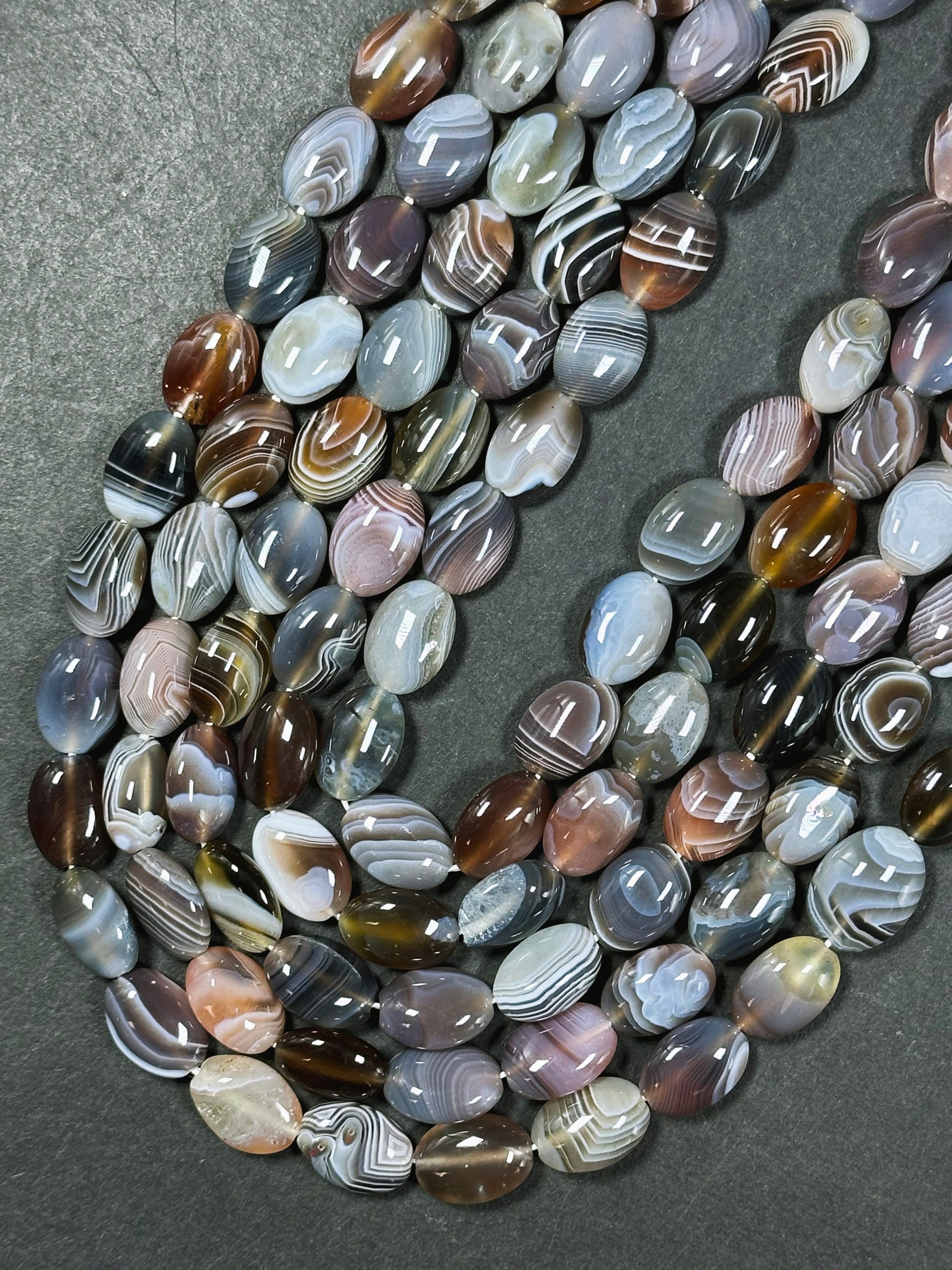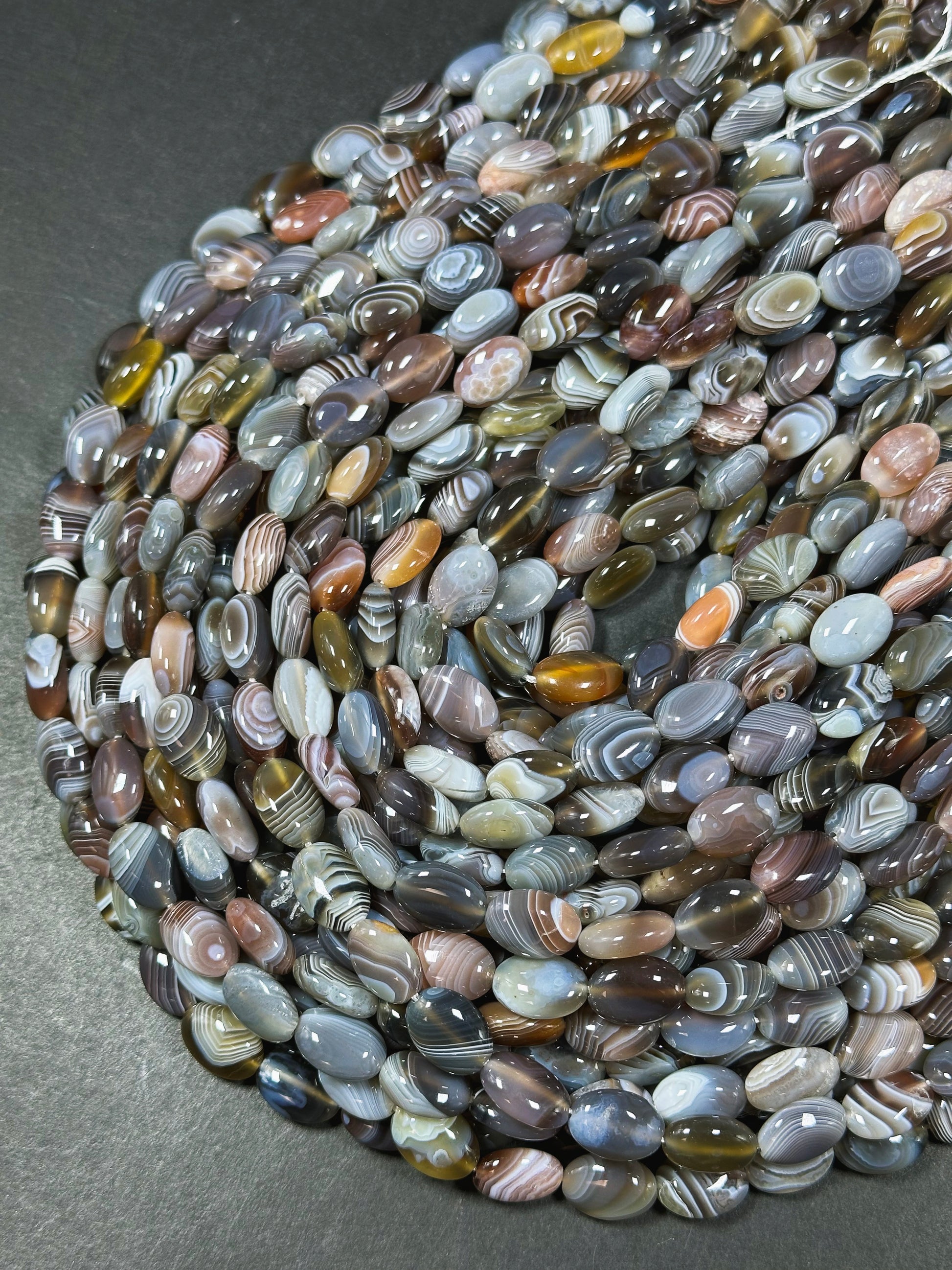 AAA Natural Botswana Agate Gemstone Bead 10x14mm Oval Shape, Beautiful Natural Gray Brown Color Agate, Excellent Quality Full Strand 15.5"