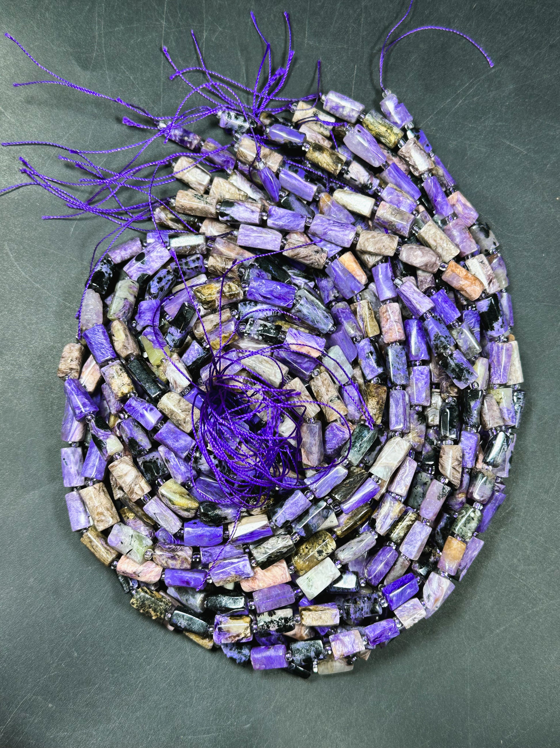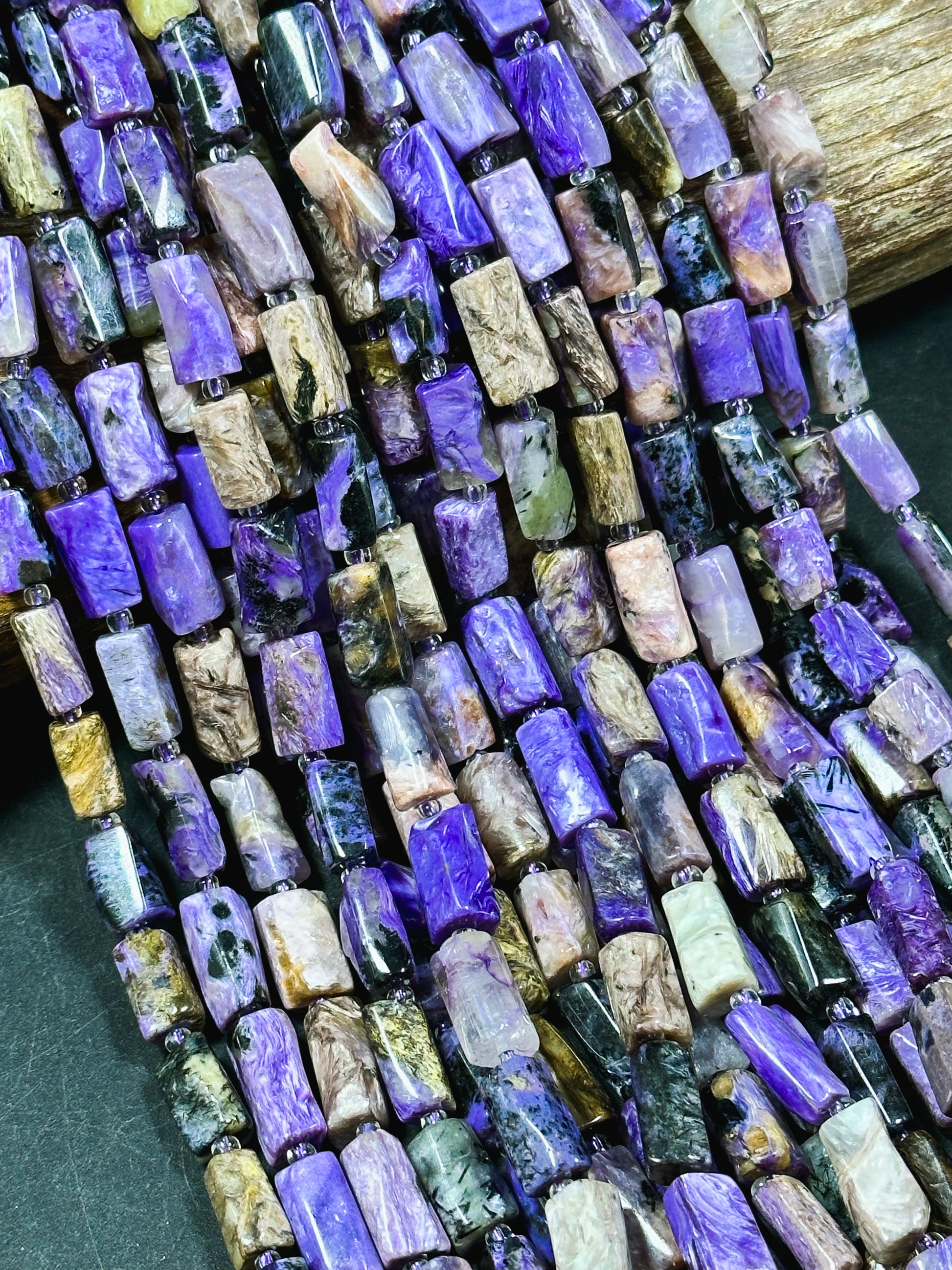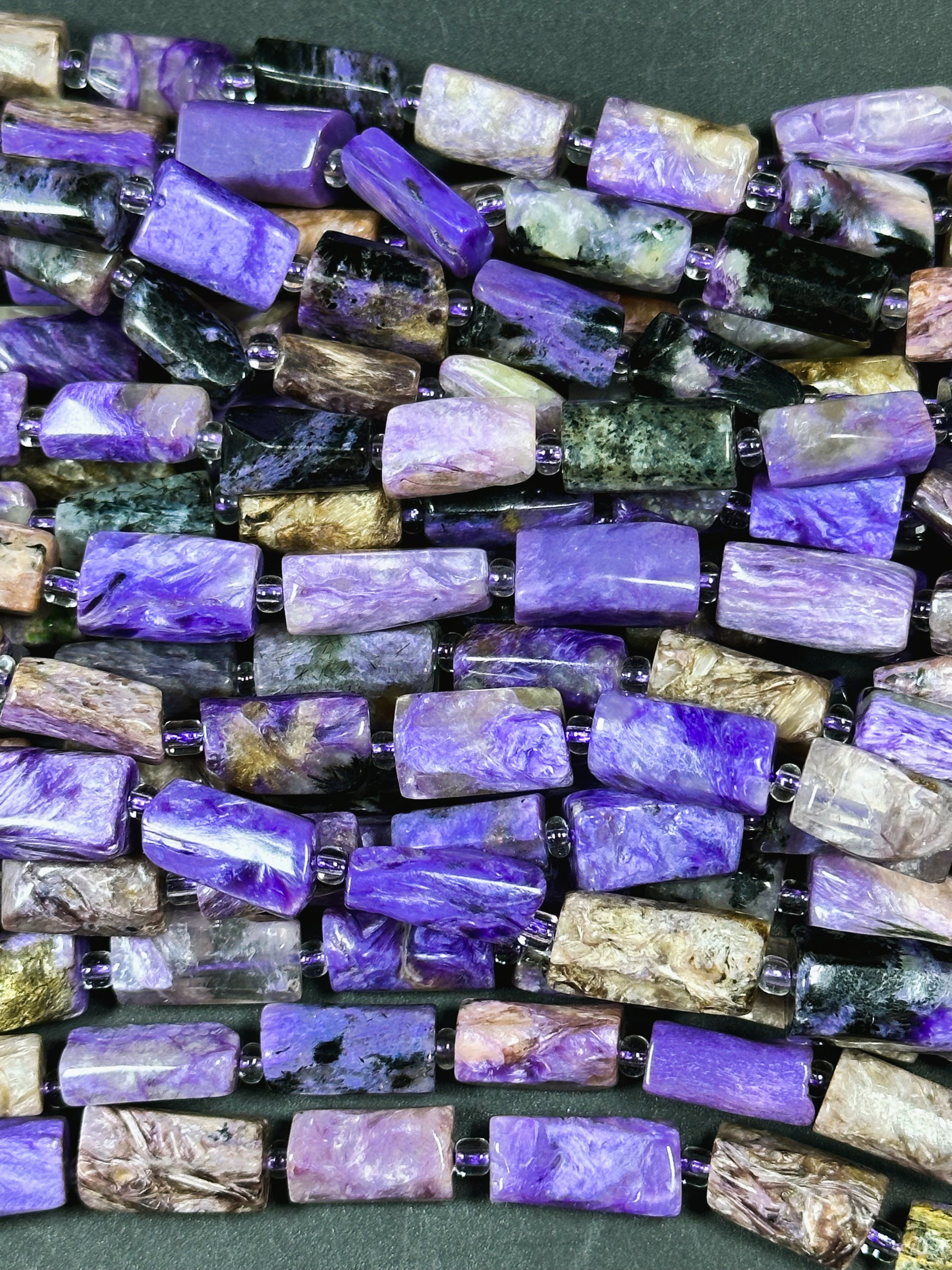 AAA NATURAL Charoite Gemstone Bead 14x8mm Tube Shape Bead, Gorgeous Natural Purple Black Color Charoite Gemstone Bead, Excellent Quality Charoite