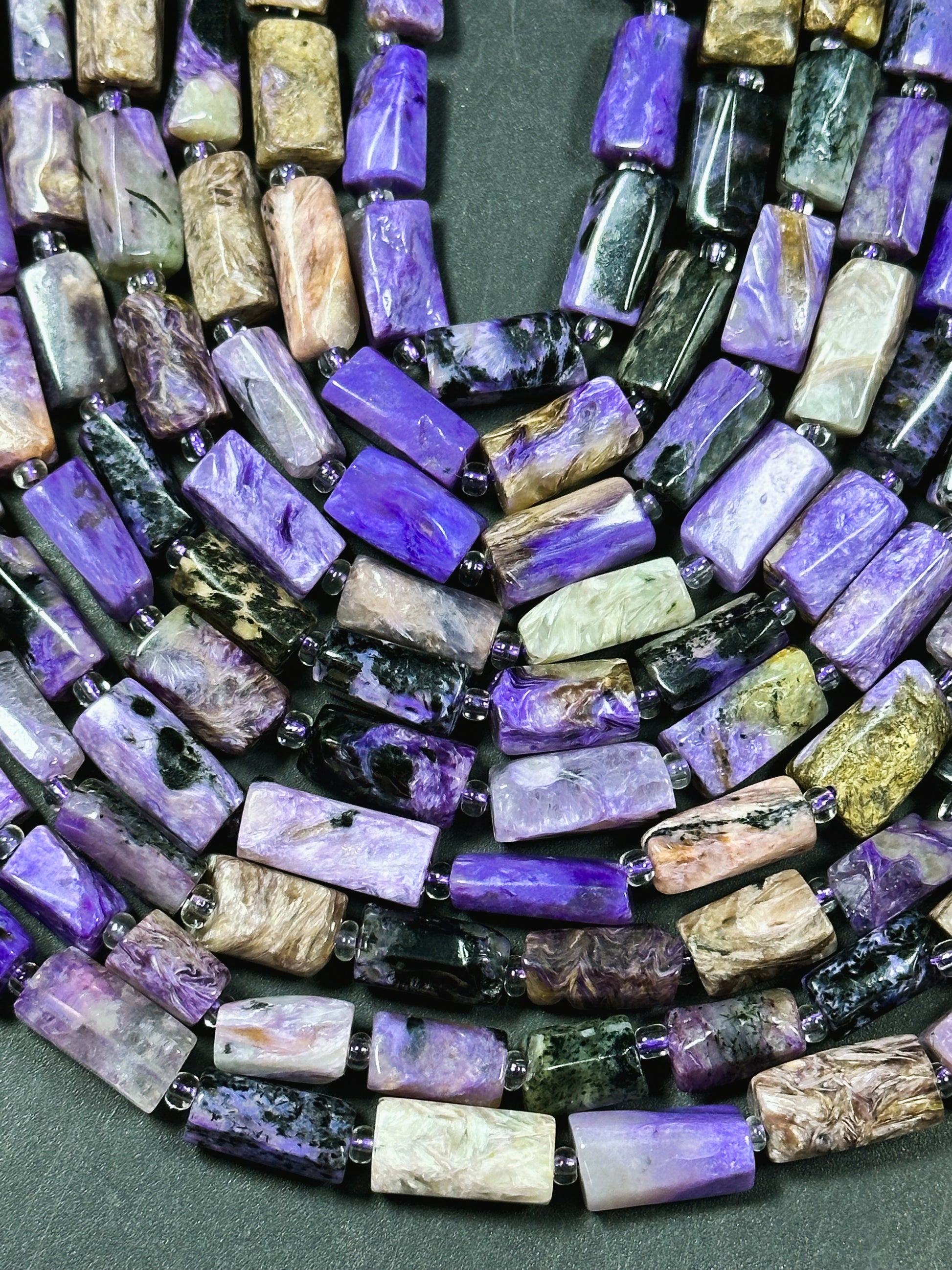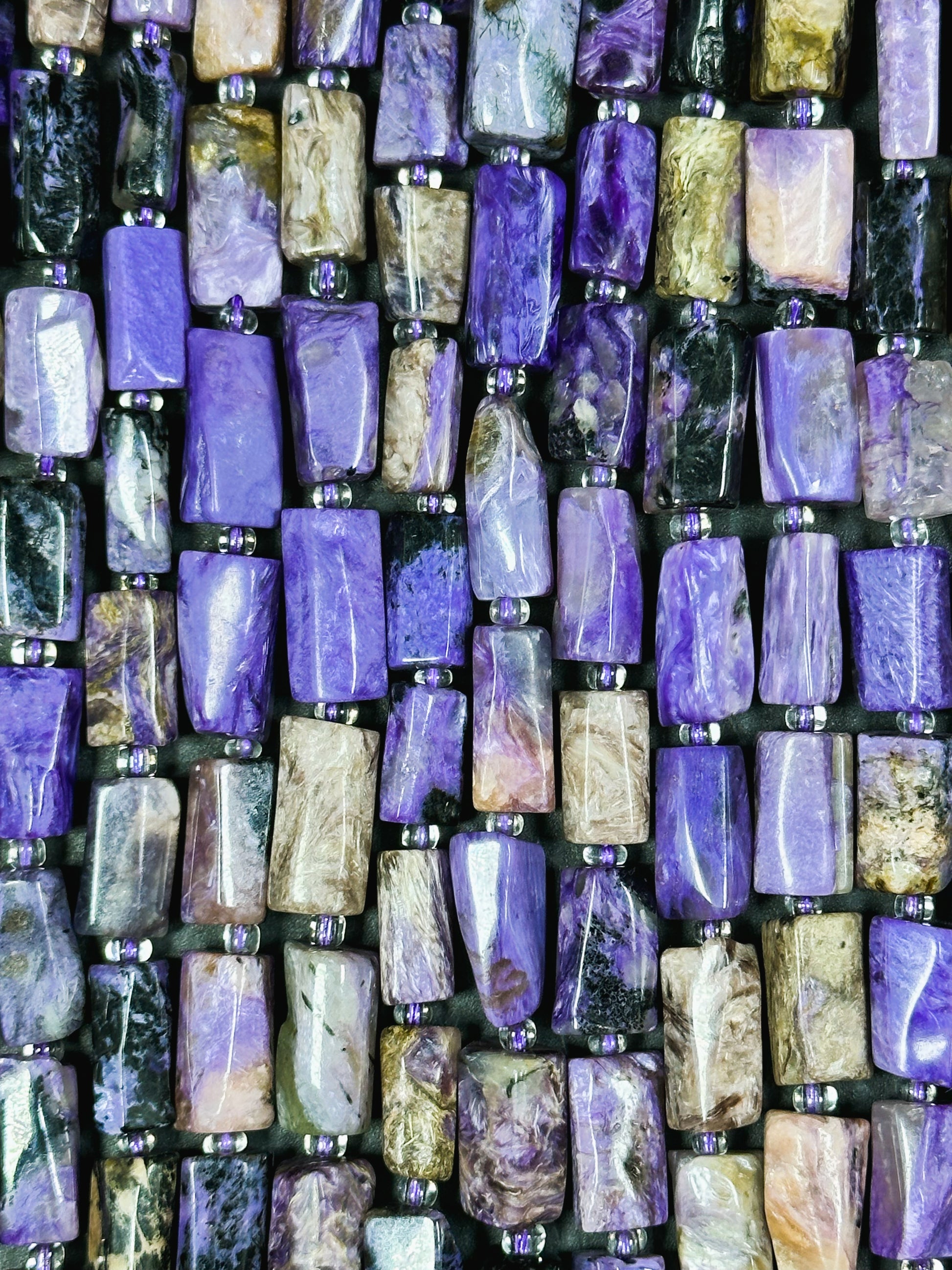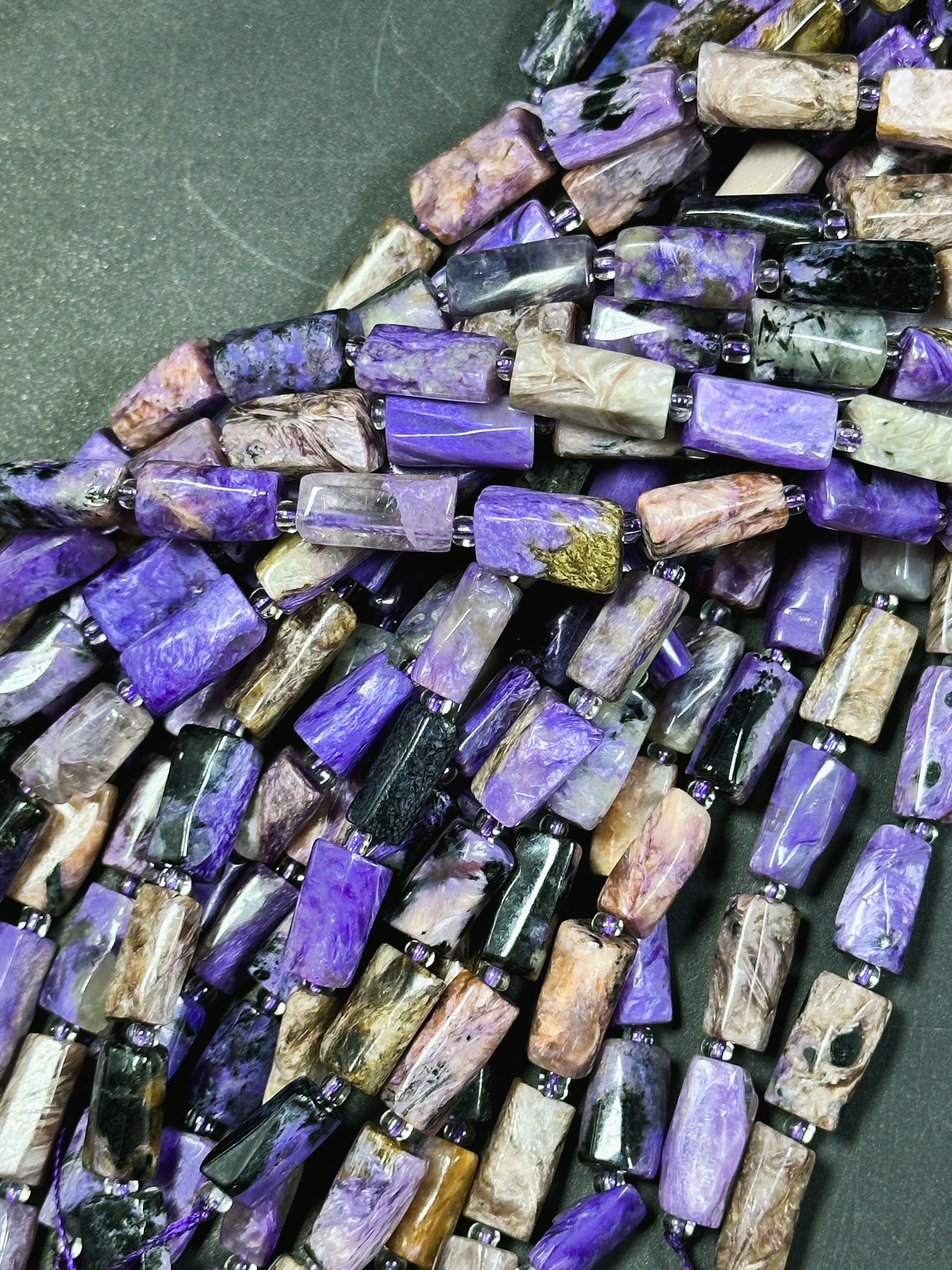 AAA NATURAL Charoite Gemstone Bead 14x8mm Tube Shape Bead, Gorgeous Natural Purple Black Color Charoite Gemstone Bead, Excellent Quality Charoite