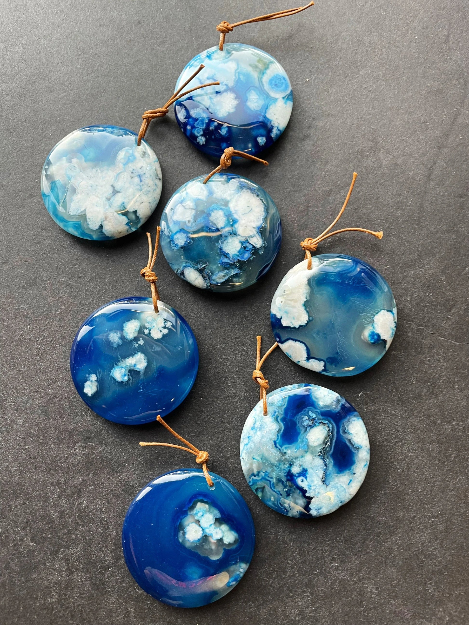 AAA Natural charry blossom flower stone pendant. 50mm coin shape pendant. Gorgeous blue white blossom flower agate pendant. Real nice quality.