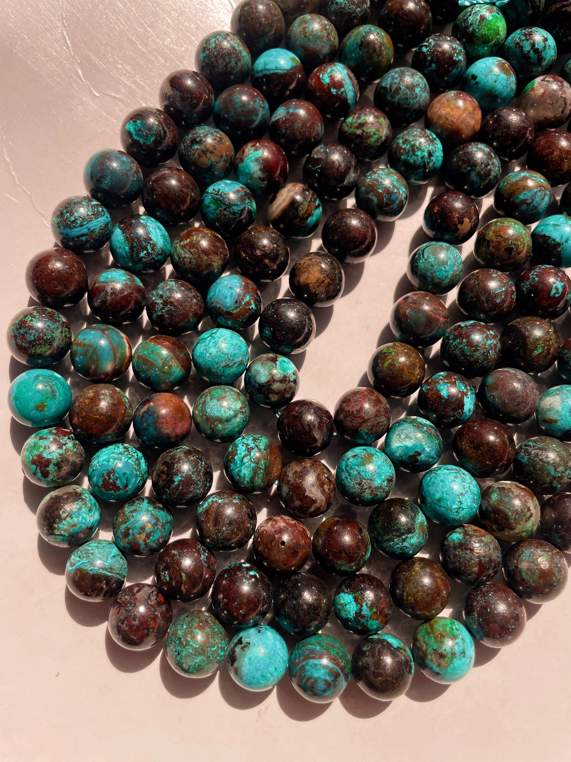 AAA Natural chrysocolla azurite gemstone round bead. 6mm 8mm 10mm round stone bead. Excellent quality. Natural turquoise blue color with brown