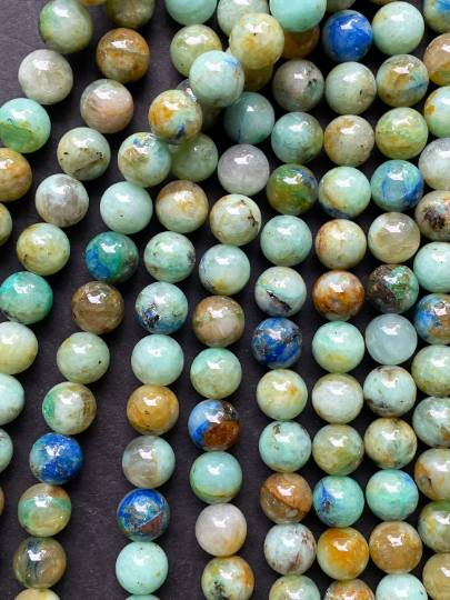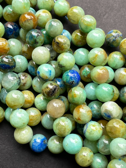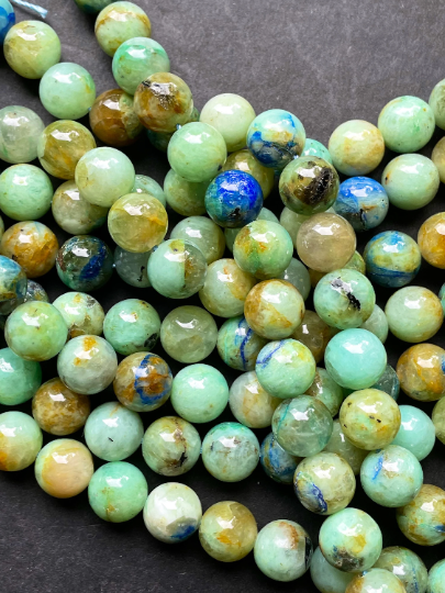 AAA Natural chrysocolla stone bead. 6mm 8mm 10mm round bead . Beautiful natural green blue yellow brown color chrysocolla stone bead . Real nice quality ! Full strand length.