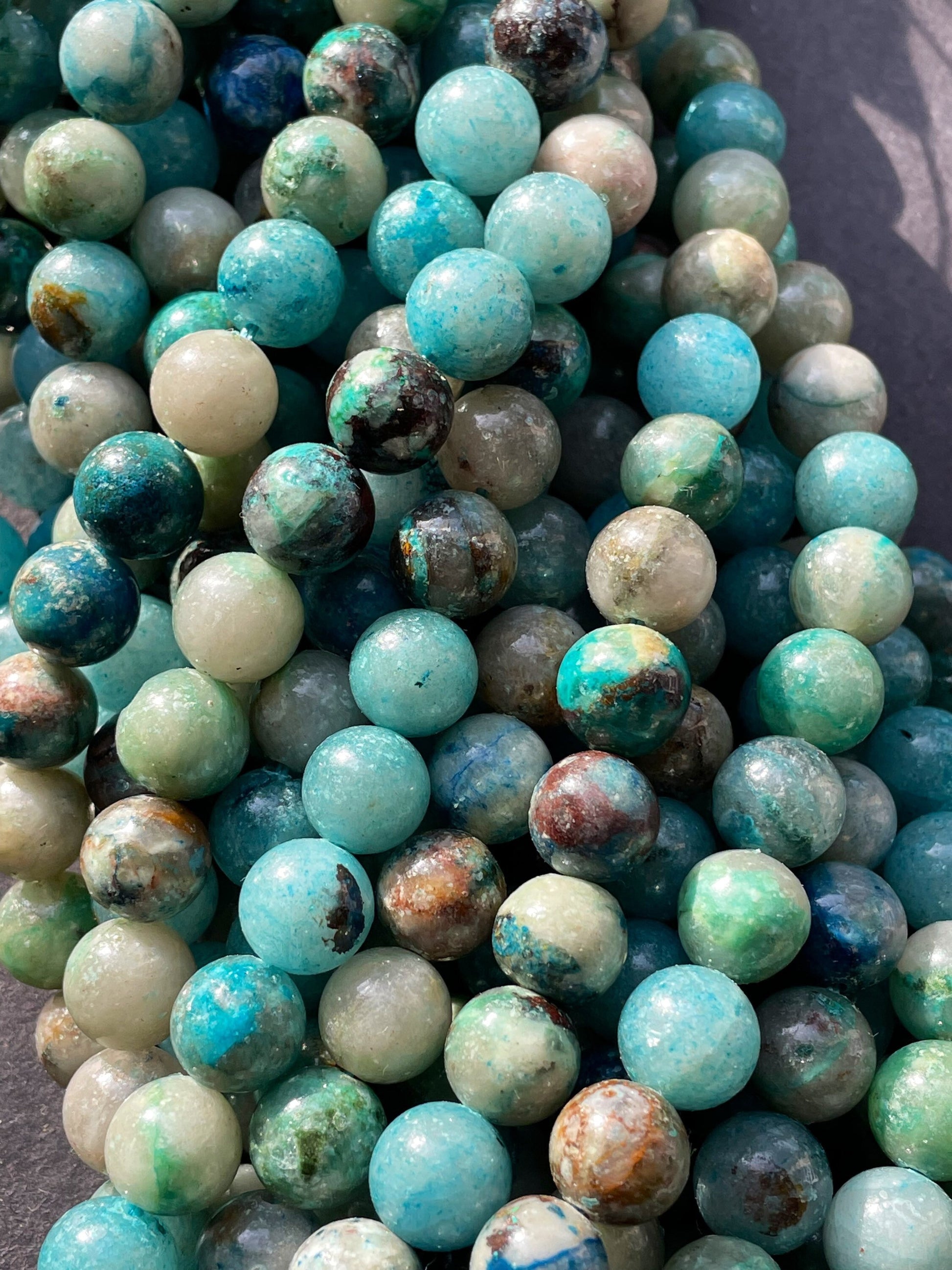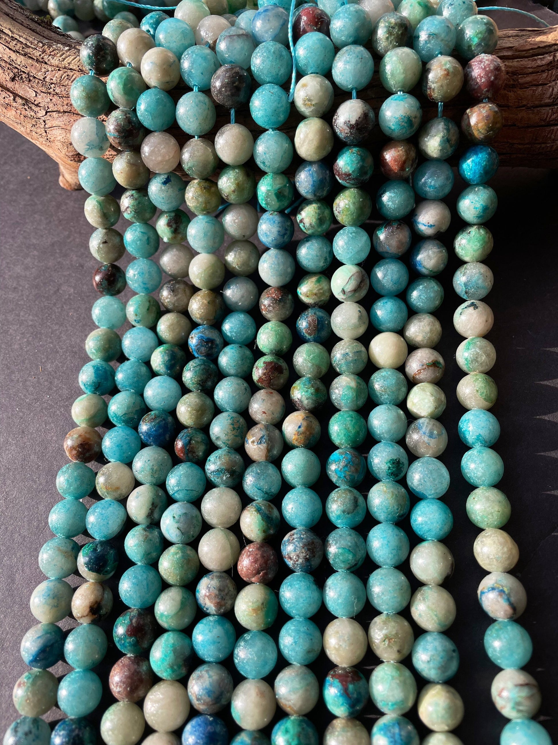 AAA Natural beautiful chrysocolla stone bead . 6mm 8mm 10mm round bead. Beautiful natural turquoise blue with brown color chrysocolla gemstone. Full strand length. Nice quality chrysocolla bead!