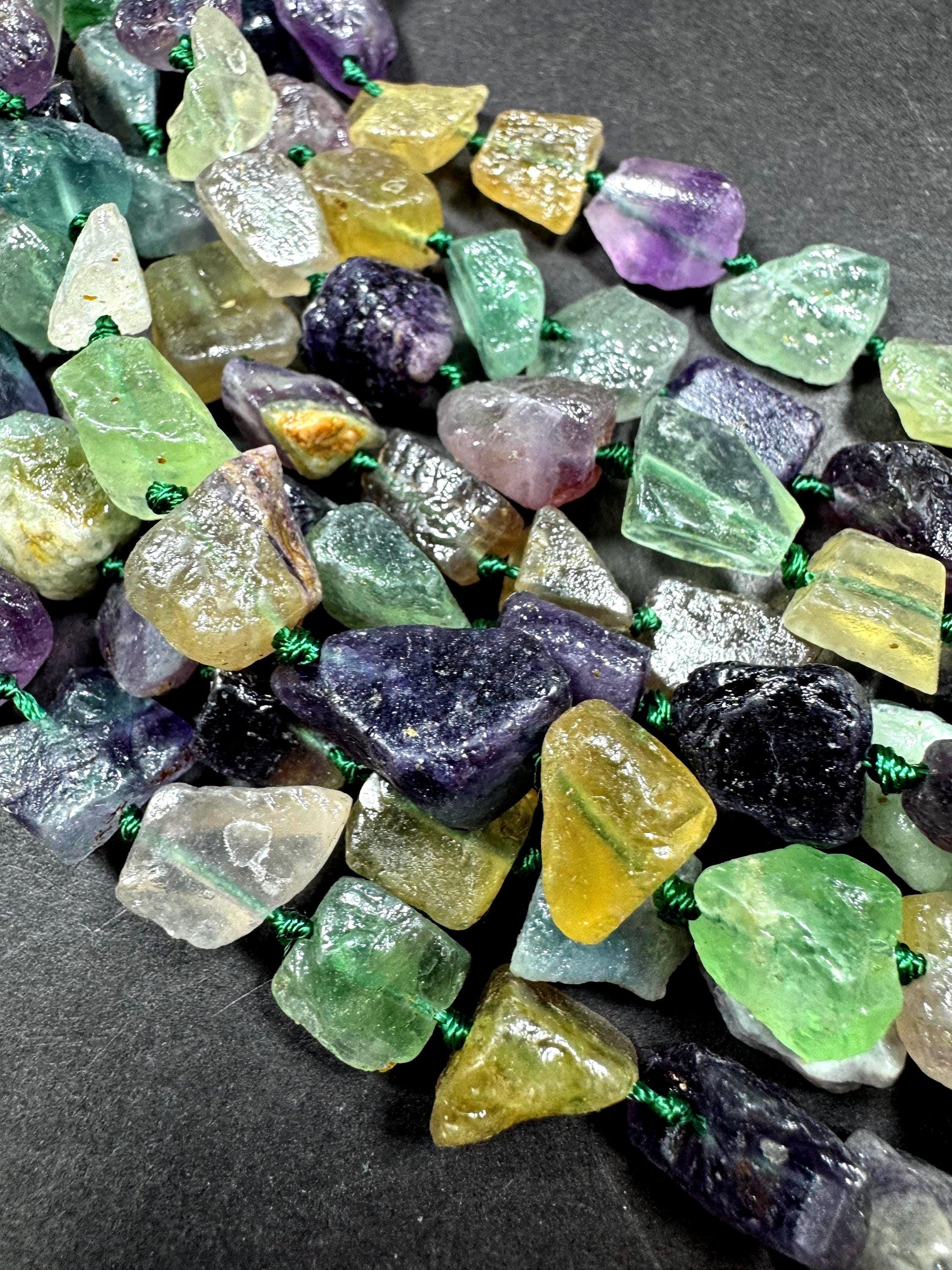 AAA Natural Fluorite Gemstone Bead. Freedom nugget shape beautiful Natural green purple color. Excellent quality. Full strand 15.5”