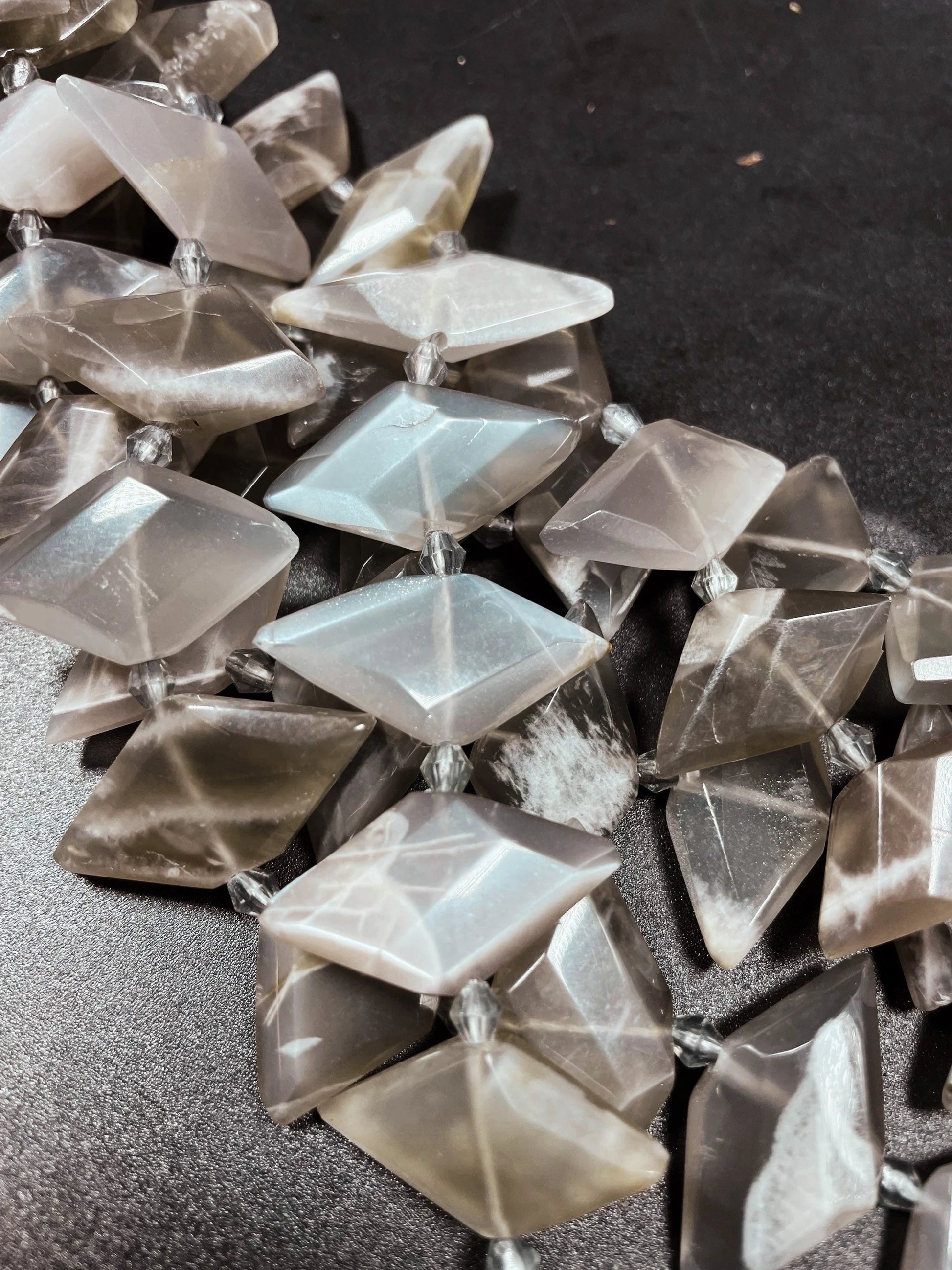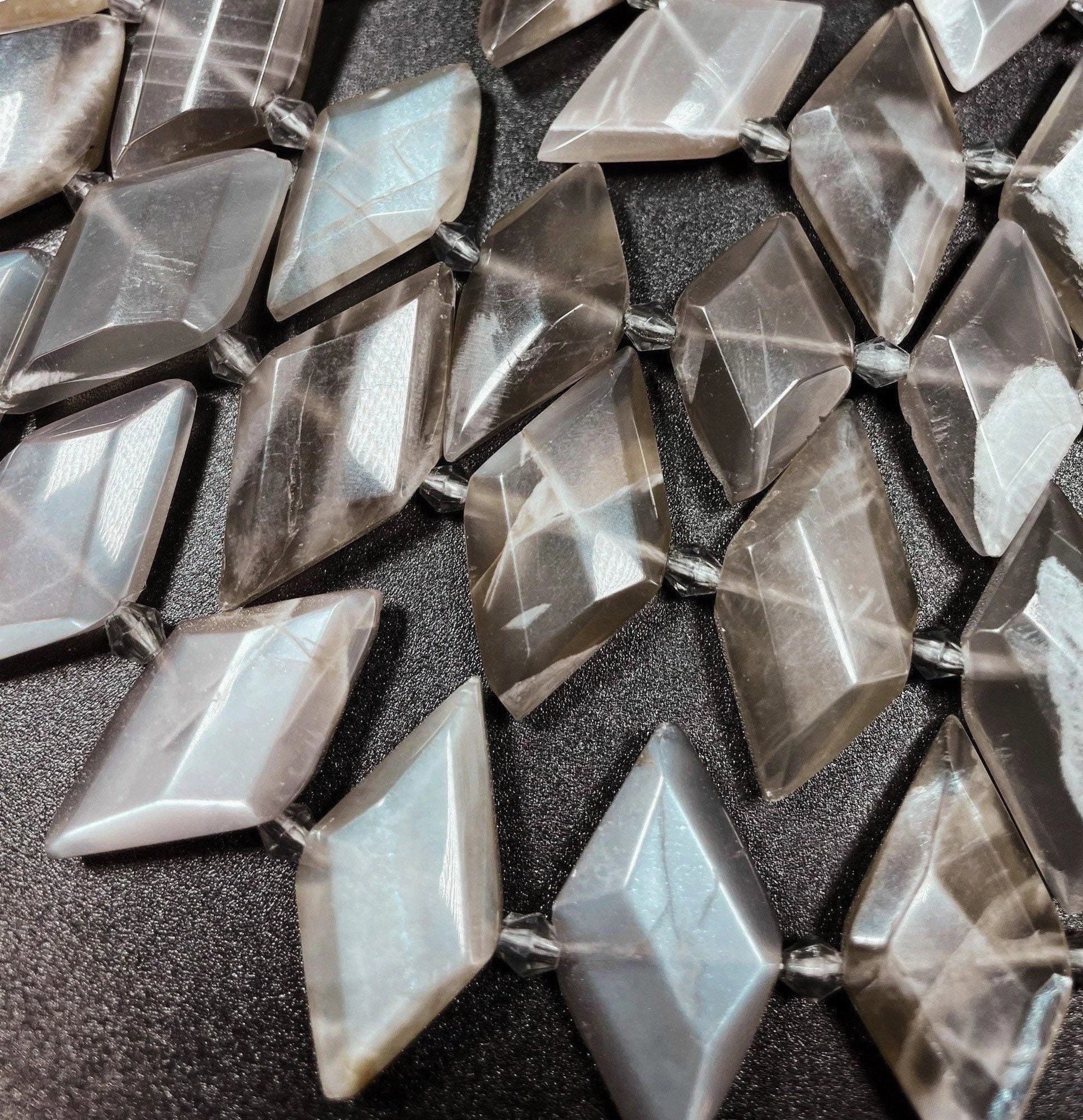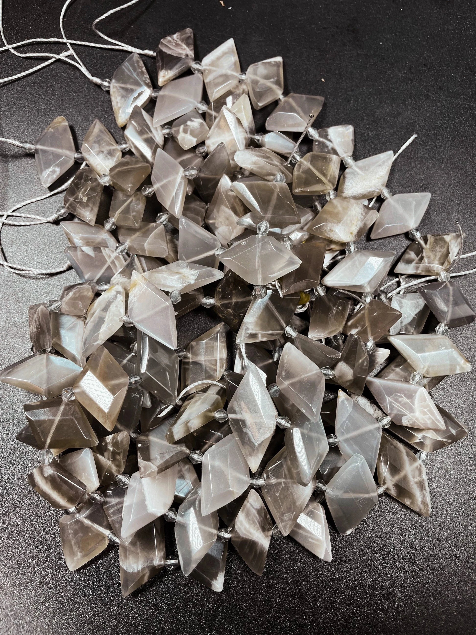 AAA Natural Gray Moonstone Gemstone Bead. 16x28mm diamond shape. Gorgeous natural gray color moonstone bead. Loose bead. Full strand 15.5”