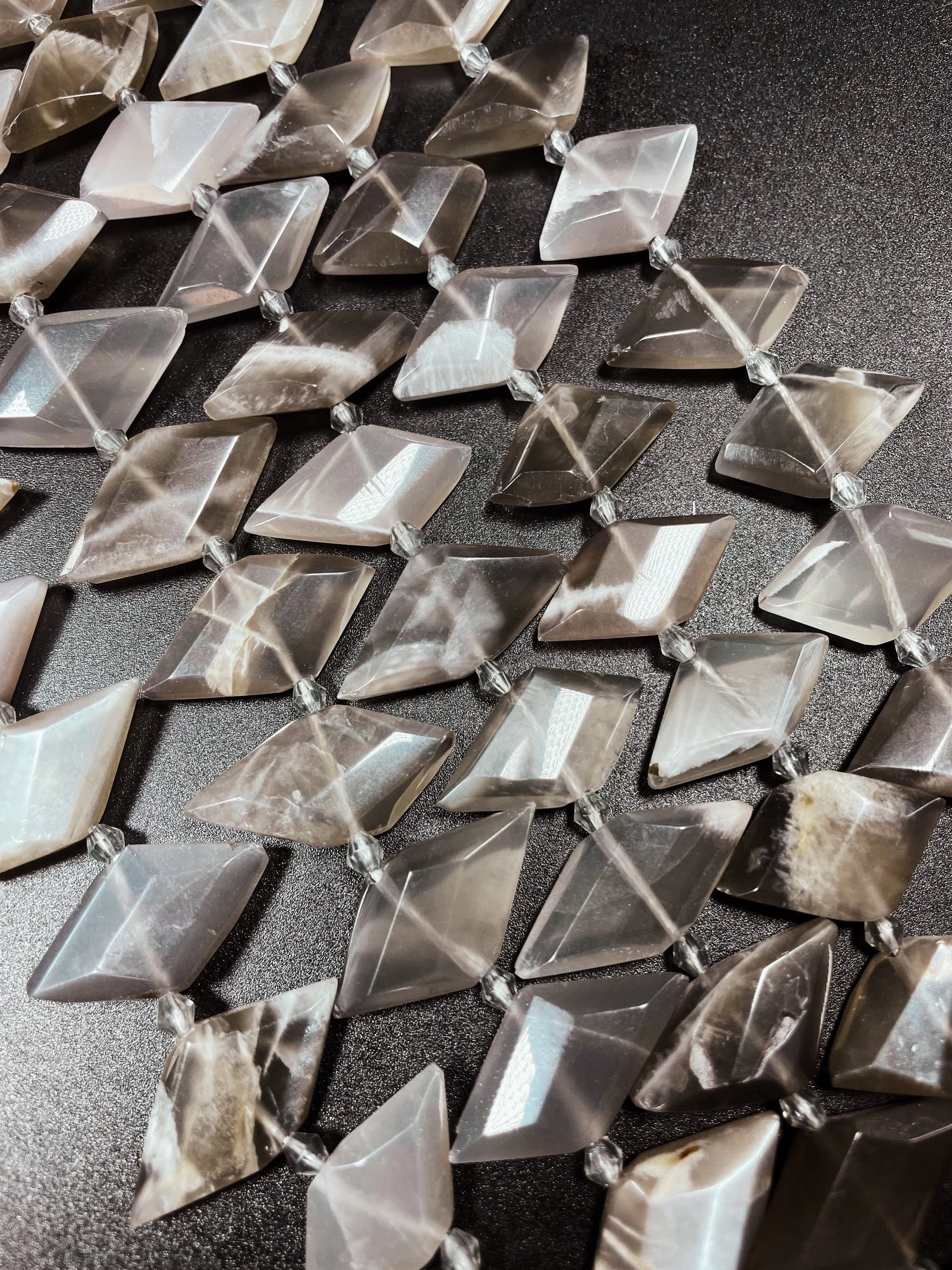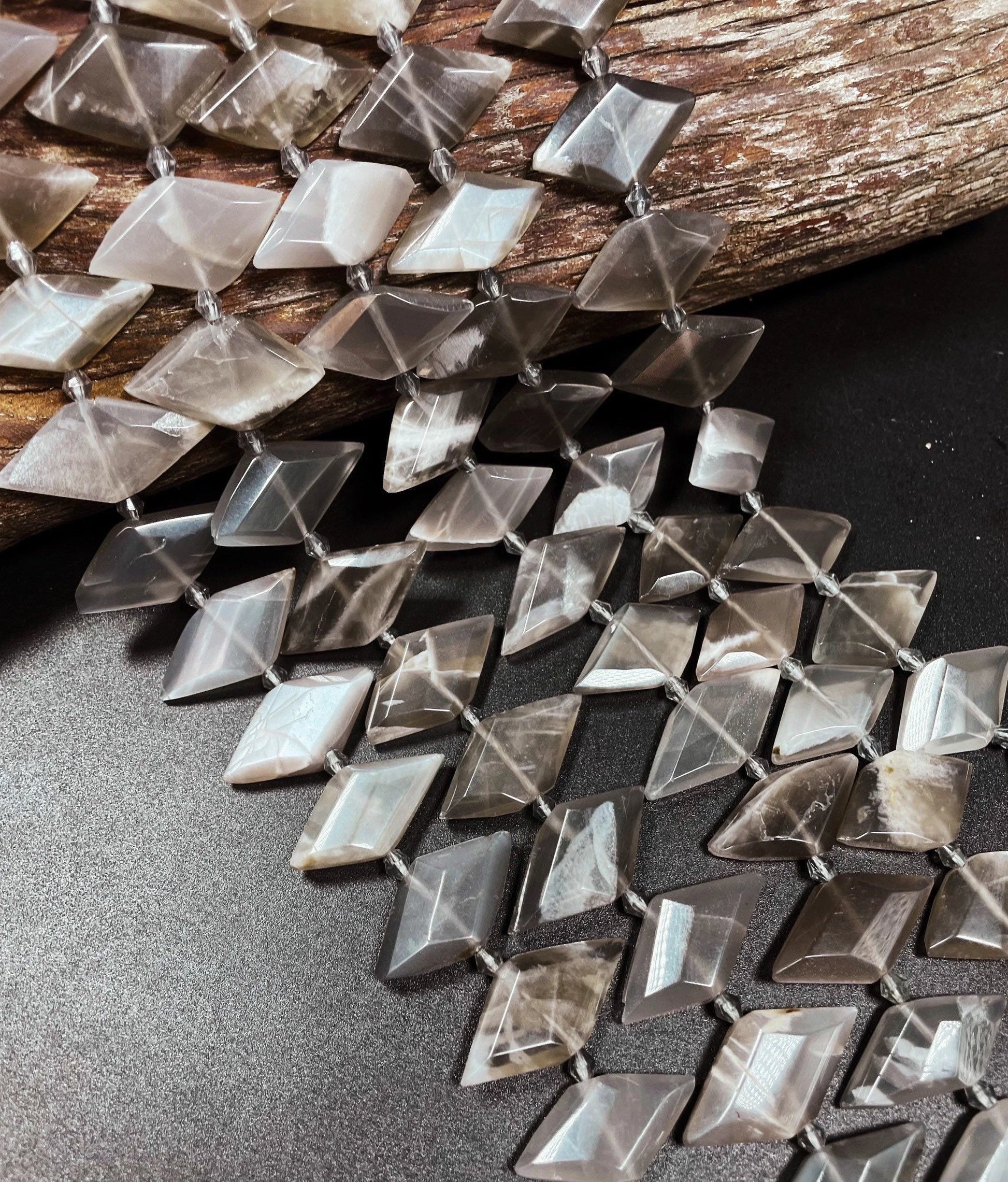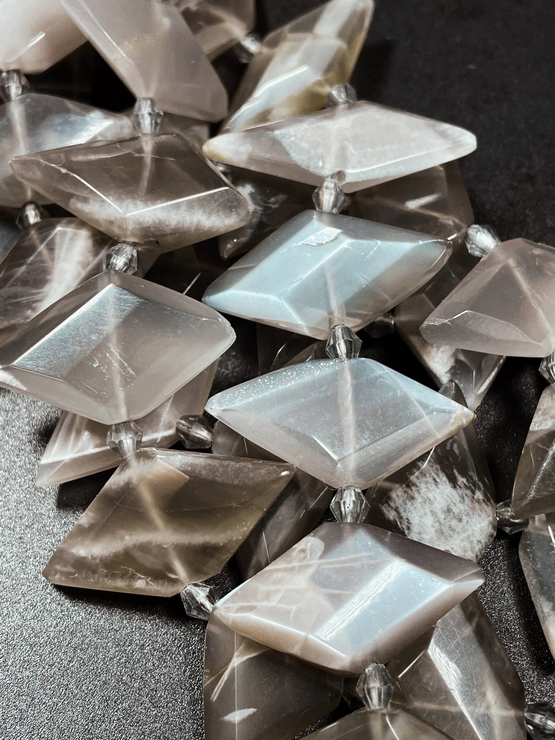 AAA Natural Gray Moonstone Gemstone Bead. 16x28mm diamond shape. Gorgeous natural gray color moonstone bead. Loose bead. Full strand 15.5”