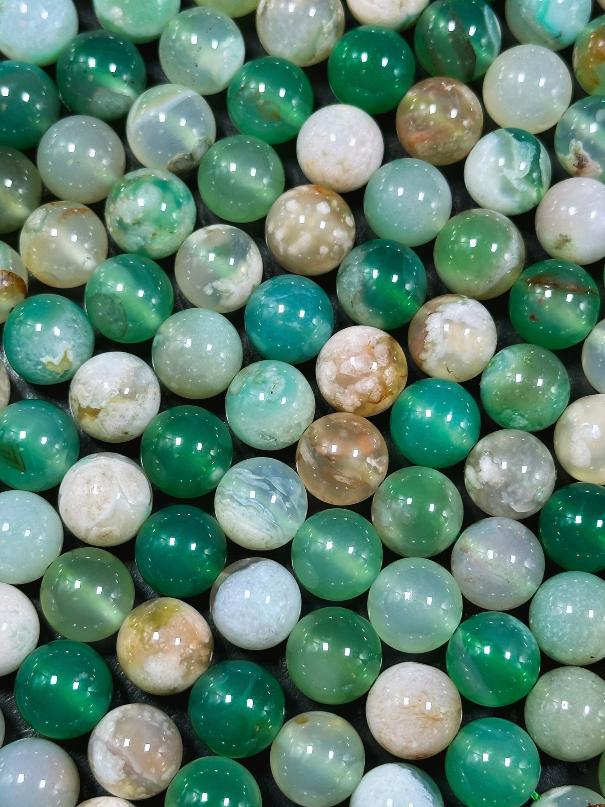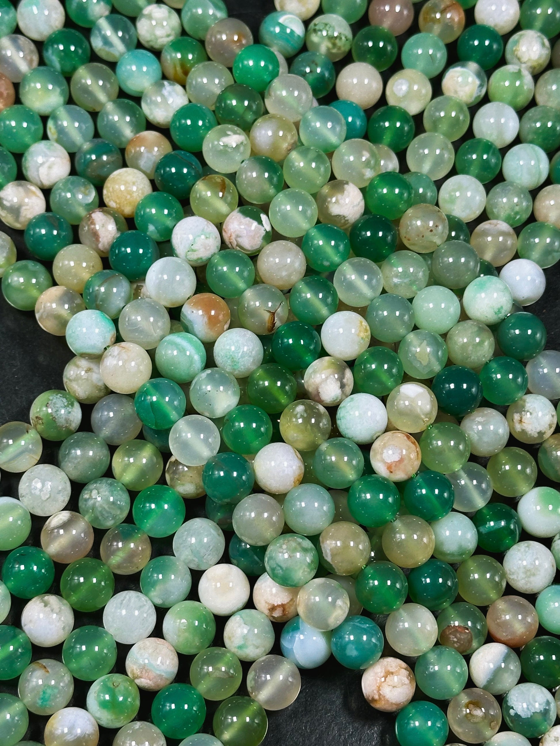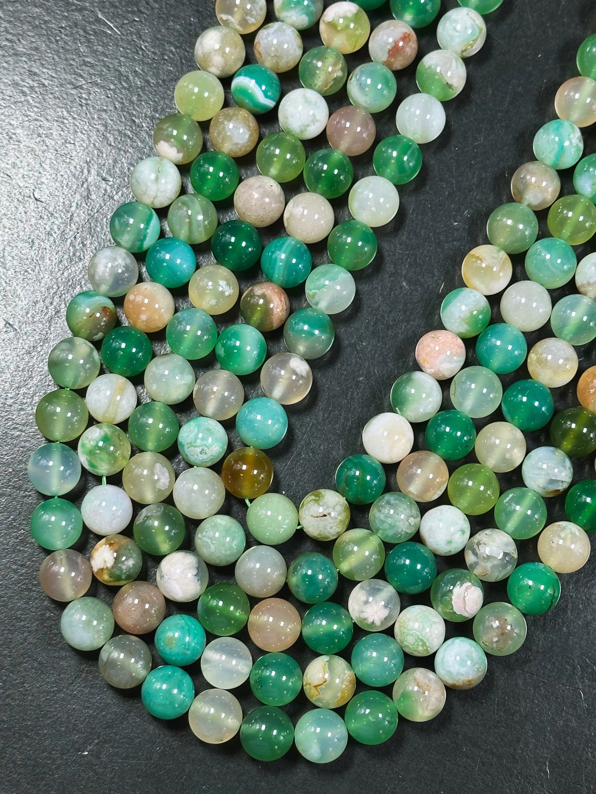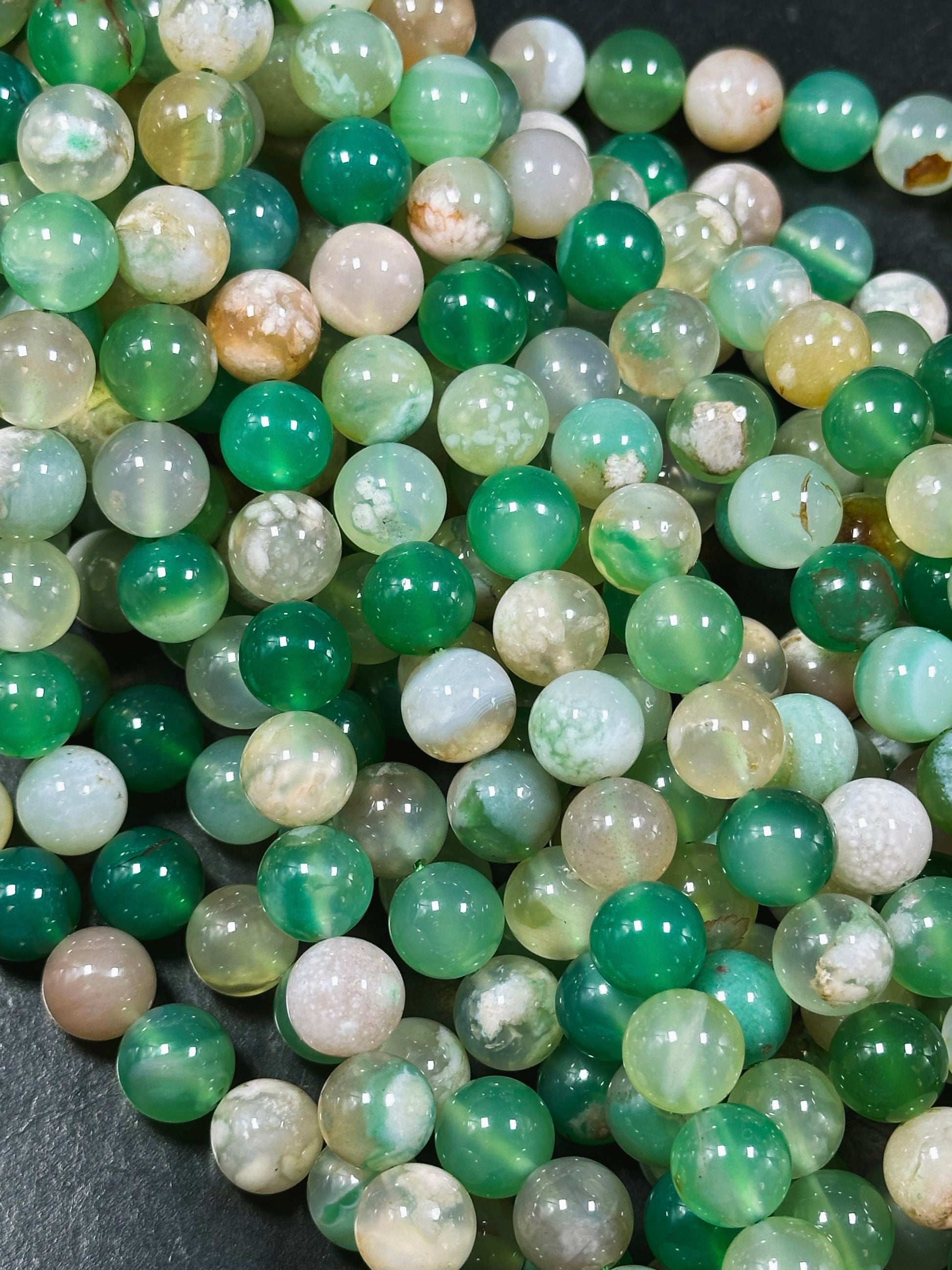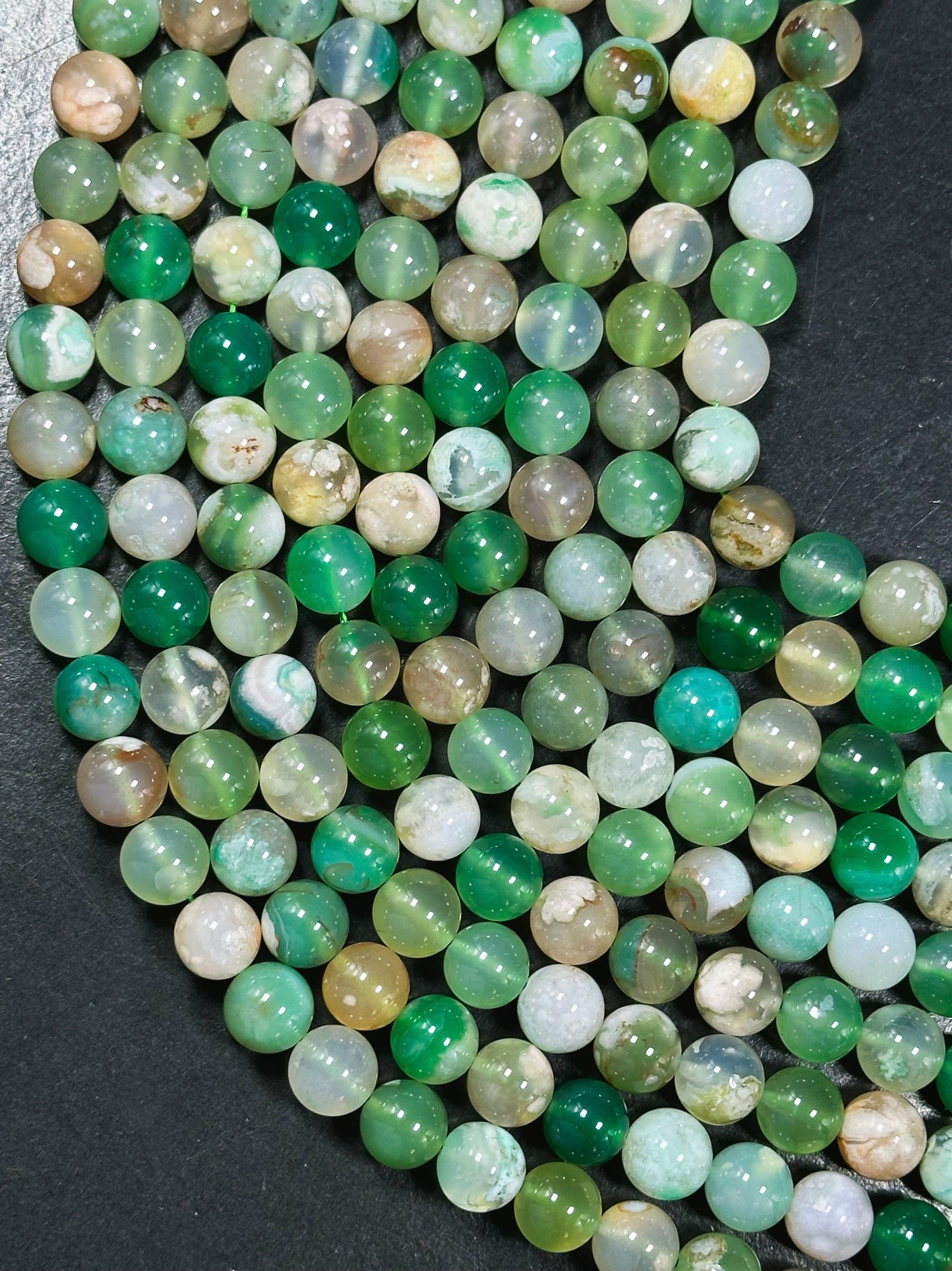 AAA Natural Green Blossom Flower Agate 6mm 8mm 10mm Round Beads, Beautiful Green Beige Color Flower Agate Beads, Excellent Quality Full Strand 15.5"