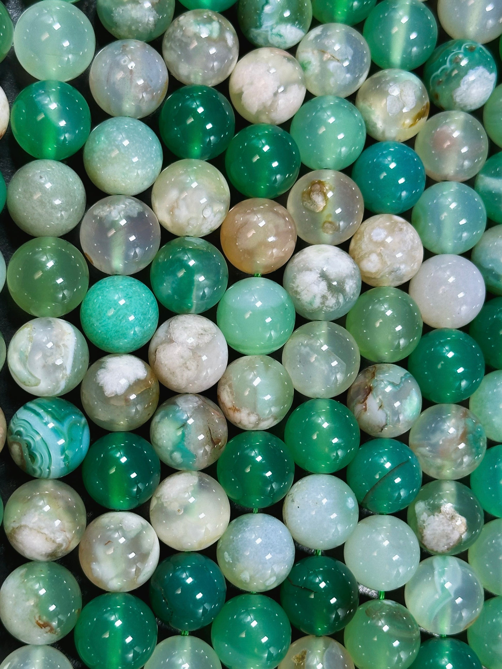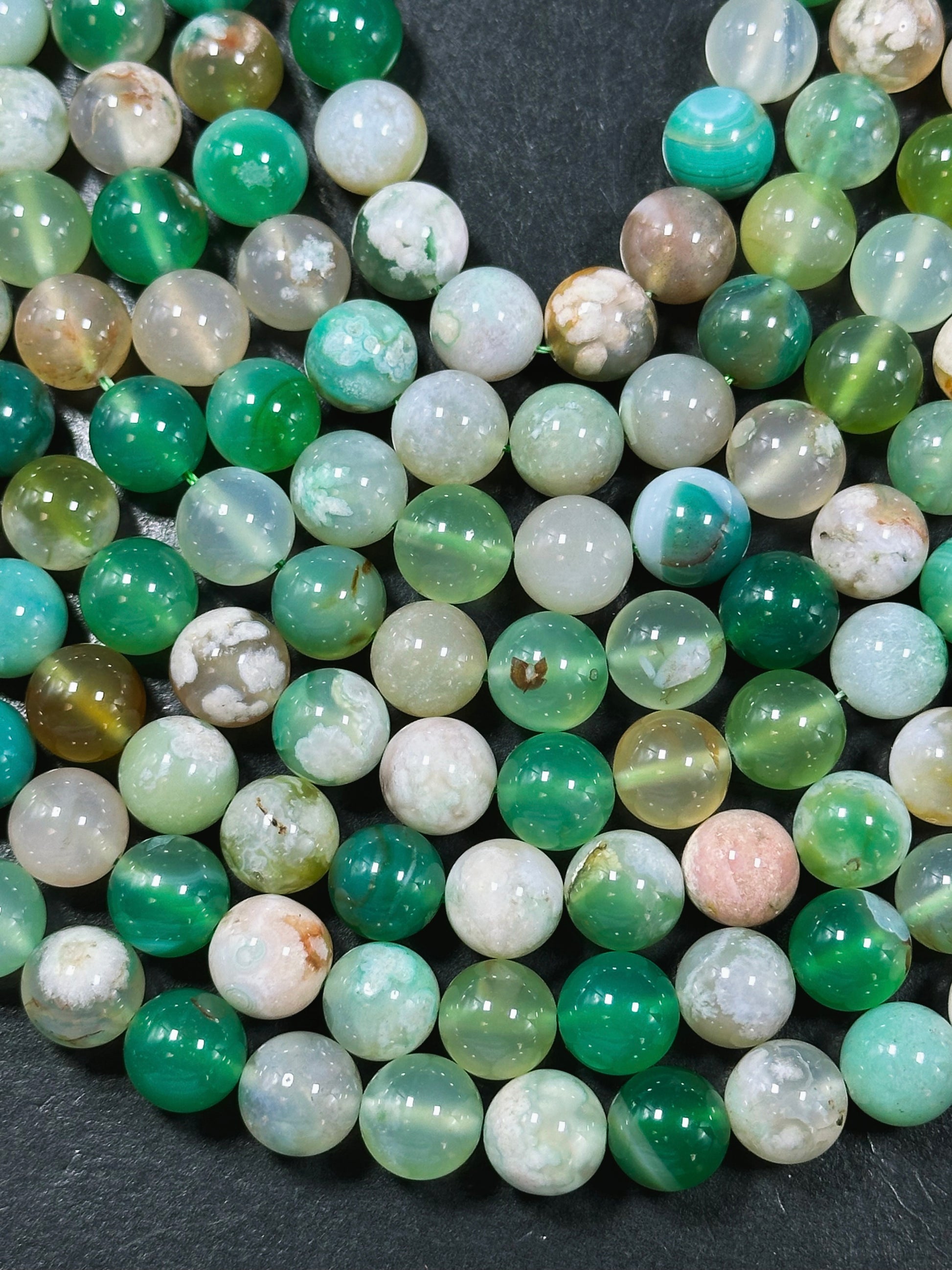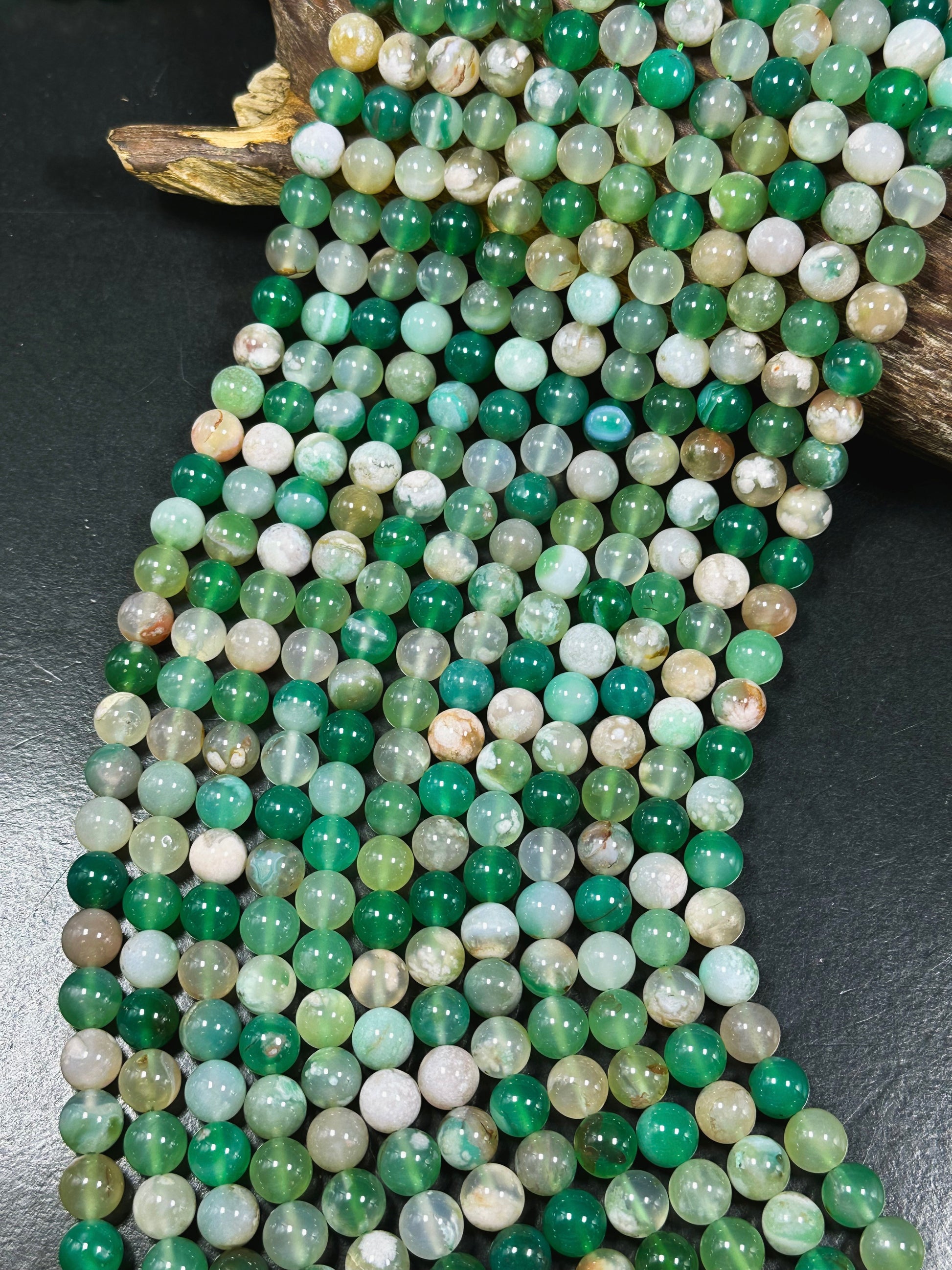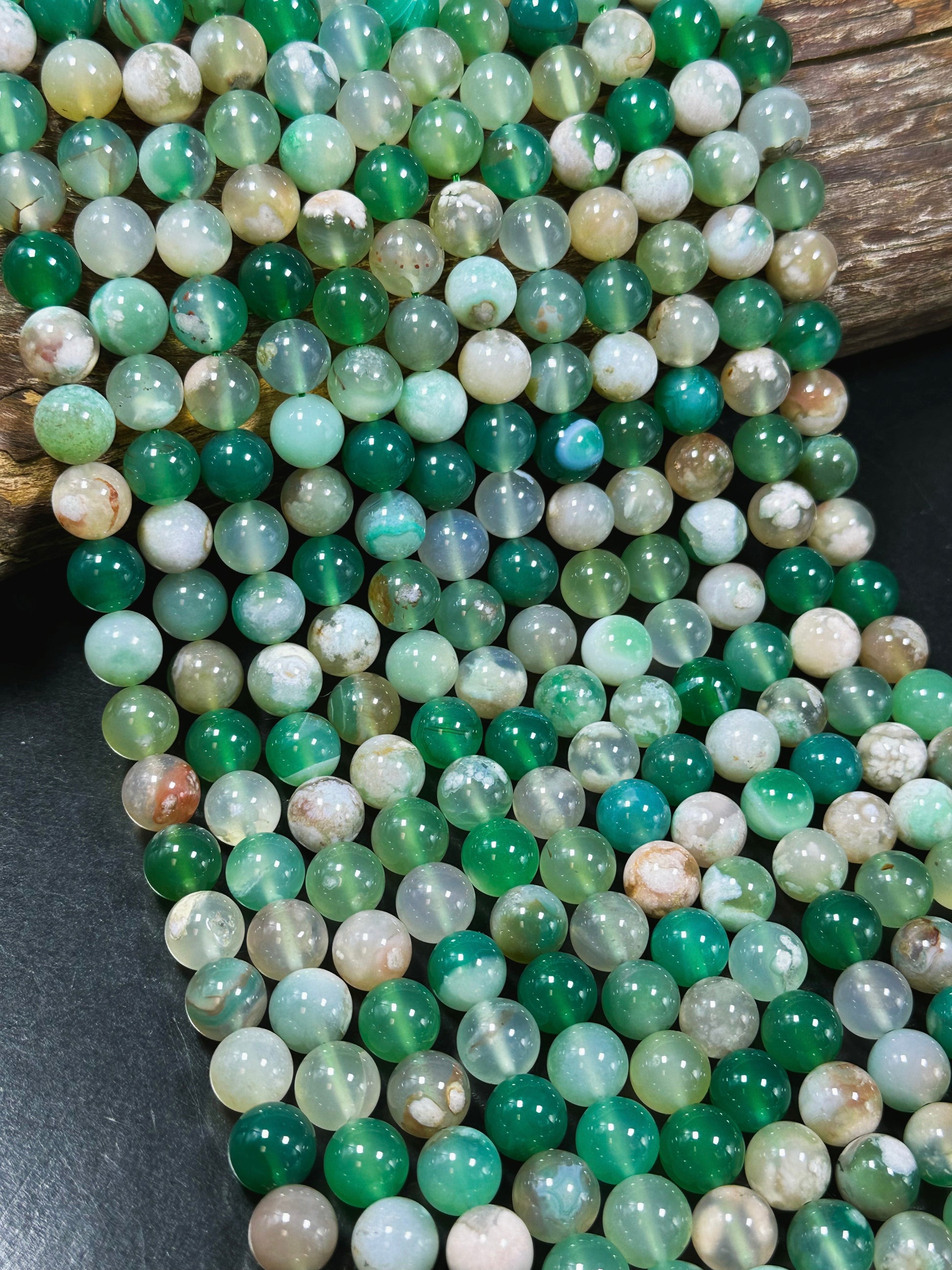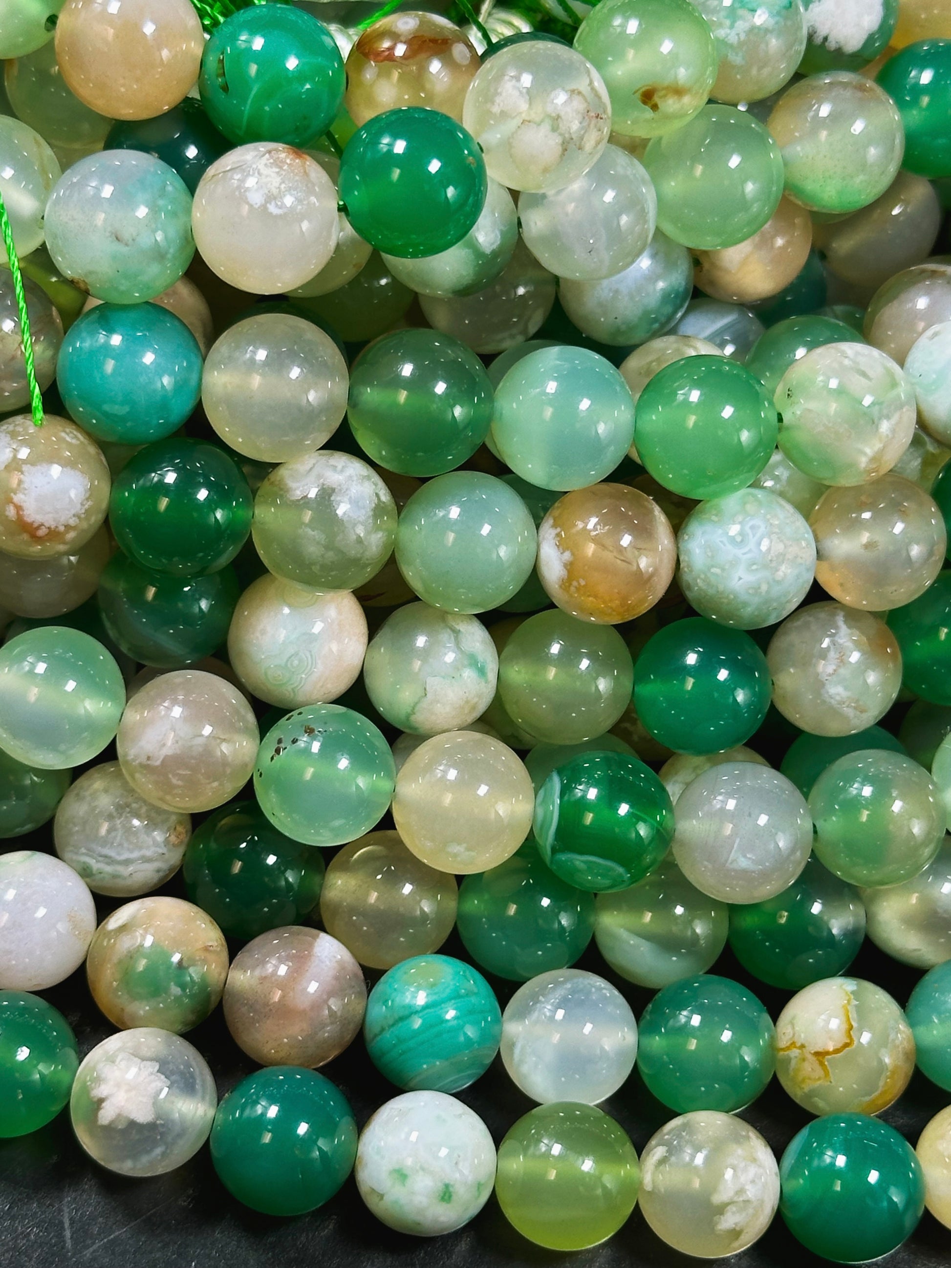 AAA Natural Green Blossom Flower Agate 6mm 8mm 10mm Round Beads, Beautiful Green Beige Color Flower Agate Beads, Excellent Quality Full Strand 15.5"