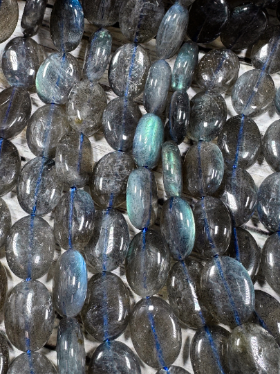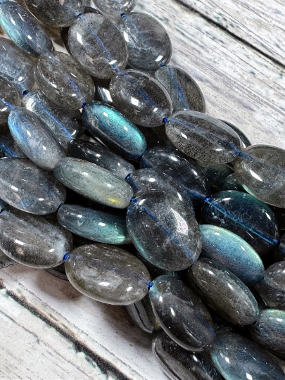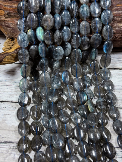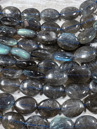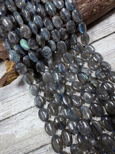 AAA Natural Labradorite Gemstone Bead 12x16mm Oval Shape, Natural Gray Blue Flash Labradorite Beads, Excellent Quality 15.5" Strand