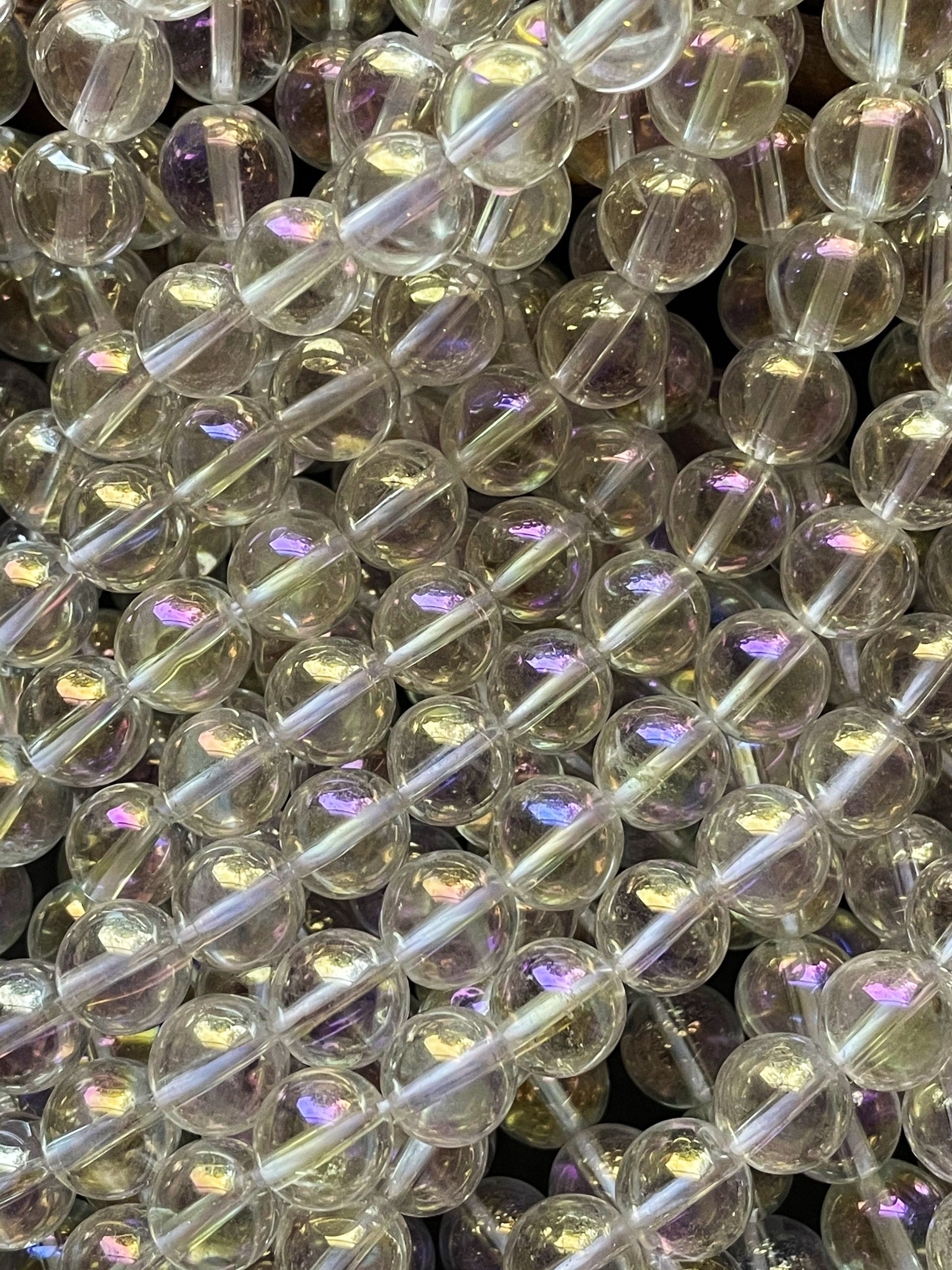 AAA Natural crystal clear quartz . 6mm 8mm 10mm 12mm round bead . Beautiful natural rainbow color clear crystal quartz . With AB coated. Stunning beautiful natural quartz stone bead !