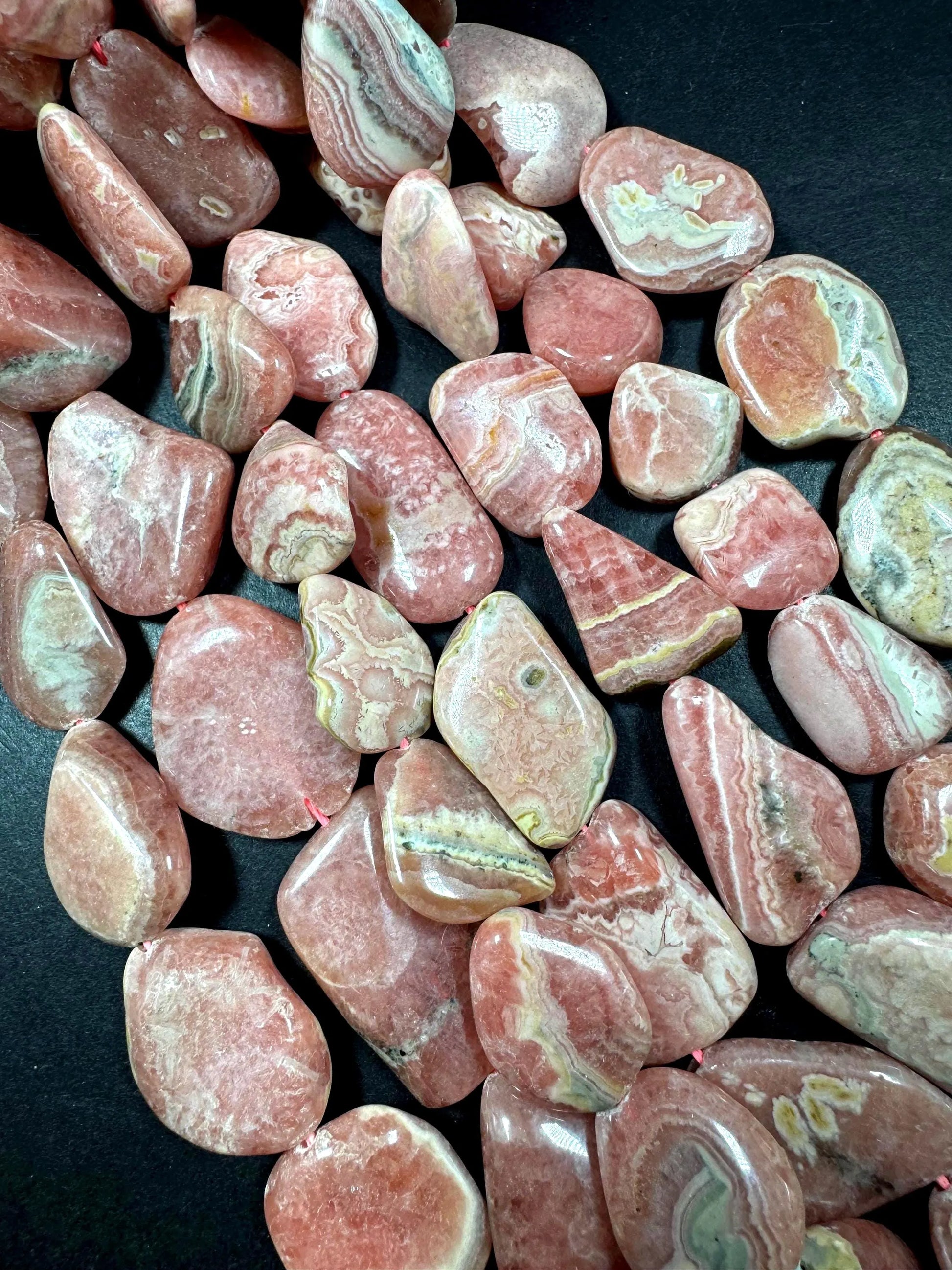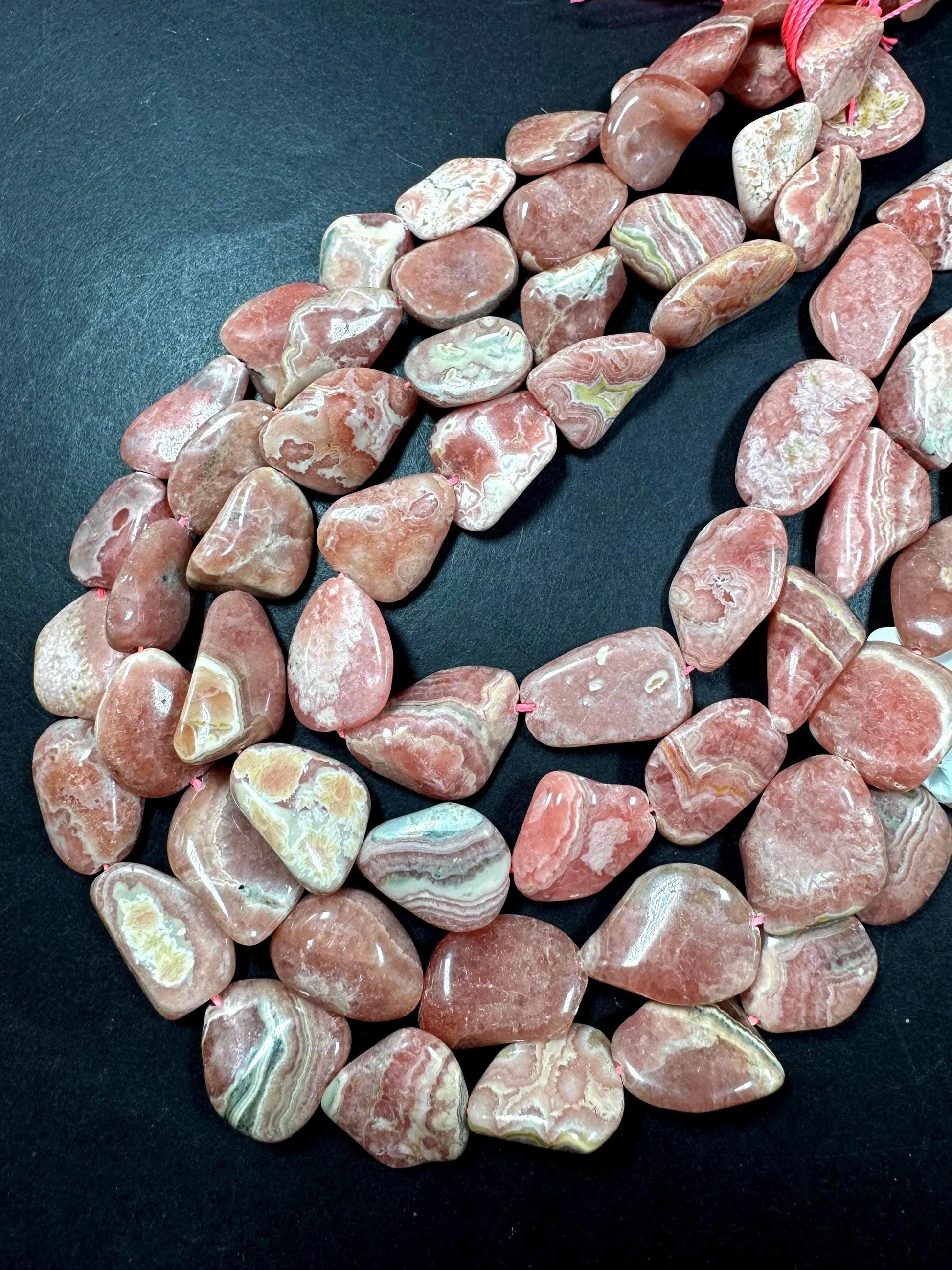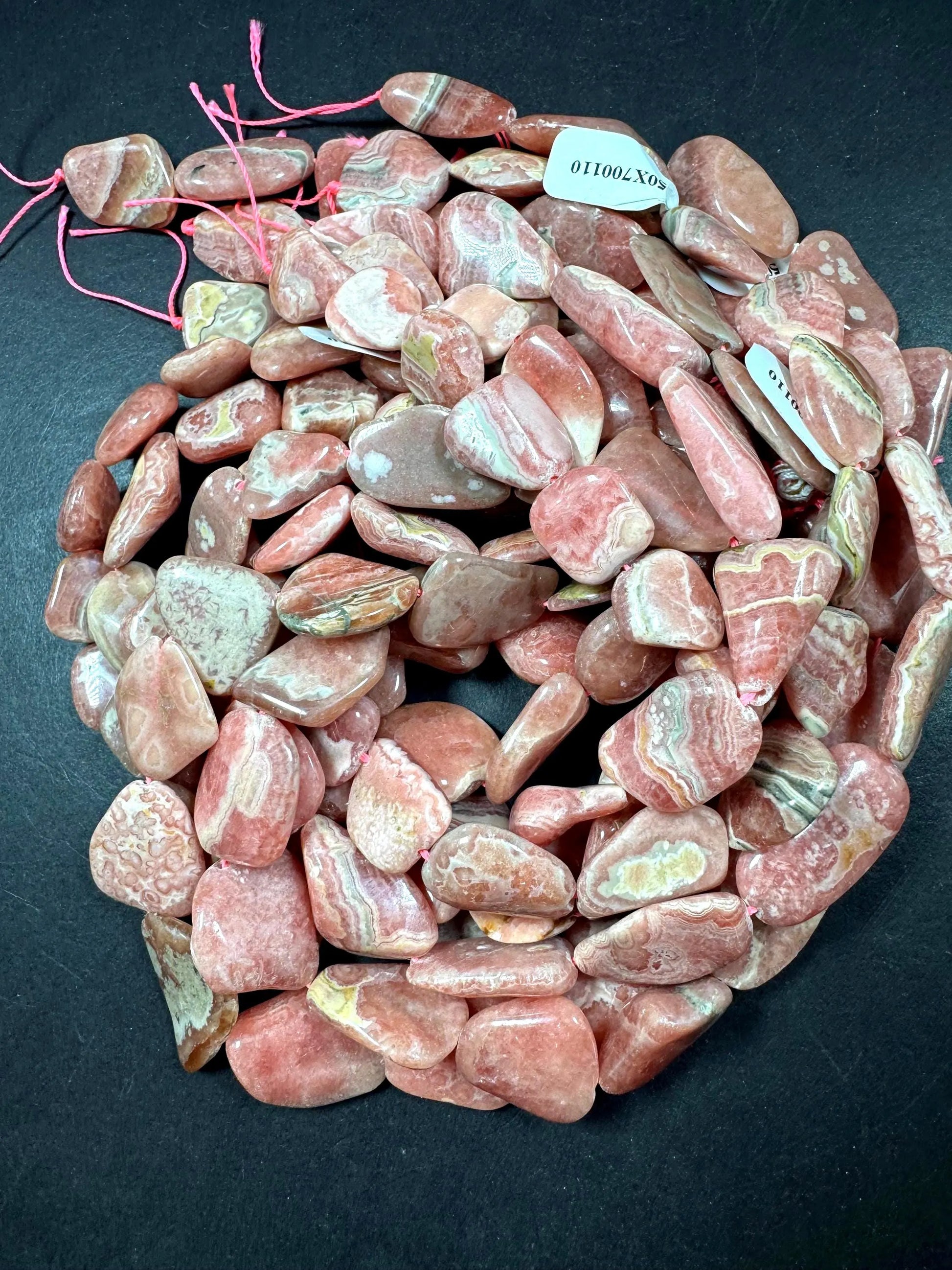 AAA Natural Rhodochrosite Gemstone Bead. Freedom nugget shape beautiful Natural rose pink color. Excellent quality. Full strand 15.5”