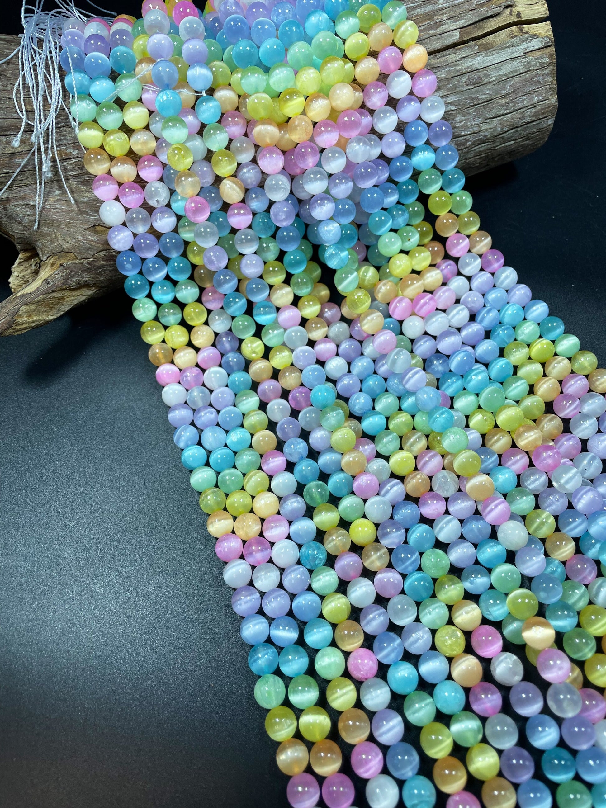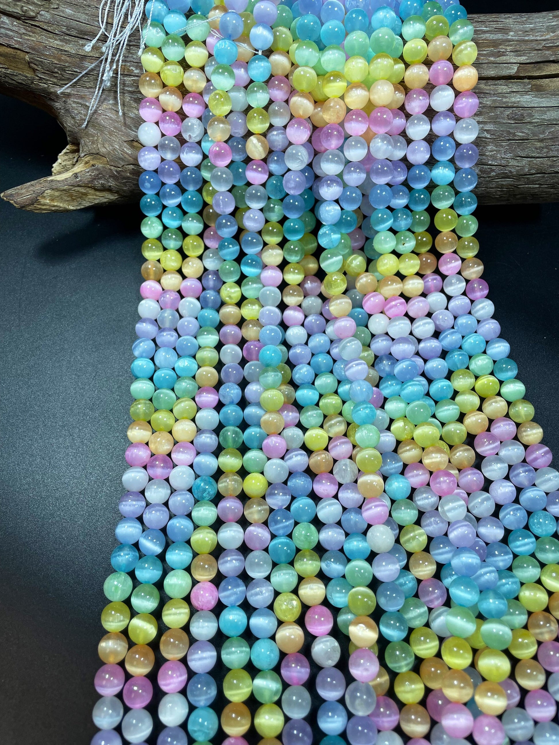 AAA natural selenite gemstone round bead. 6mm 8mm 10mm round bead. Gorgeous rainbow multi color selenite gemstone bead . Loose bead.15.5”