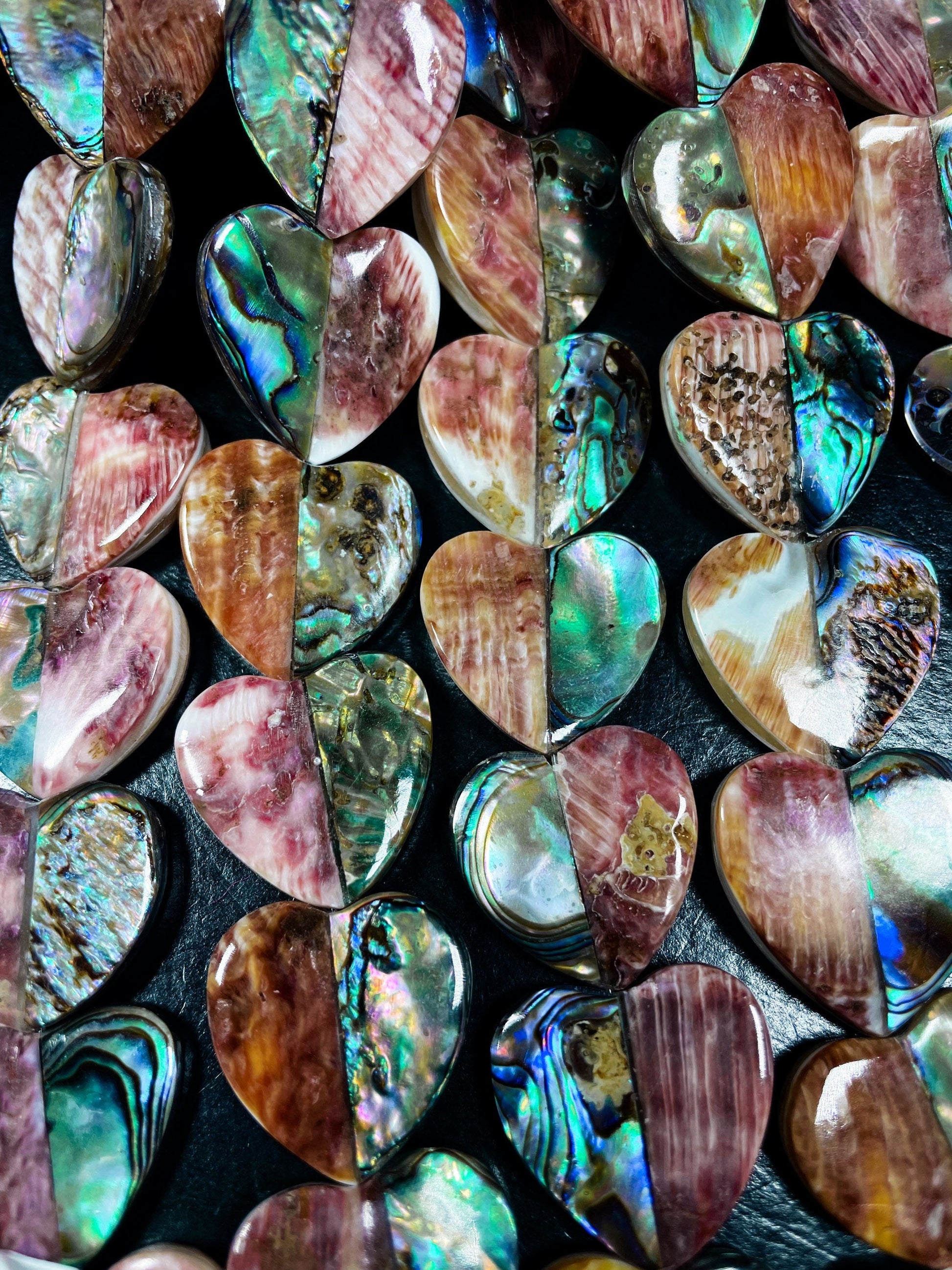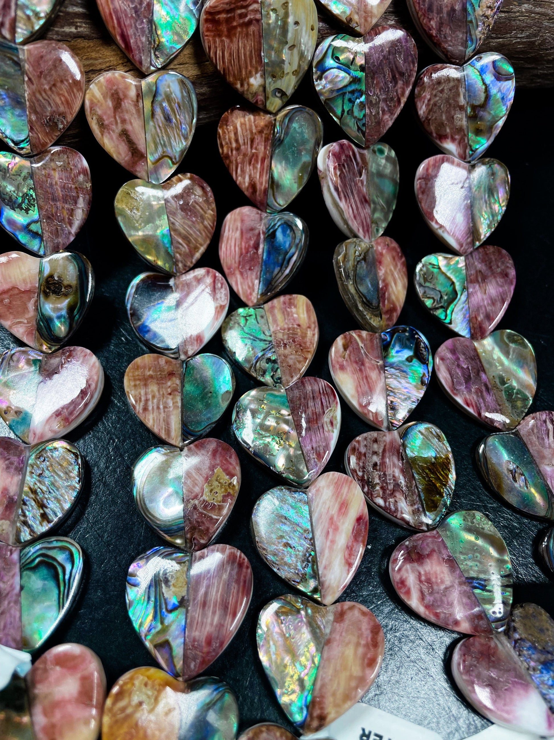 Guaranteed 100% natural purple spiny oyster shell. With natural abalone shell bead . Not treated! Unique heart shape . Excellent quality!