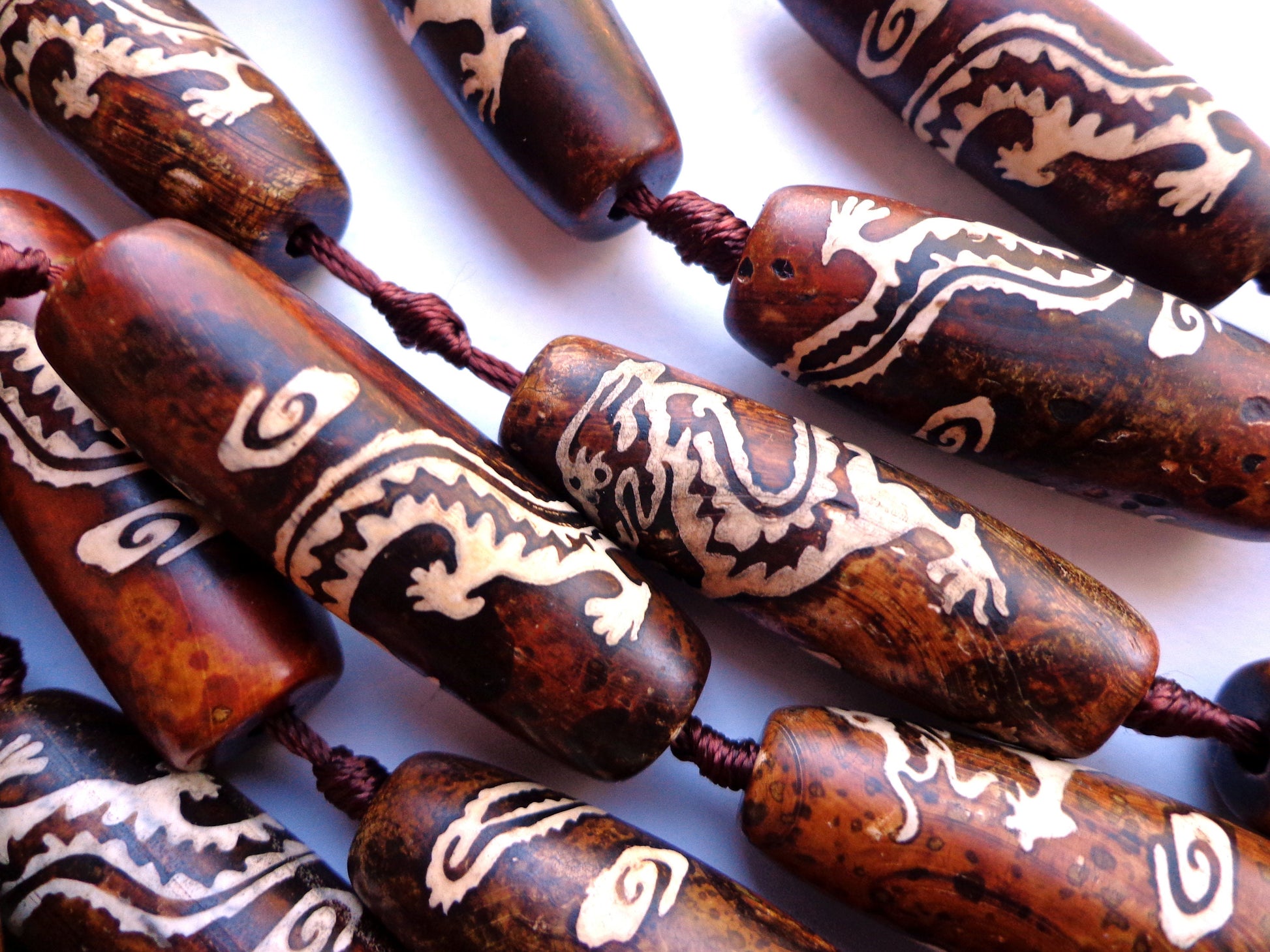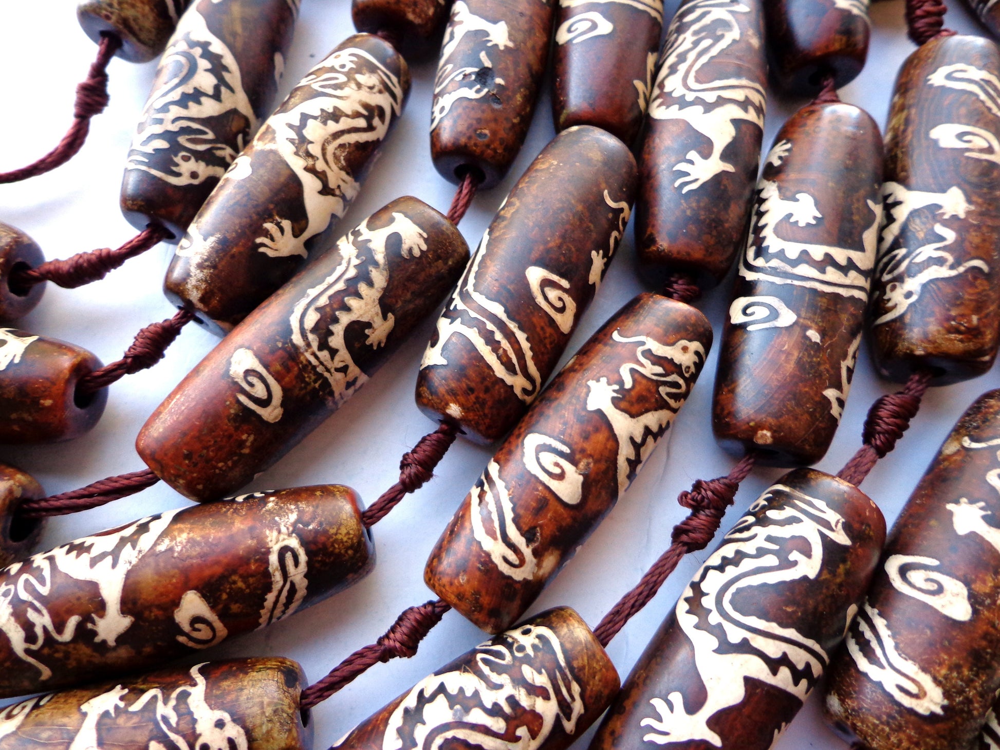 AAA Natural Tibetan Agate Gemstone Beads, 14x39mm, White Dragon Design, Tube/Barrel Shape Beads, Beautiful Brown Beads, Great Quality Beads! Full length 15.5"