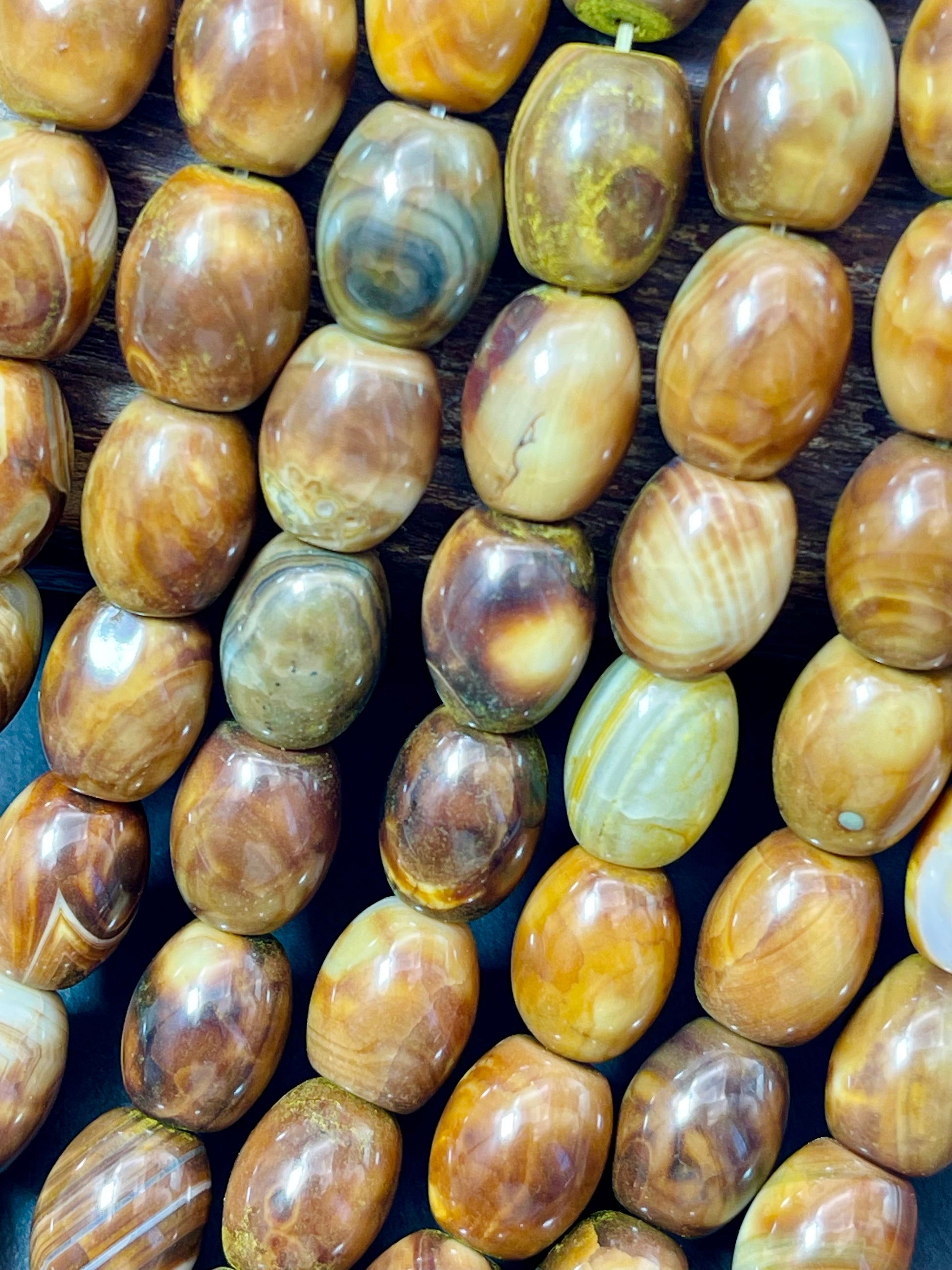 Guaranteed 100% natural gemstone. Stunning Tibetan gemstones. Beautiful high polished golden brown yellow color beads. Very unique and amazing quality. Loose beads great for jewelry making and beading!