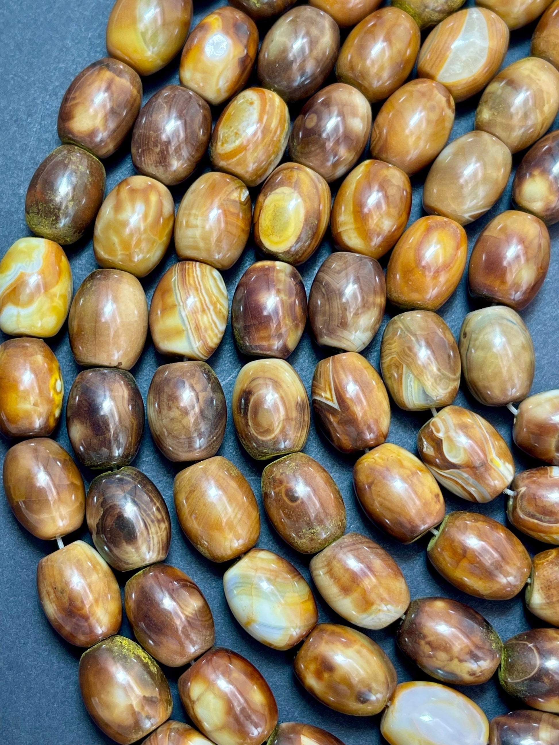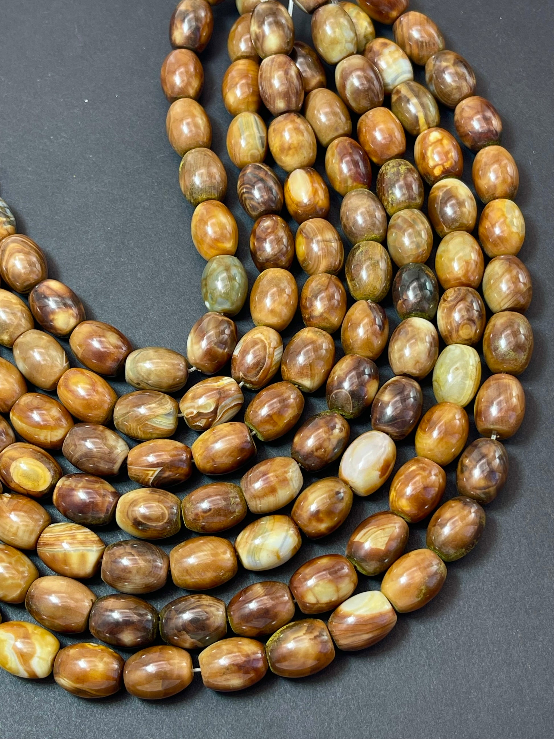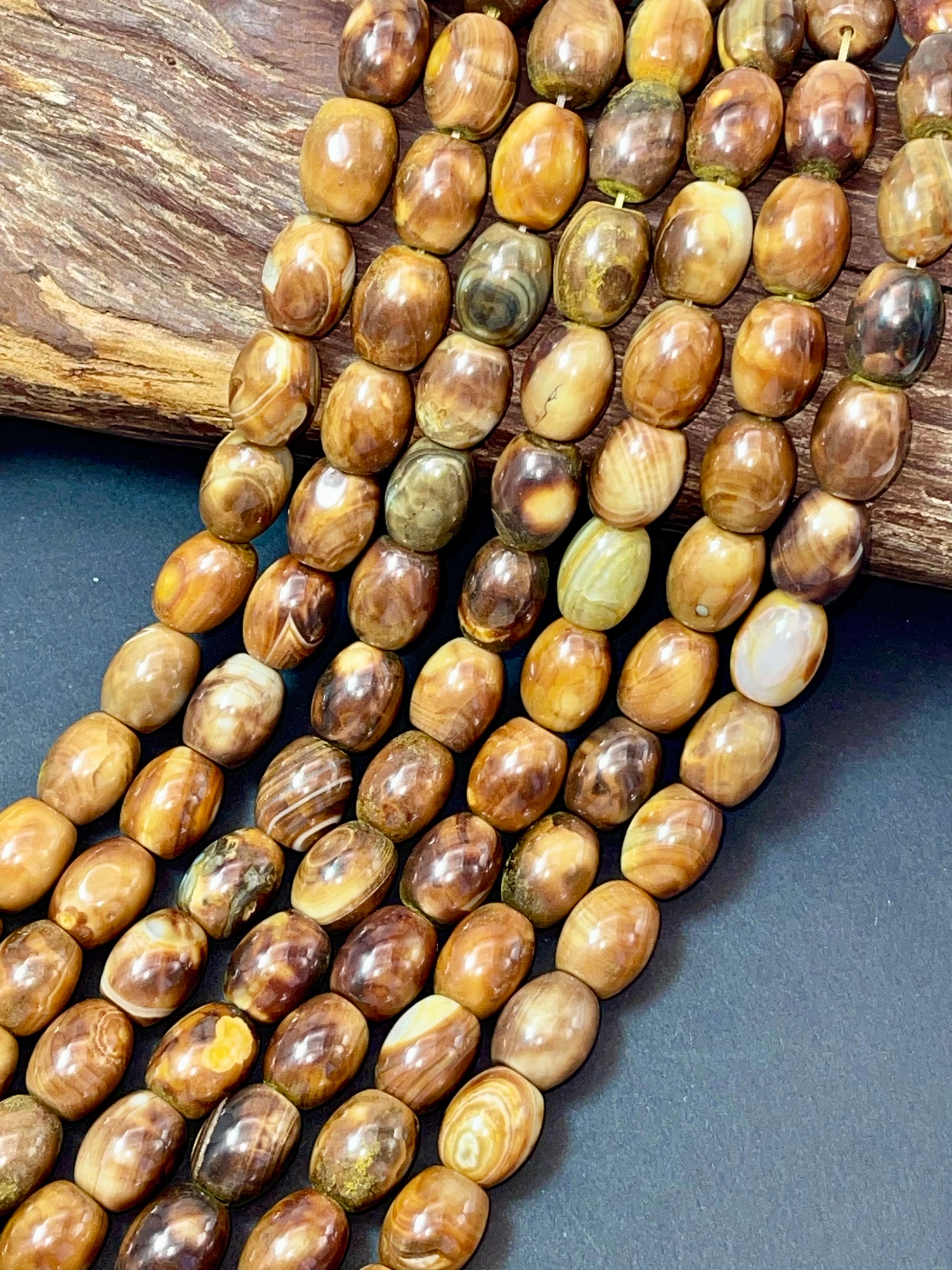 AAA NATURAL Tibetan Gemstone Bead 16x12mm Tube Shape Bead, Gorgeous Brown Color Tibetan Gemstone Bead, Excellent Quality Full Strand 15.5"