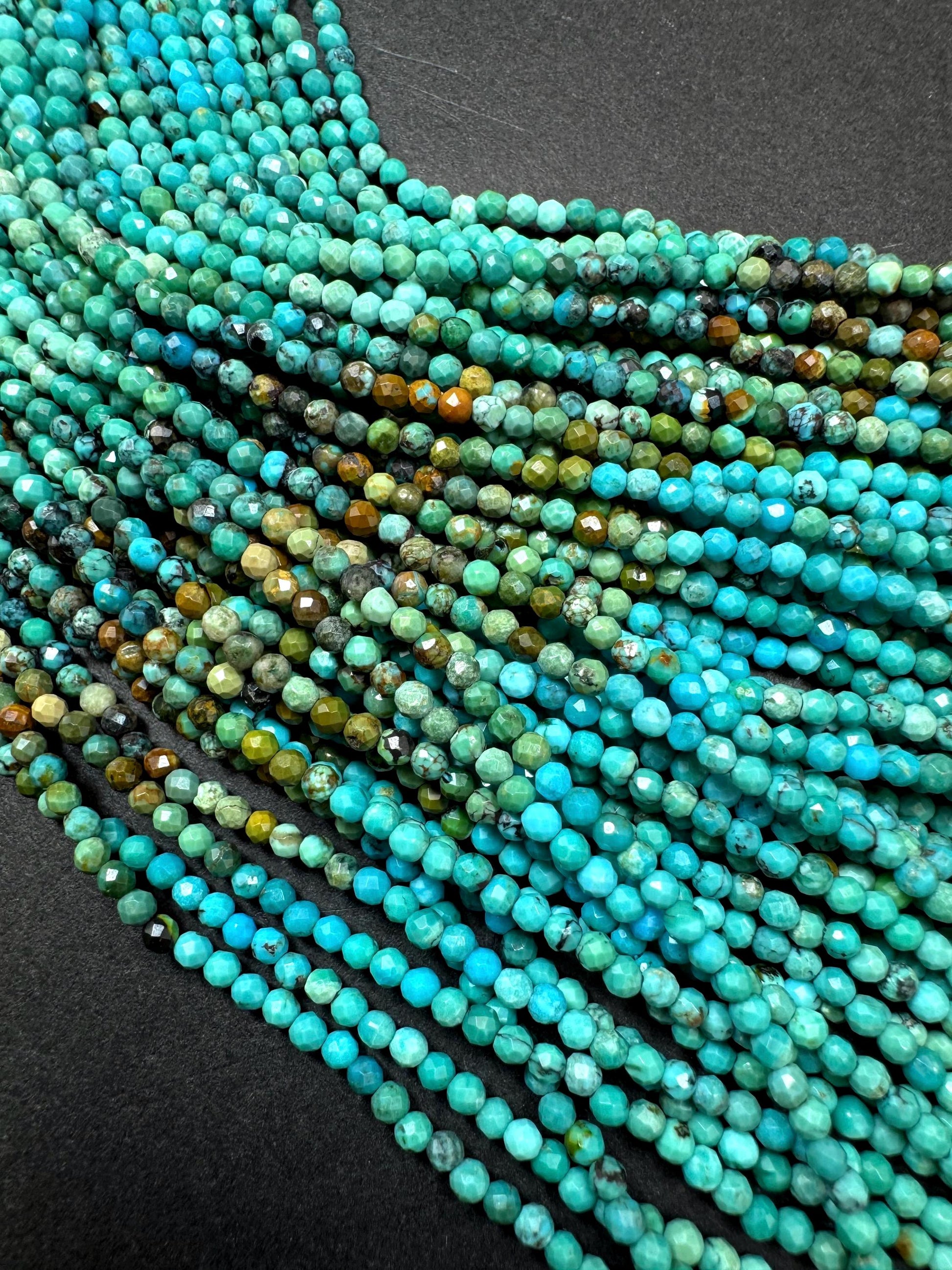 AAA Natural Turquoise Gemstone Bead. Faceted Round Shape Bead. Beautiful Natural Blue Turquoise Beads. Excellent Quality. Full Strand 15.5”