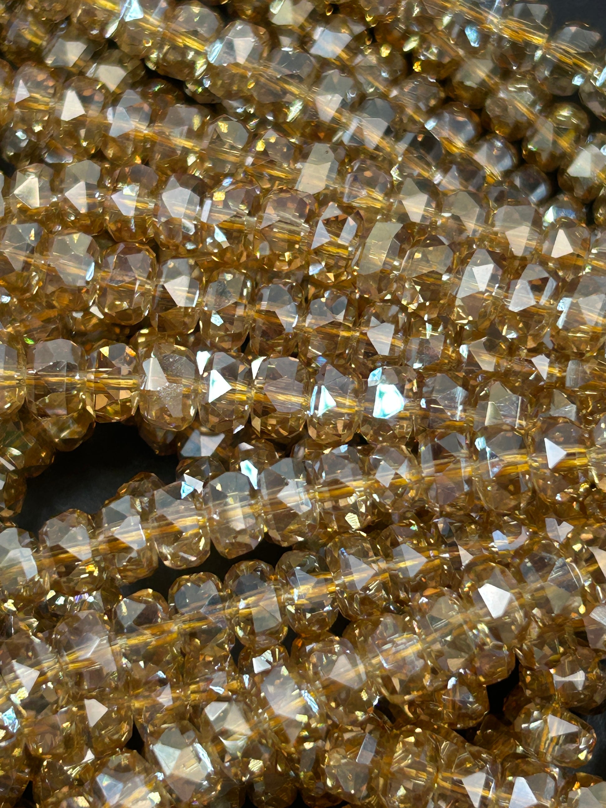 Beautiful Clear Gold Mystic Chinese Crystal Glass Bead Faceted 5x8mm Rondelle Bead, Gorgeous Iridescent Clear Great Quality Glass
