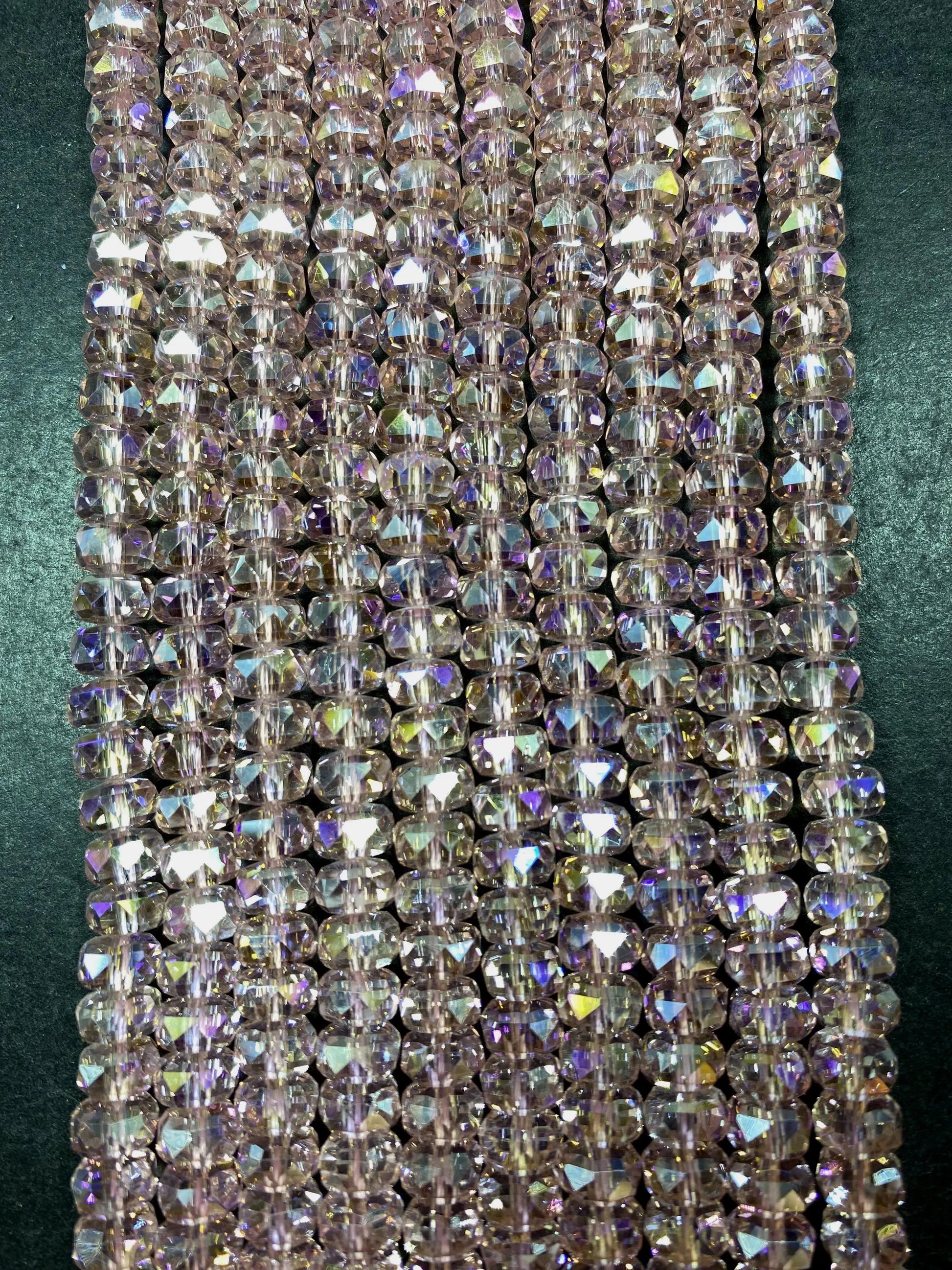 Beautiful Clear Pink Chinese Crystal Glass Bead Faceted 5x8mm Rondelle Bead, Gorgeous Iridescent Clear Great Quality Glass