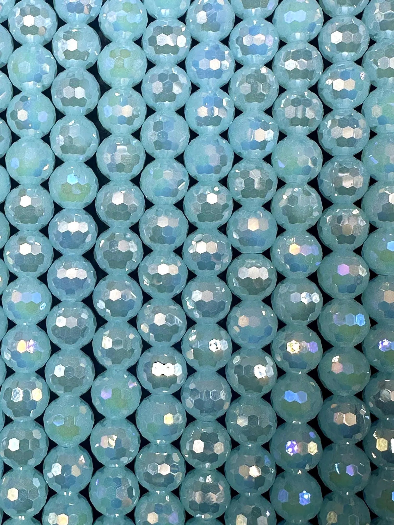 Beautiful Crystal glass bead. 8mm Faceted round shape bead. Gorgeous Aquamarine color, high quality crystal bead! Full strand 15"