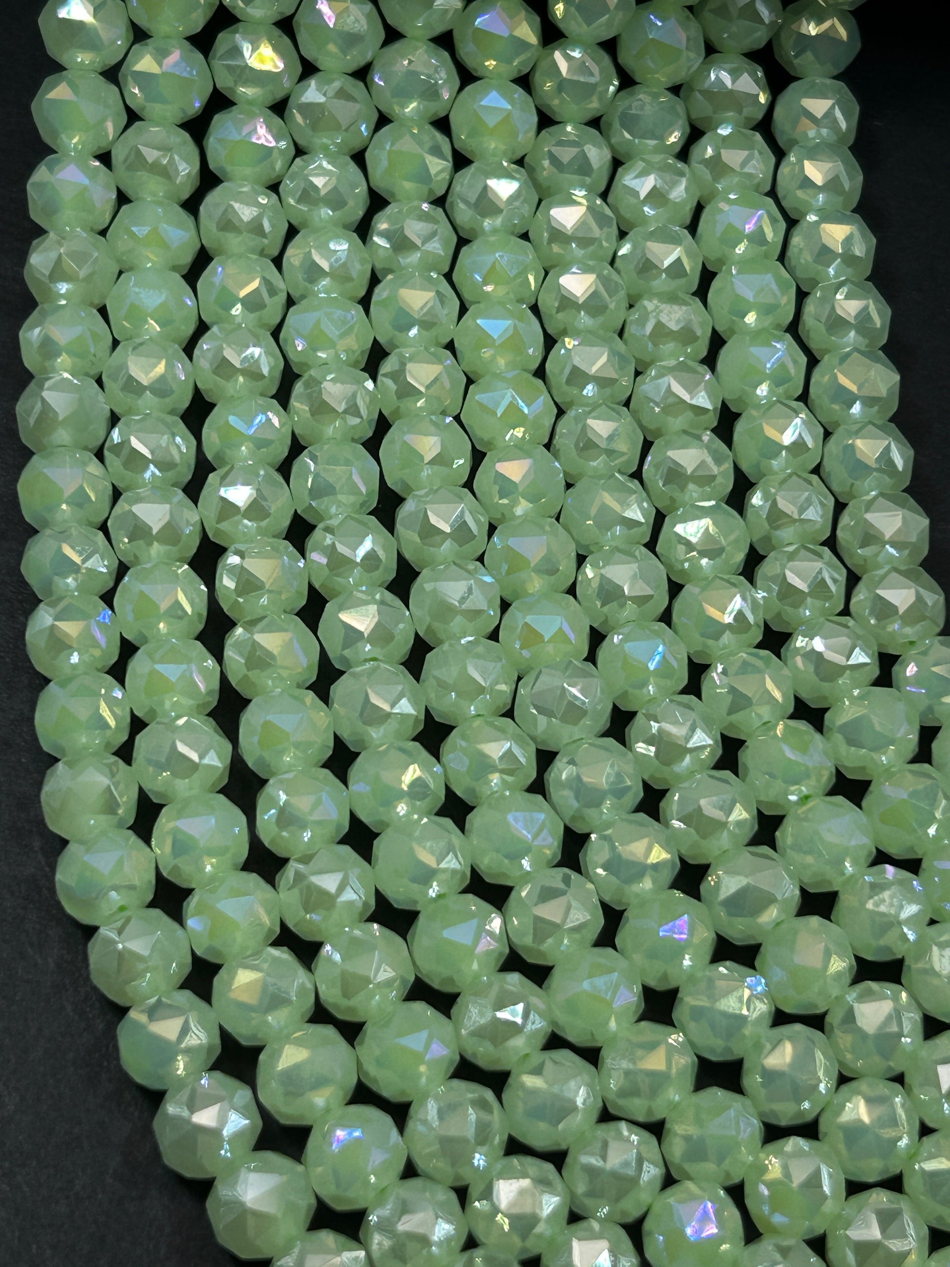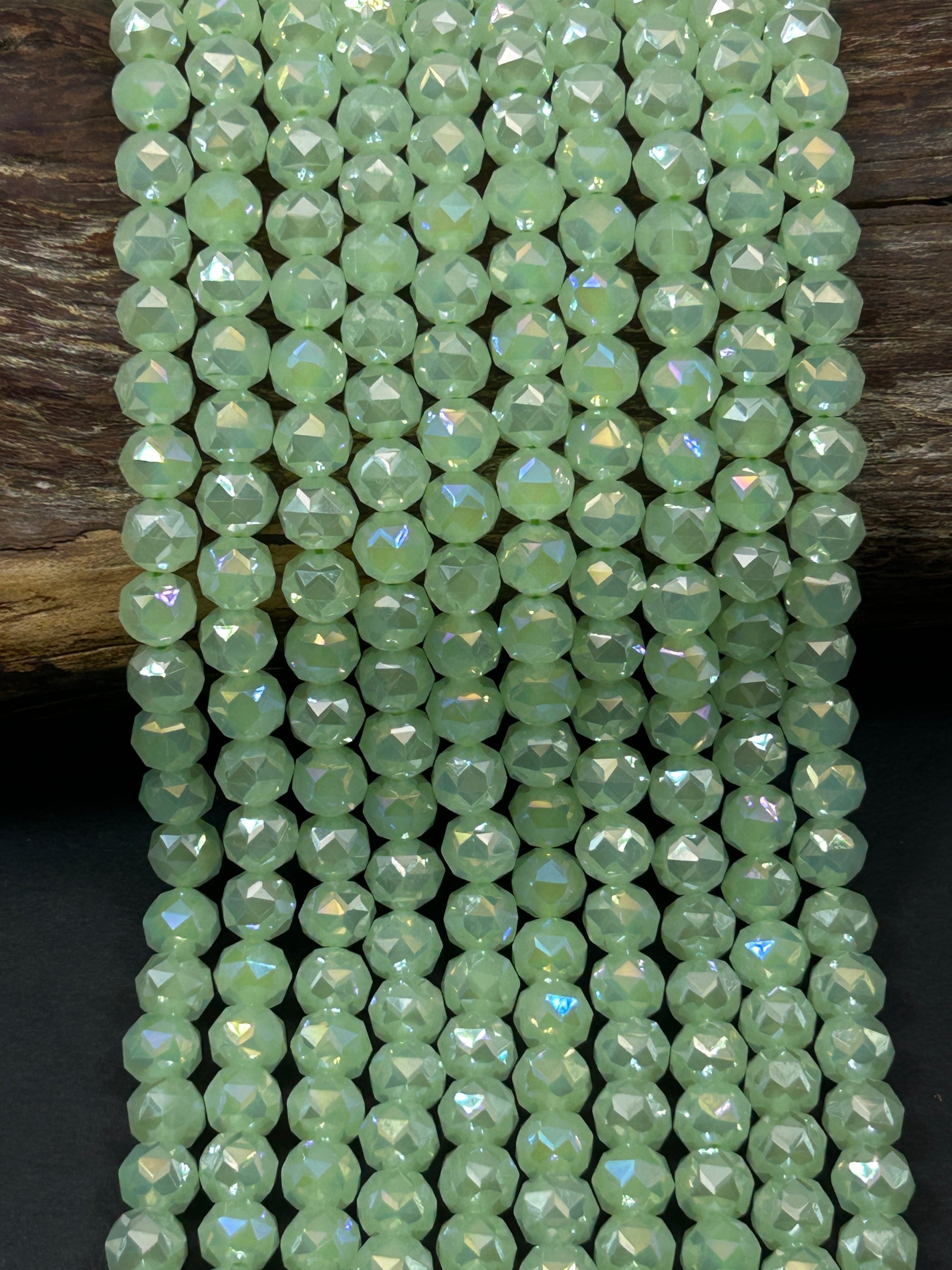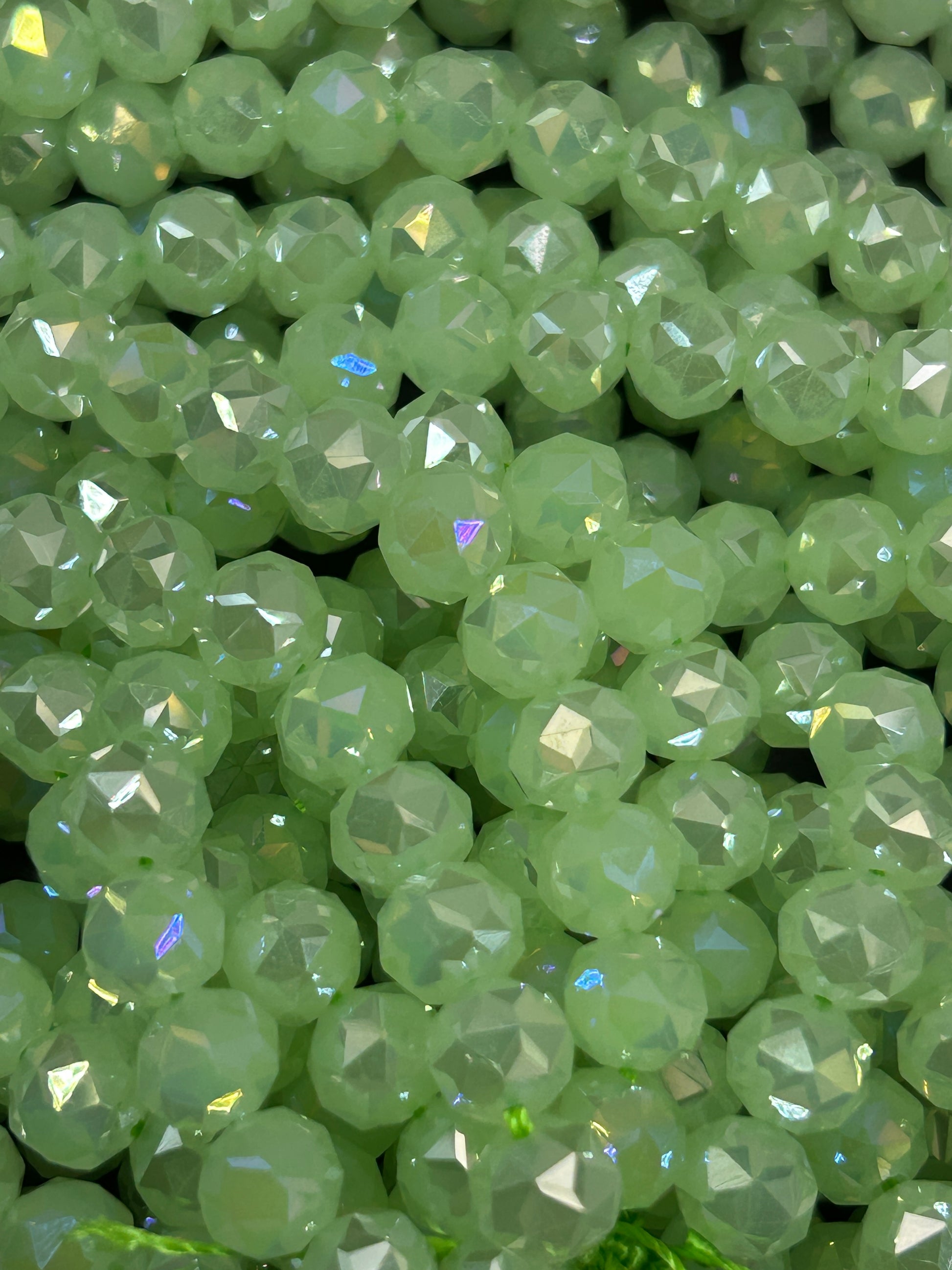 Beautiful Crystal glass bead. Faceted round shape bead. Gorgeous Honeydew Green color, high quality crystal bead! Full strand