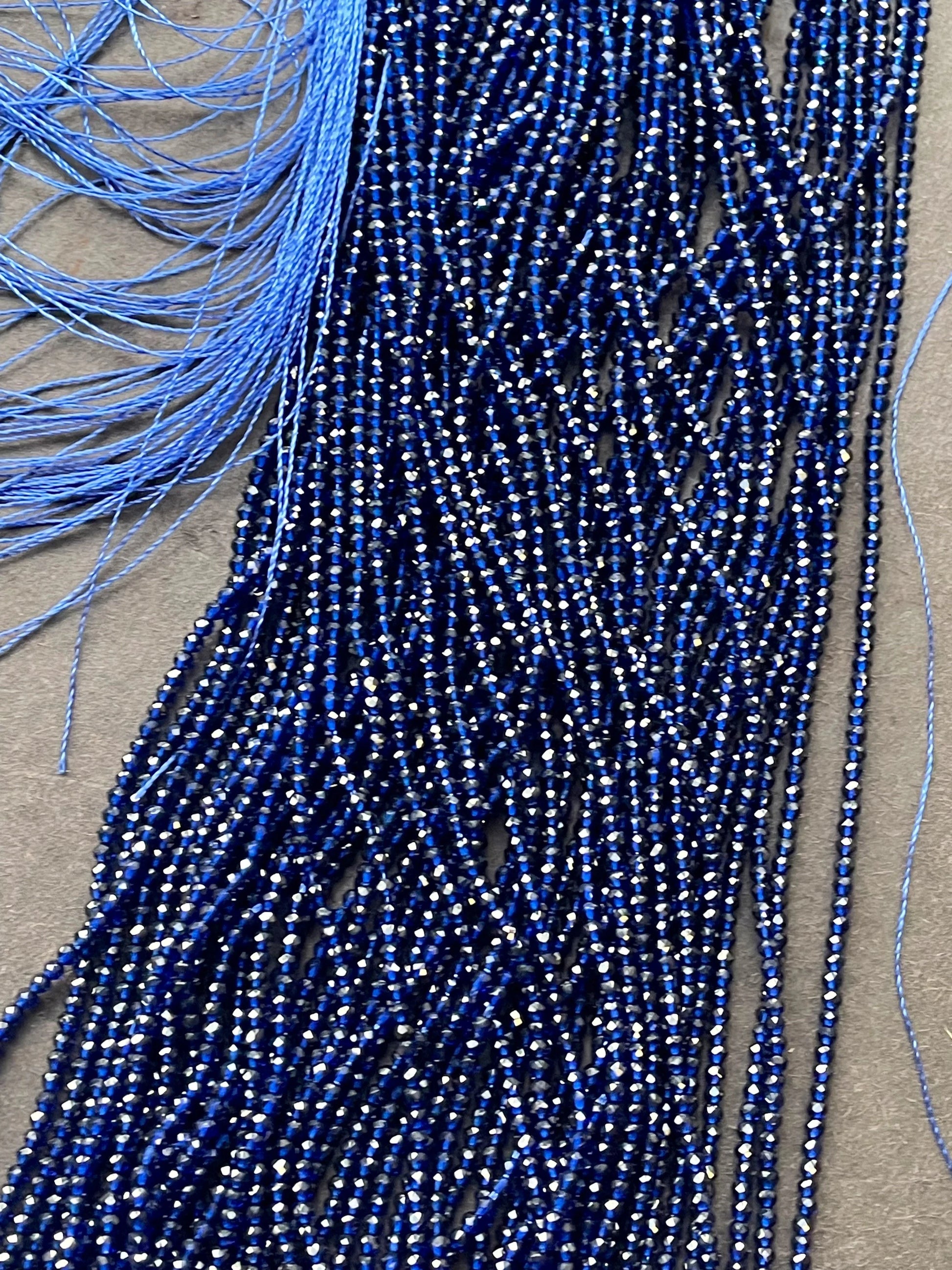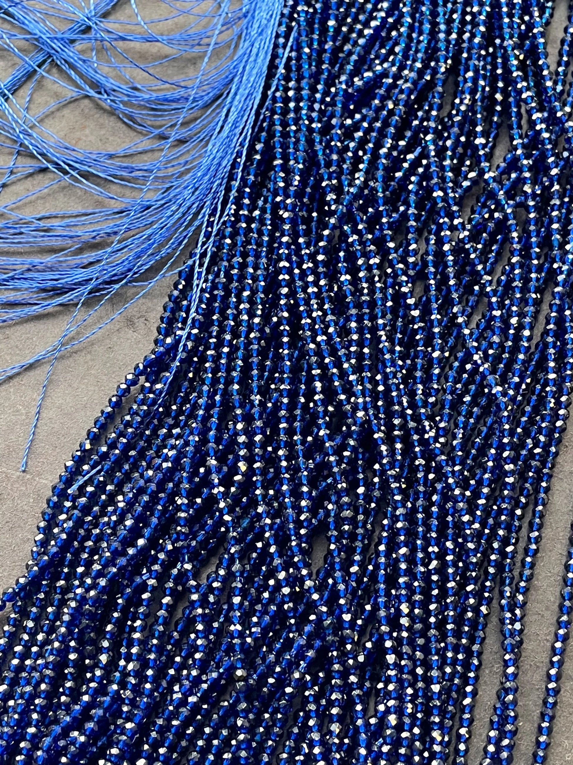 Beautiful crystal glass beads. 2mm faceted Round bead. Real nice quality beautiful royal blue color crystal bead. Full strand bead.