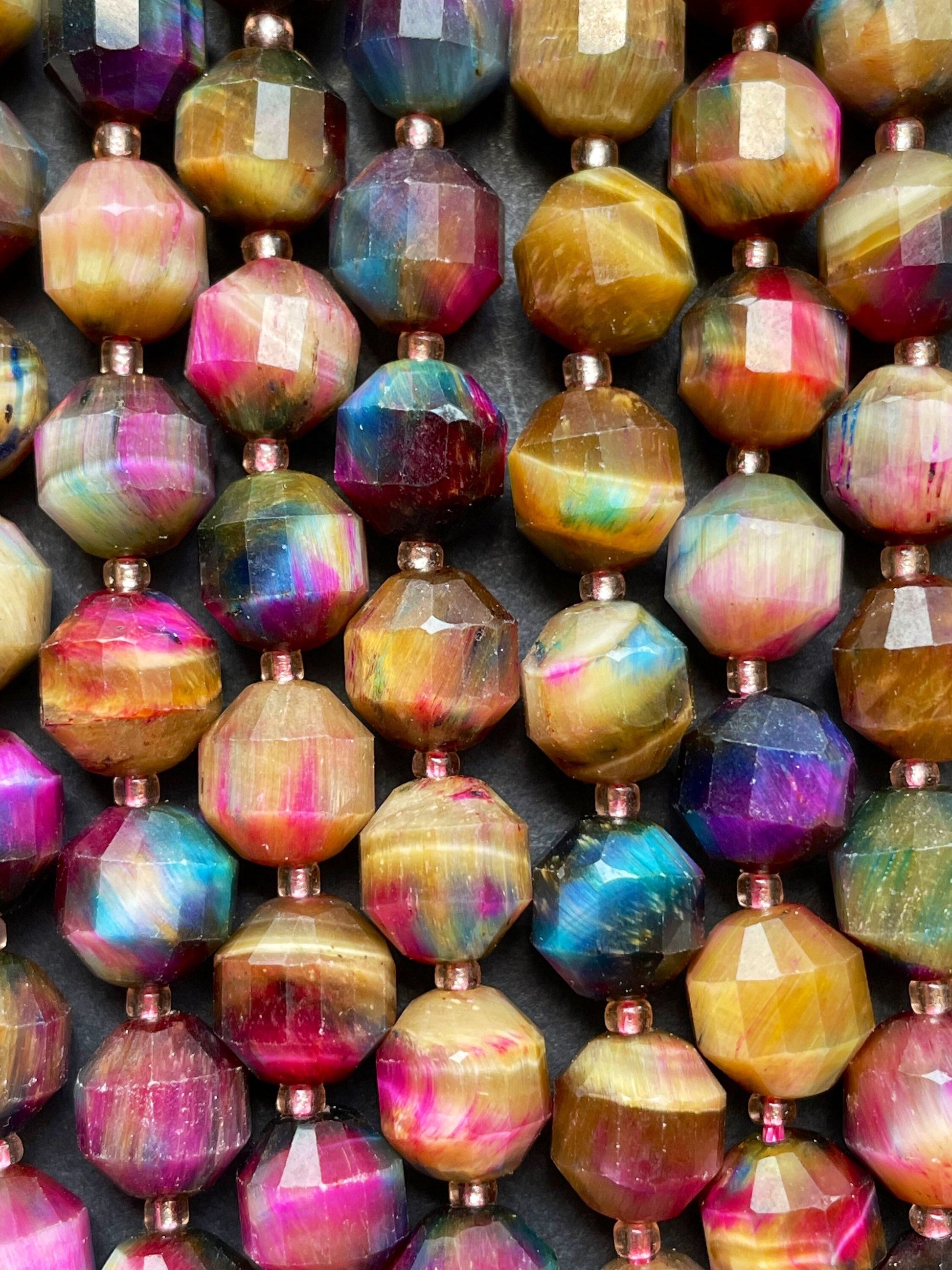 Natural Galaxy Tiger Eye Gemstone Bead Faceted 6mm 8mm Diamond Cut Shape Bead, Gorgeous Multicolor Tiger Eye Gemstone Beads