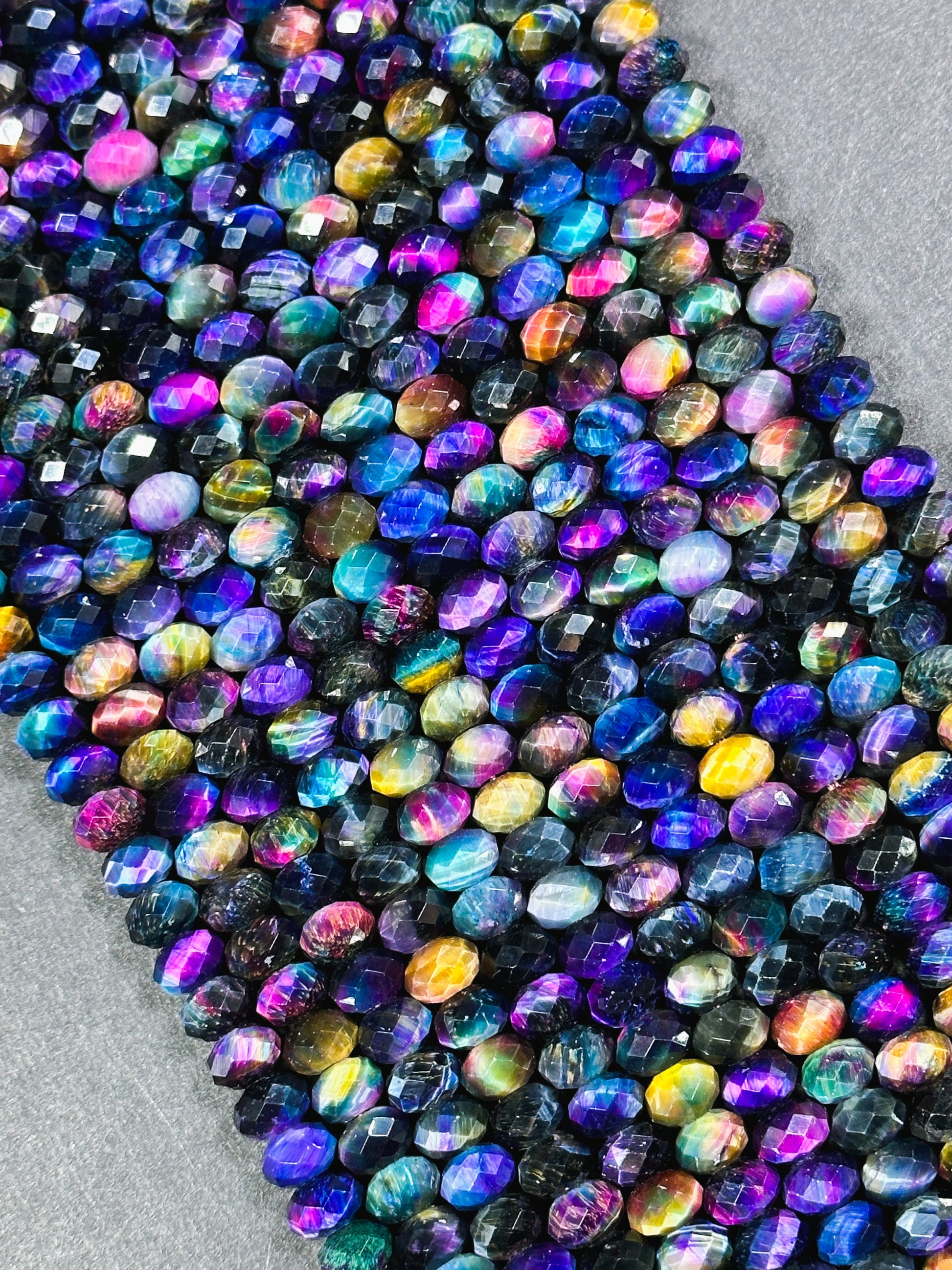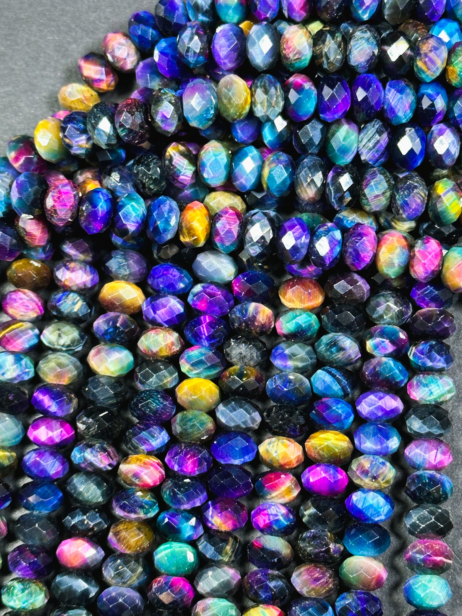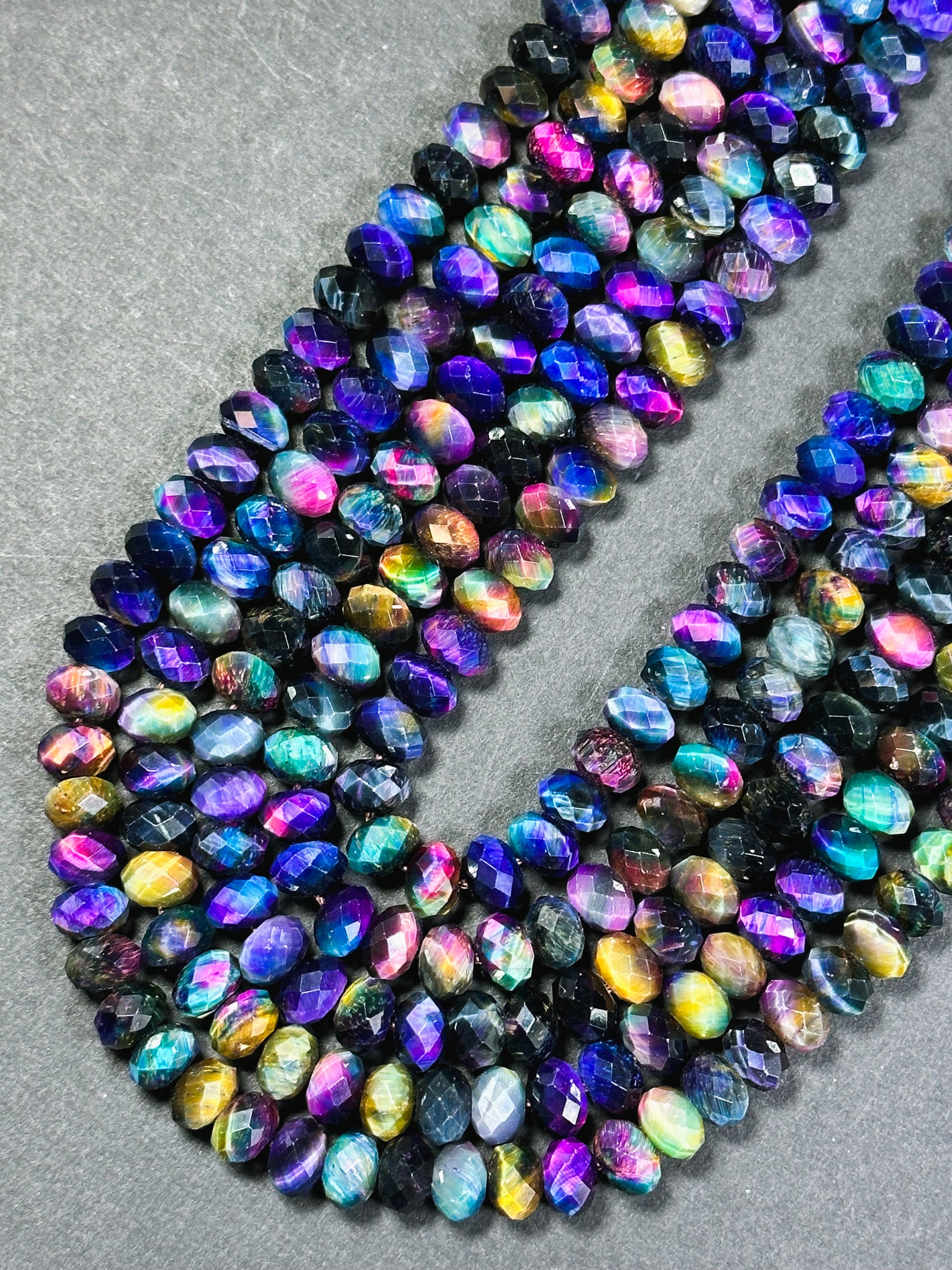 Beautiful Galaxy Tiger Eye Gemstone Bead Faceted 8x5mm Rondelle Shape, Gorgeous Rainbow Multicolor Galaxy Tiger Eye Beads Full Strand 15.5"