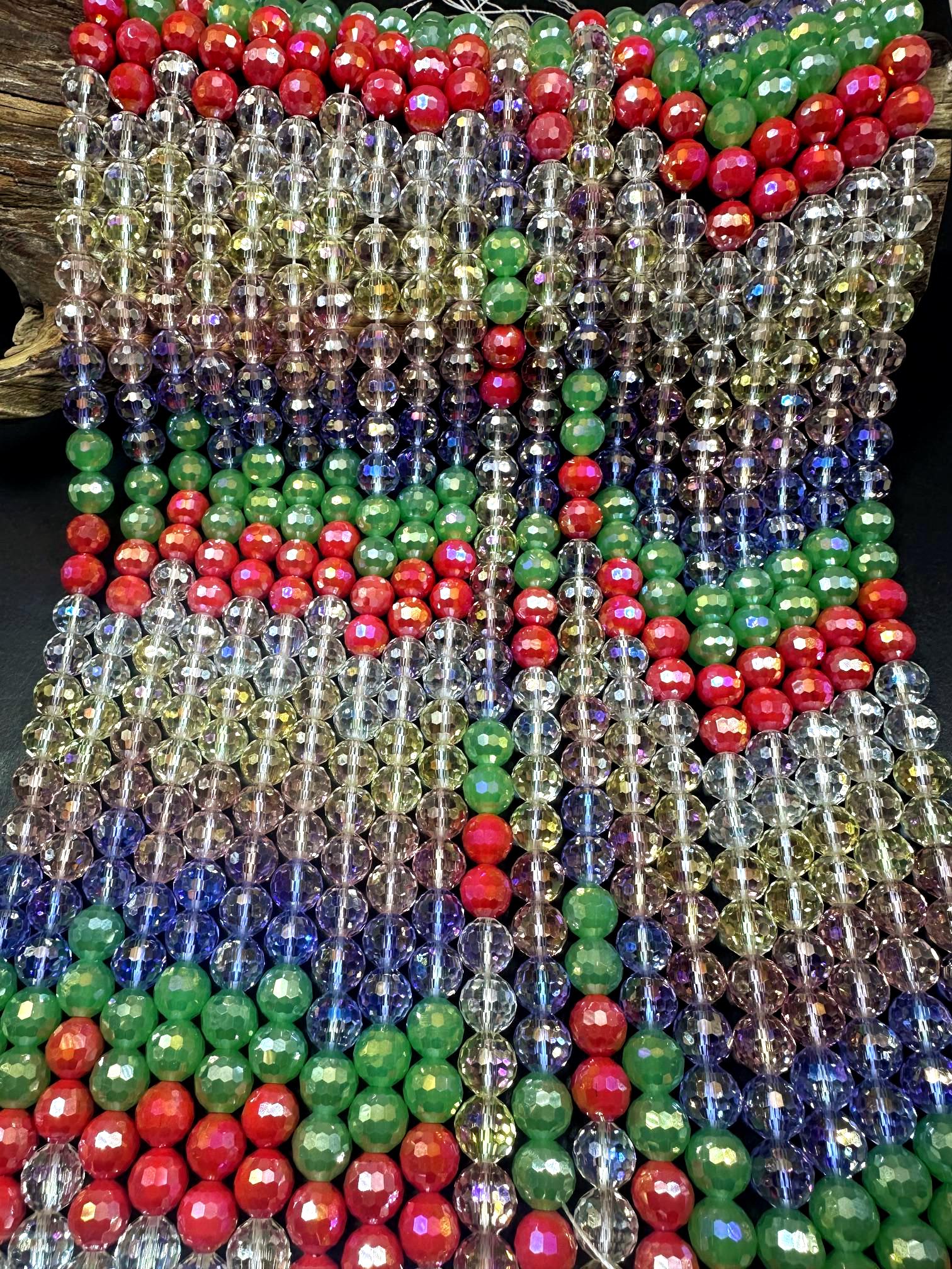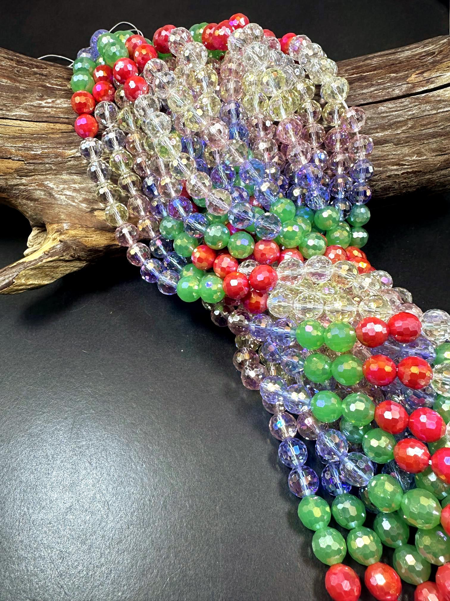 Beautiful Multicolor Crystal Glass Bead (White, Baby Blue, Mint Green, Orange, Clear Pink) 10mm Faceted Round Shape Bead. High Quality 15.5"