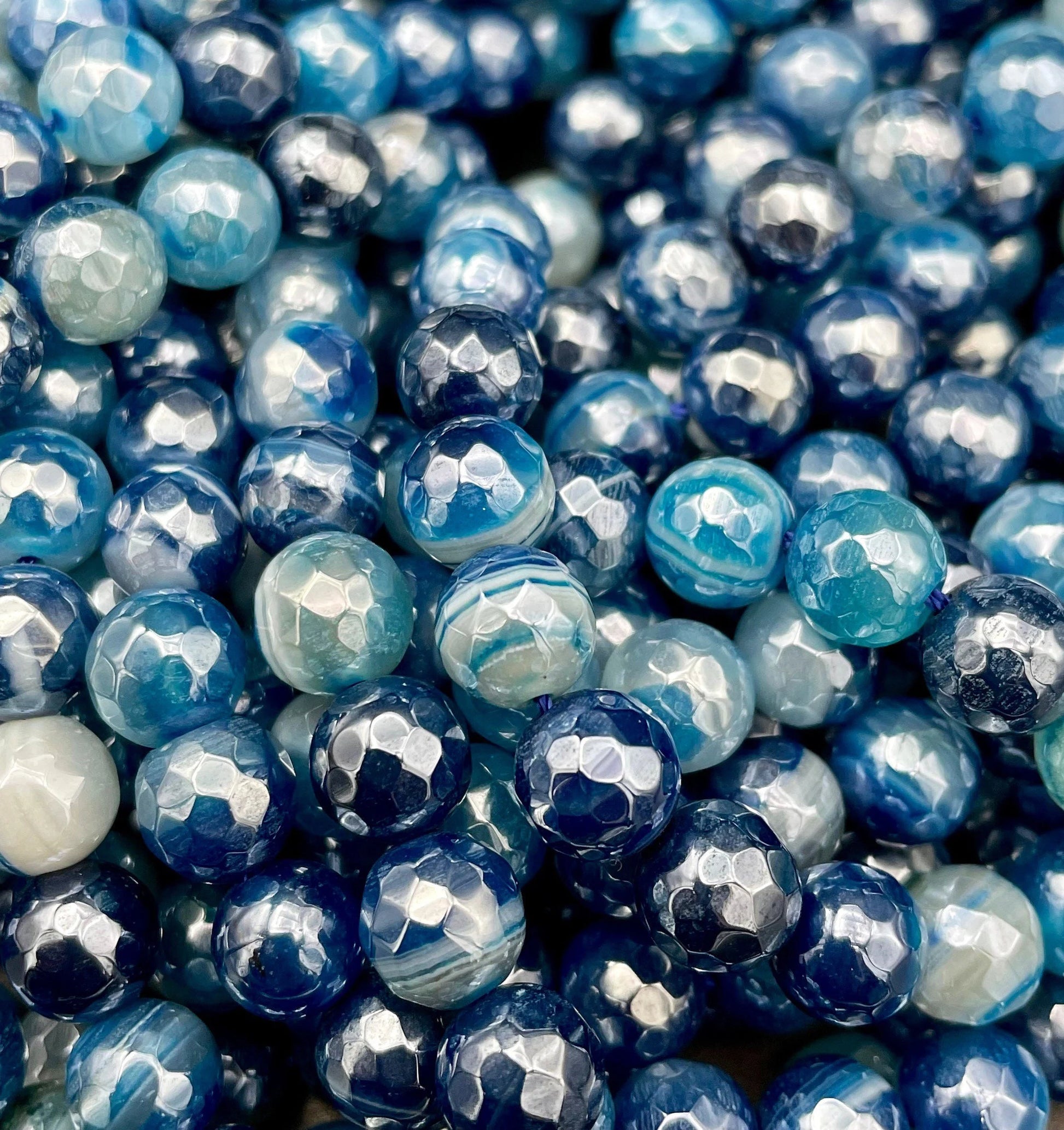Beautiful Mystic stone agate bead. Faceted 6mm 8mm 10mm 12mm round bead. Beautiful ocean blues turquoise color gemstone bead. Full strand 15.5”