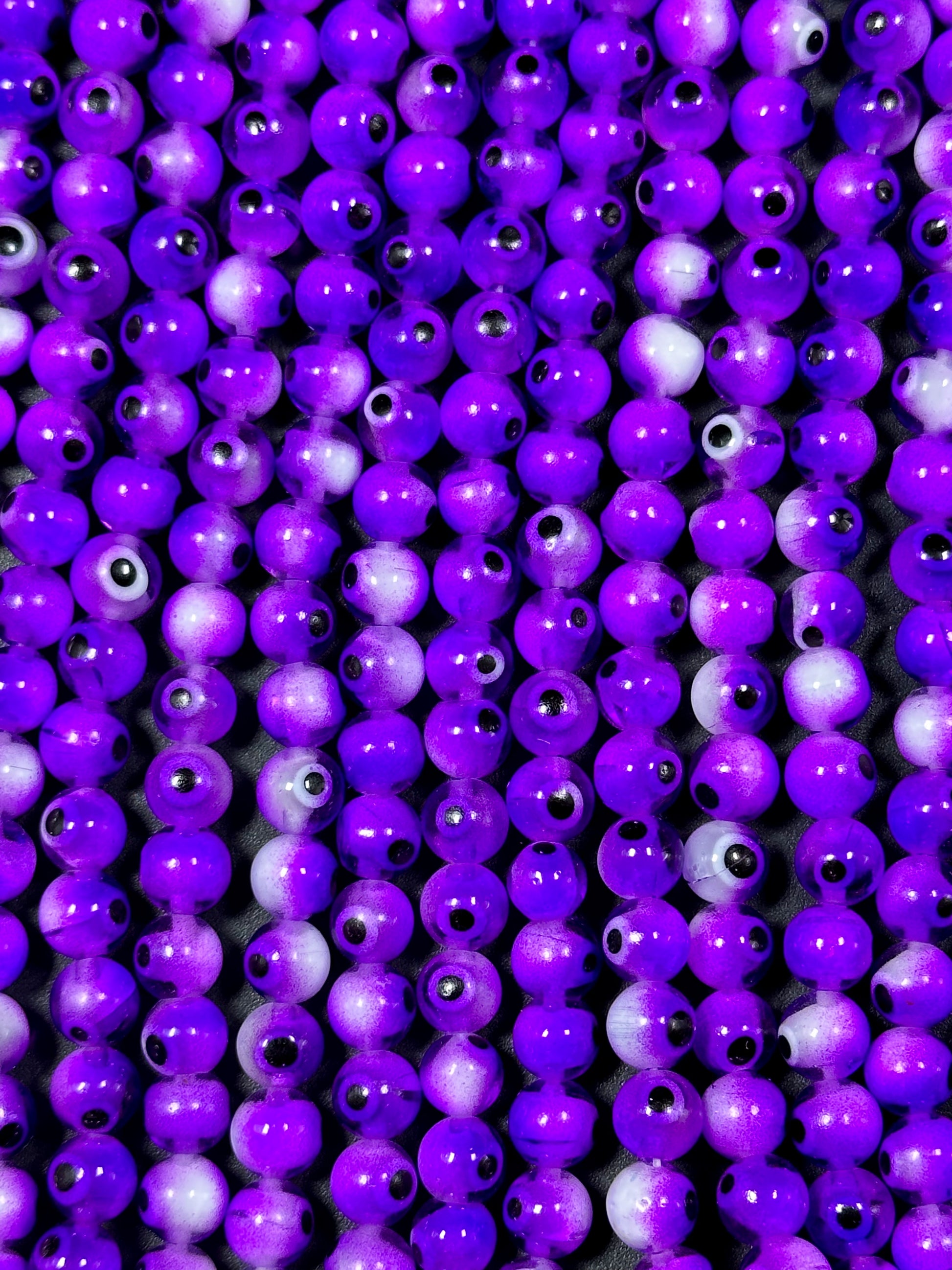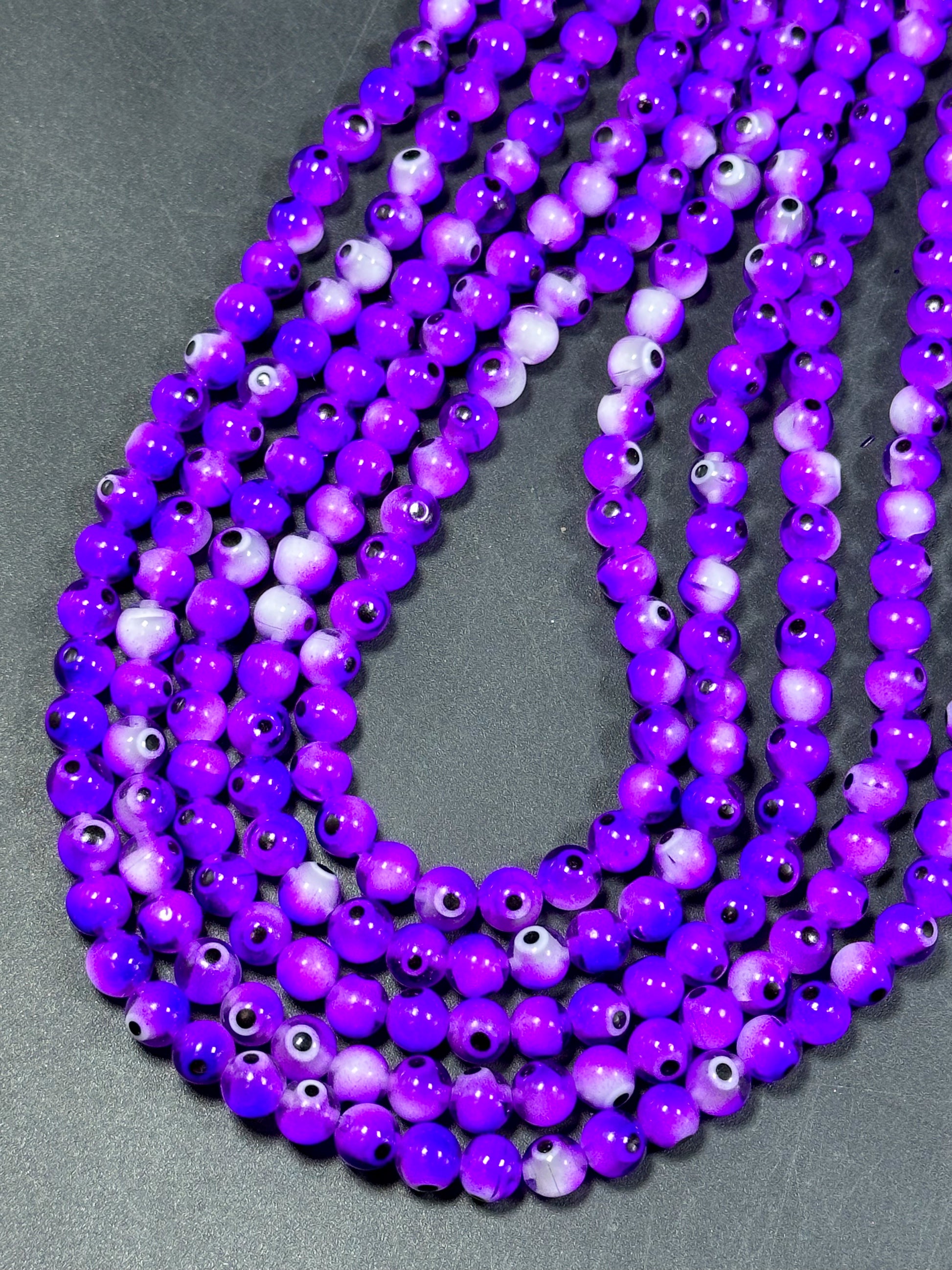 Beautiful Purple Evil Eye Glass Beads 6mm Round Beads, Beautiful Purple Clear Color Evil Eye Amulet Glass Beads, Full Strand Glass Beads