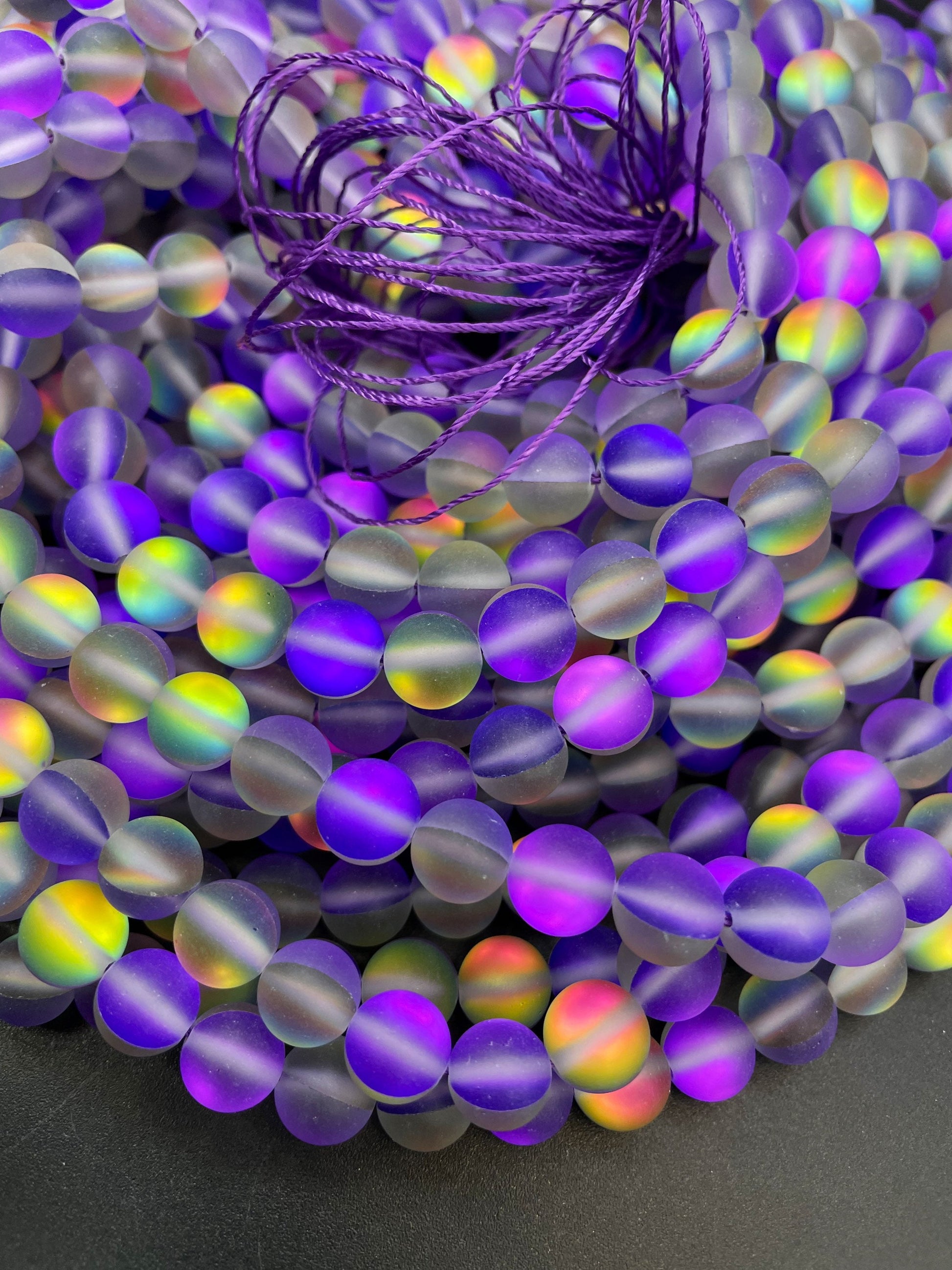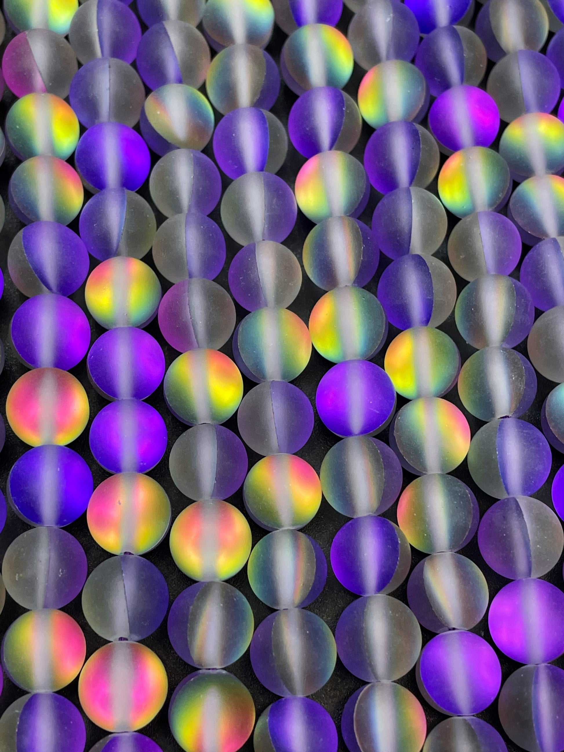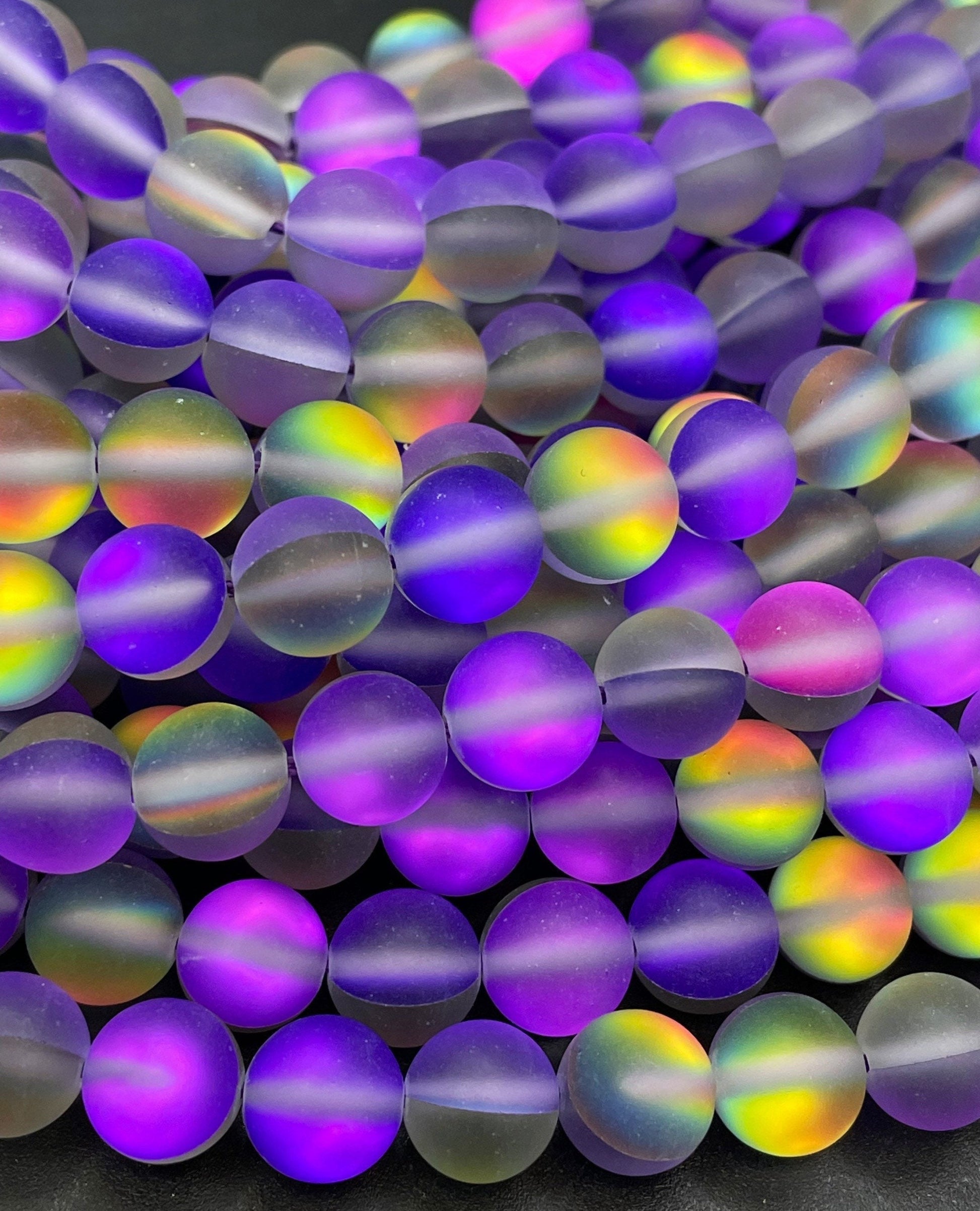 Beautiful Rainbow Mermaid Glass Bead, 6mm 8mm 10mm 12mm Round Beads, Beautiful Matte Purple Rainbow Color Mermaid Glass Bead, Full Strand 15.5"